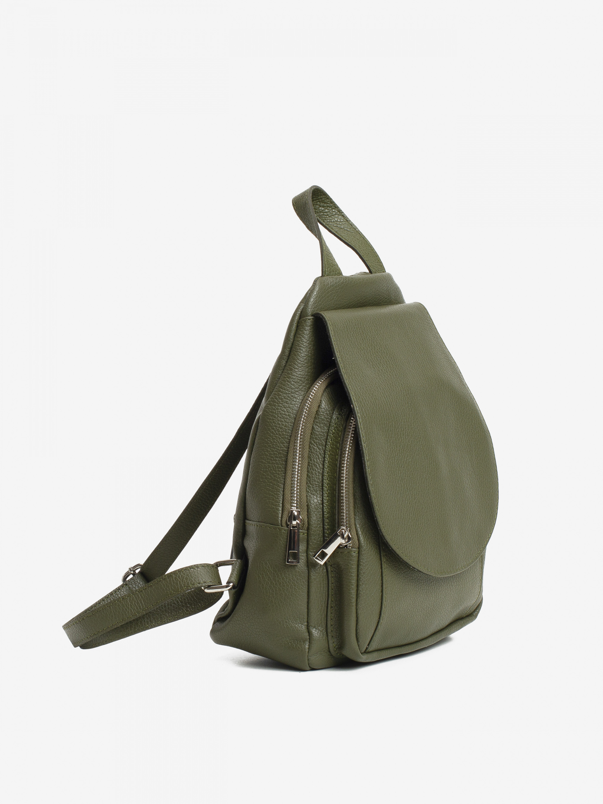 Деталі: - Матеріал: 100% натуральна шкіра - Шкіра має фактуру флотар - Фурнітура сріблястого кольору - Розміри (Ш x В x Г) - 24 x 30 x 11 см - Всередині: 1 відділення та 3 кишеньки для дрібниць, одина з них на блискавці - Зовні: кишеня на блискавці під клапаном і ззаду кишенька на блискавці - Підкладка: 100% бавовна - Застібка: блискавка