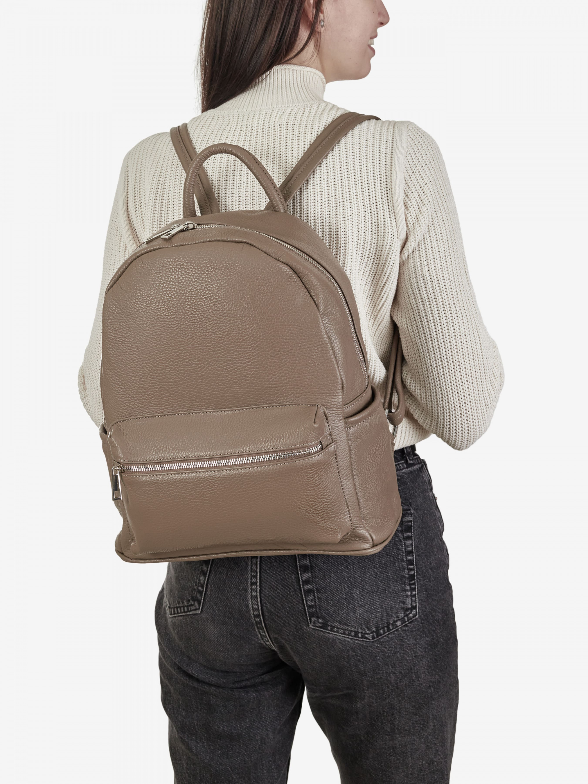 Деталі: Матеріал: 100% натуральна шкіра Шкіра має фактуру флотар Фурнітура сріблястого кольору Розміри (Ш x В x Г) – 31 x 34 x 13 см Всередині 1 відділення та кишенька для дрібниць на блискавці Плечові ремені регулюються Підкладка: 100% бавовна Застібка: блискавка Дизайн: Яскраве забарвлення рюкзака Regina Notte не залишить байдужою не одну модницю. Зшитий він із якісної натуральної італійської шкіри. Ця модель передбачає використання виробу у двох варіантах – ndash; як сумку та як рюкзак. У рюкзаку одне відділення на блискавці. У ньому можна носити важливі документи, ноутбук чи планшет. Спереду є містка шкіряна кишеня для телефону або гаманця. Є можливість носити цей рюкзак за ручку або використовувати плечові ремені.