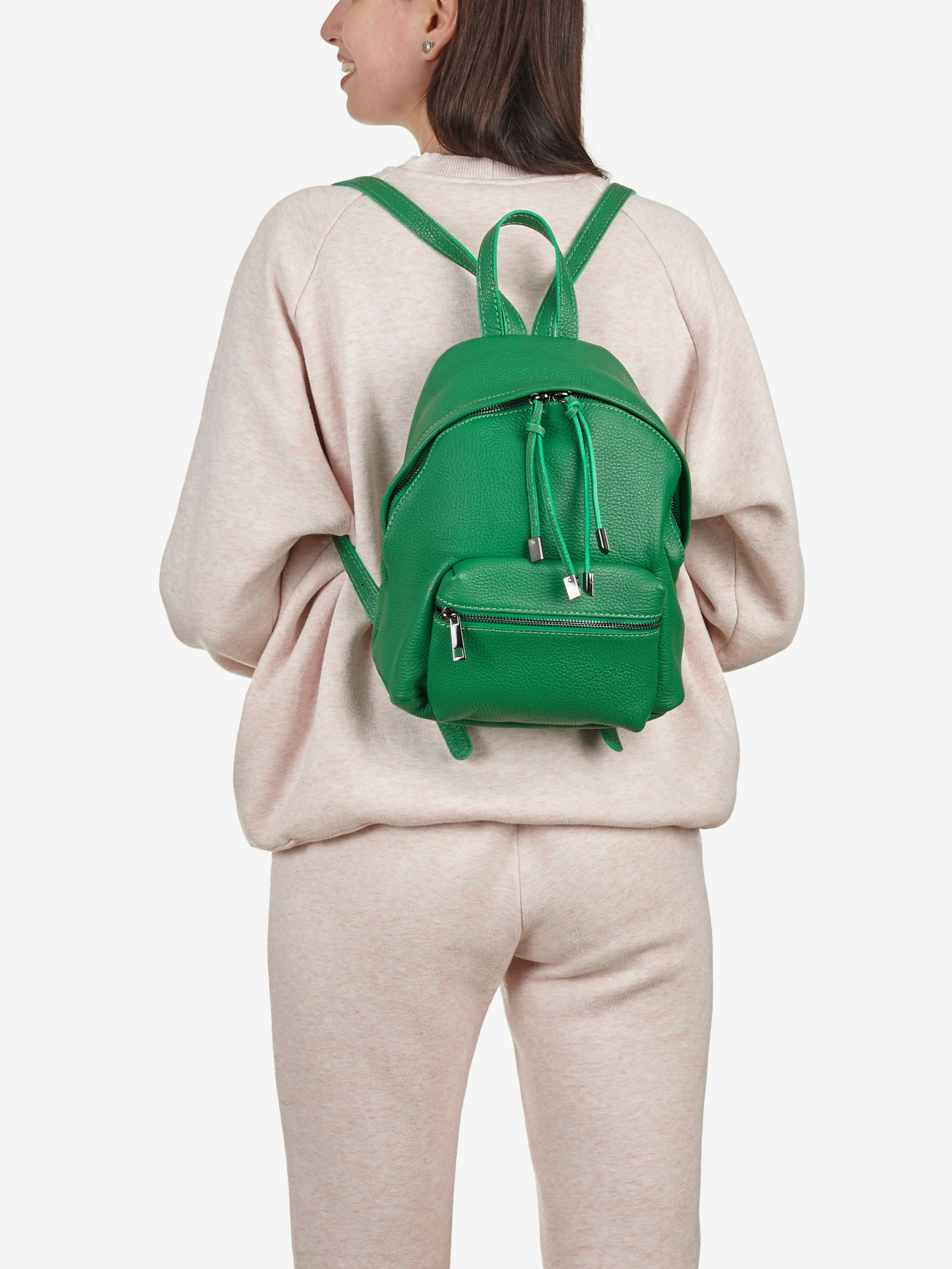 Деталі: Матеріал: 100% натуральна шкіра Шкіра має фактуру флотар Фурнітура чорного кольору Розміри (Ш x В x Г) – 24 x 26 x 11 см Усередині: 1 відділення та кишенька для дрібниць Спереду 1 кишеня на блискавці Підкладка: 100% бавовна Застібка: блискавка Дизайн: Жіночий рюкзак Regina Notte 8300 має напівкруглу форму та містке відділення для речей. Спереду знаходиться нашивна кишеня, яка застібається на замок-блискавку. Сумка виготовлена з натуральної шкіри із зернистою фактурою, підходить для прогулянок містом або для навчання. У даній моделі є зручна ручка, а також два плечові ремені з регулюванням довжини.