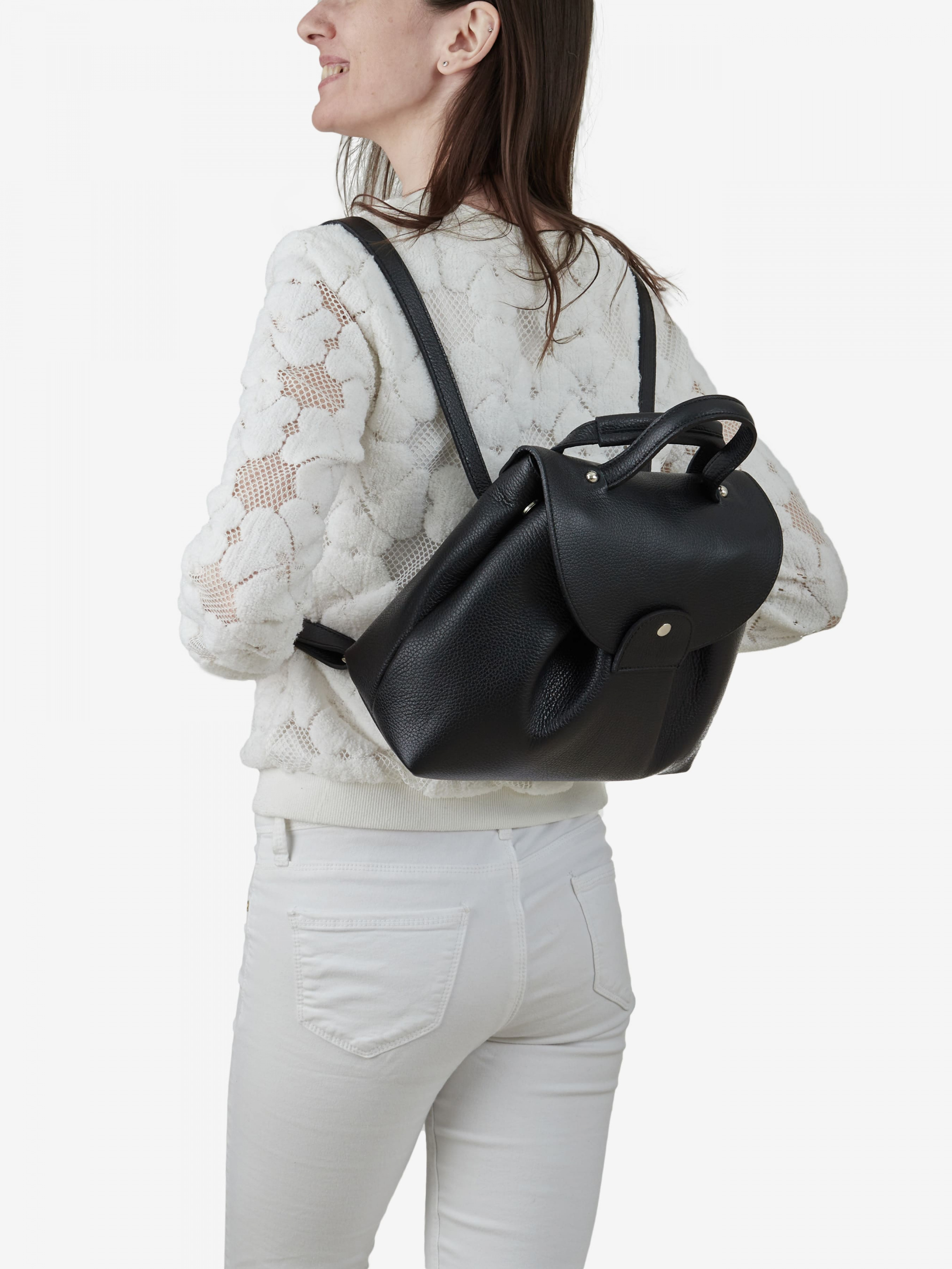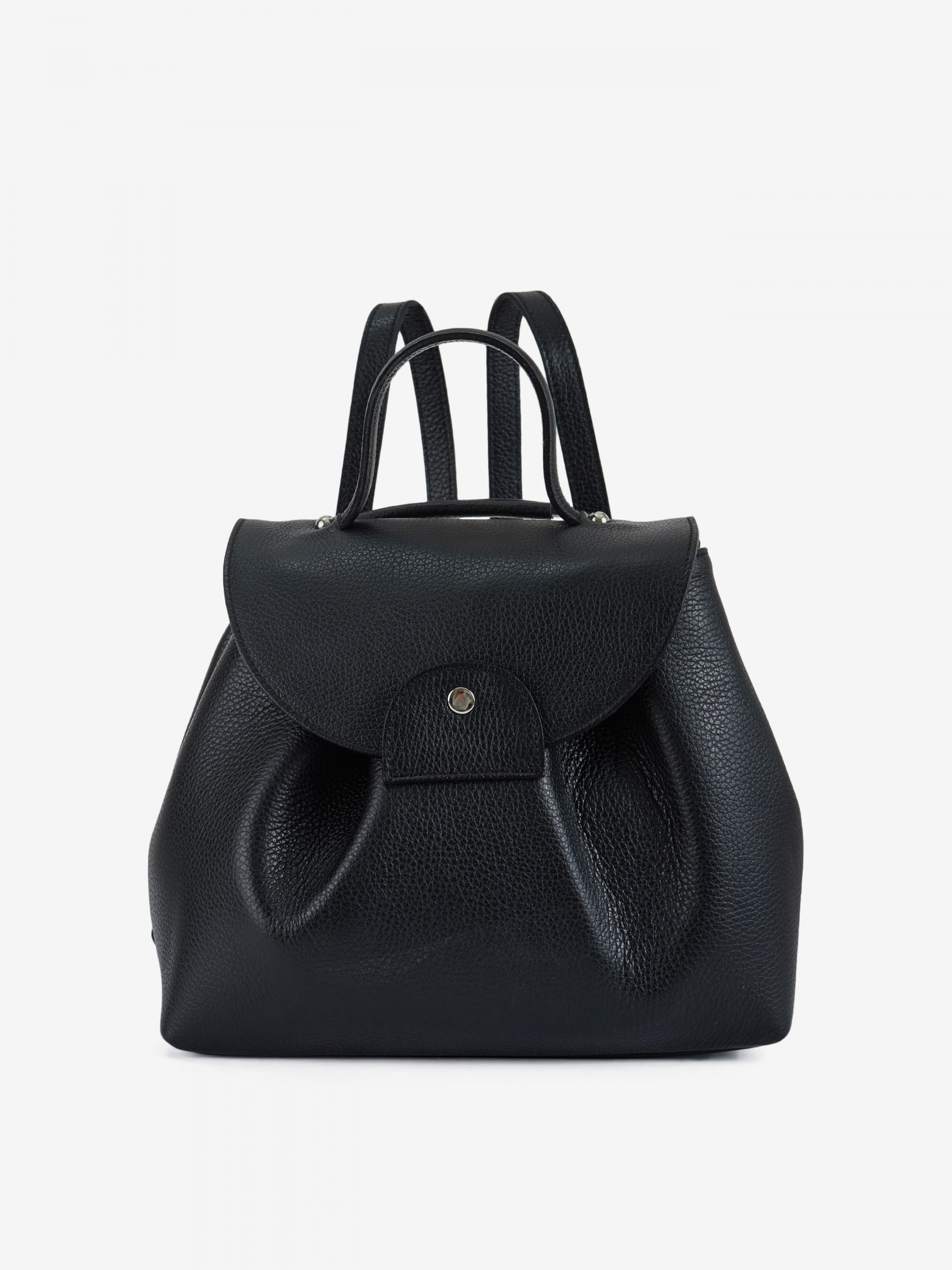 Деталі: Матеріал: 100% натуральна шкіра Шкіра флотар Фурнітура сріблястого кольору Розміри (Ш x В x Г) – 27 x 24 x 11 см Усередині 1 відділення та 2 кишеньки для дрібниць, одна з них на блискавці З боків є кліпси для зміни розміру та форми Підкладка бавовна Ремінець шкіряний, регулюється, незнімний, максимальна висота 65 см. З ремінця можна зробити 2 лямки та носити як рюкзак. Висота ручки 8 см Застібка: клапан на магніті
