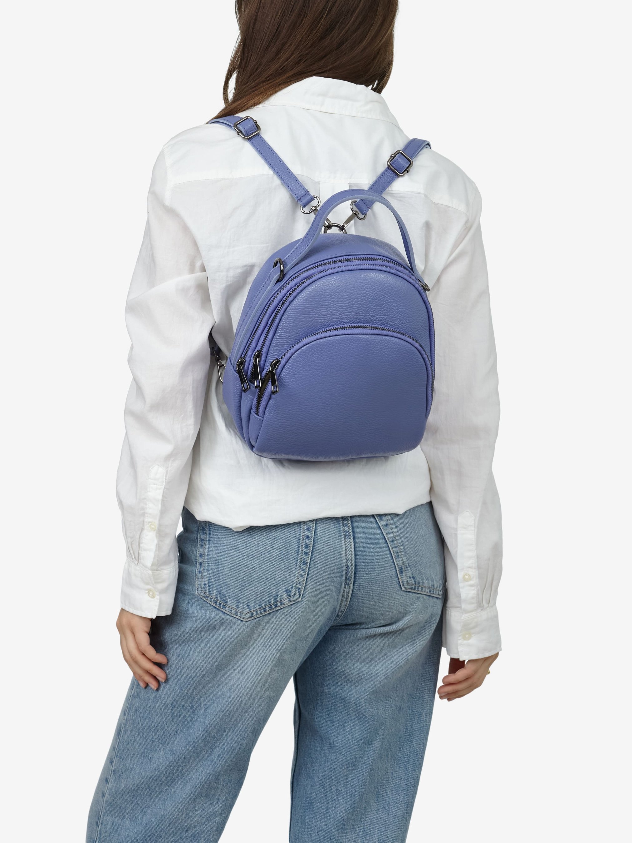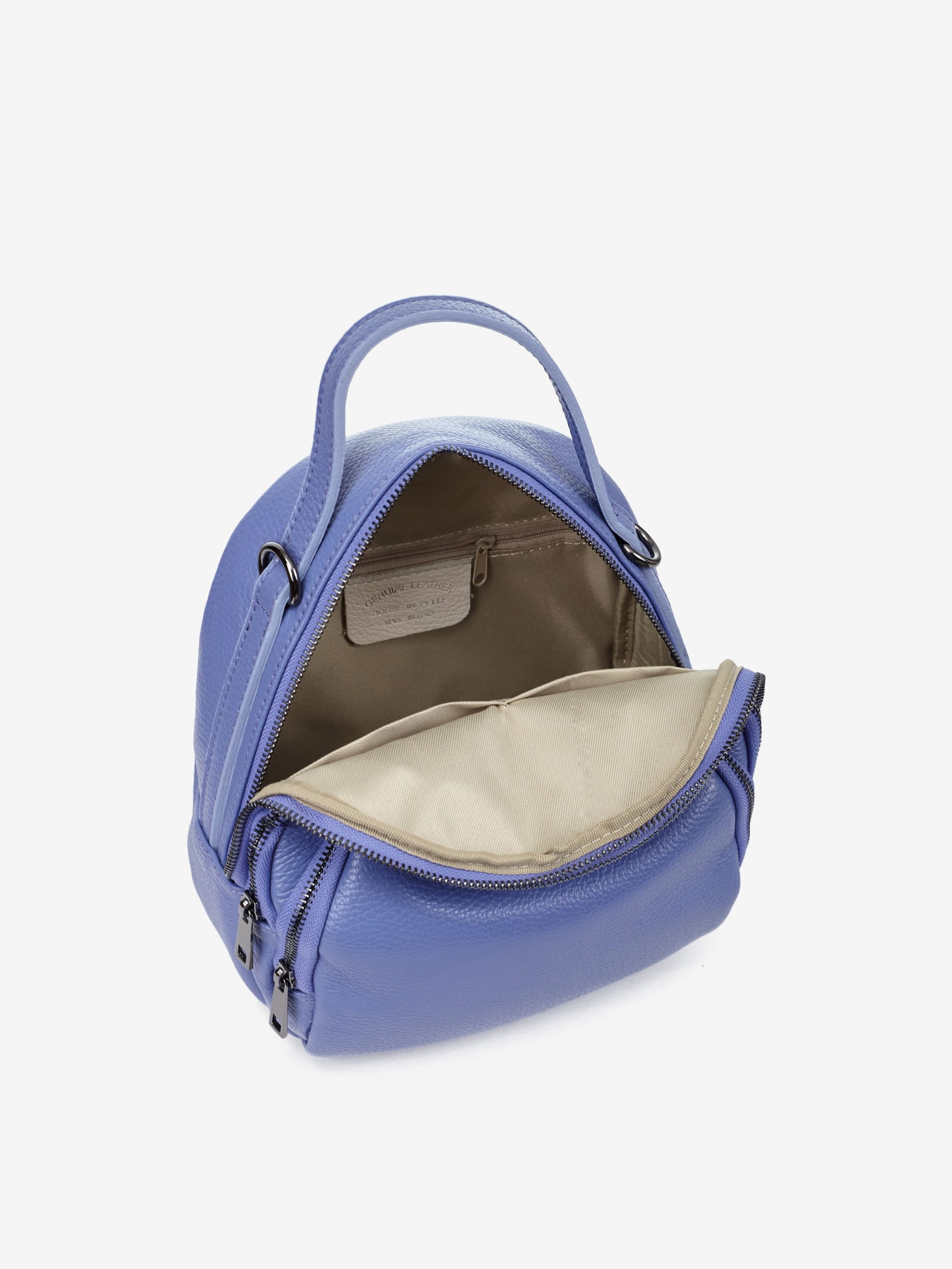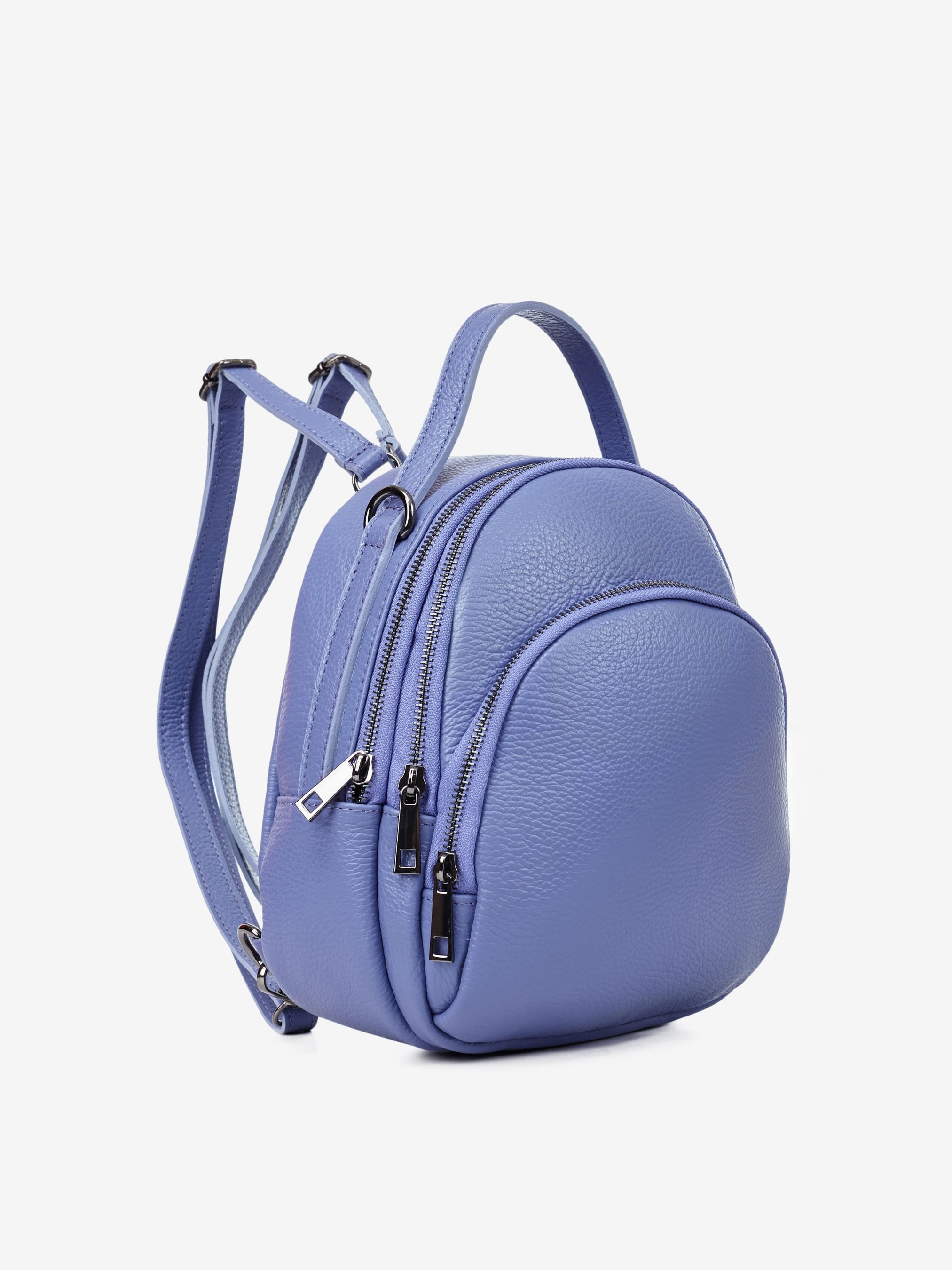 Деталі: Матеріал: 100% натуральна шкіра Шкіра має фактуру флотар Фурнітура чорного кольору Розміри (Ш x В x Г) - 22 х 25 х 10 см Усередині 2 роздільні відділення на блискавці та 3 кишеньки для дрібниць, одна з них на блискавці Спереду кишенька на блискавці Підкладка бавовна Ремінці-лямки шкіряні, регулюються, знімні, на карабінах, максимальна довжина 90 см Висота ручки 8 см Застібка: блискавка