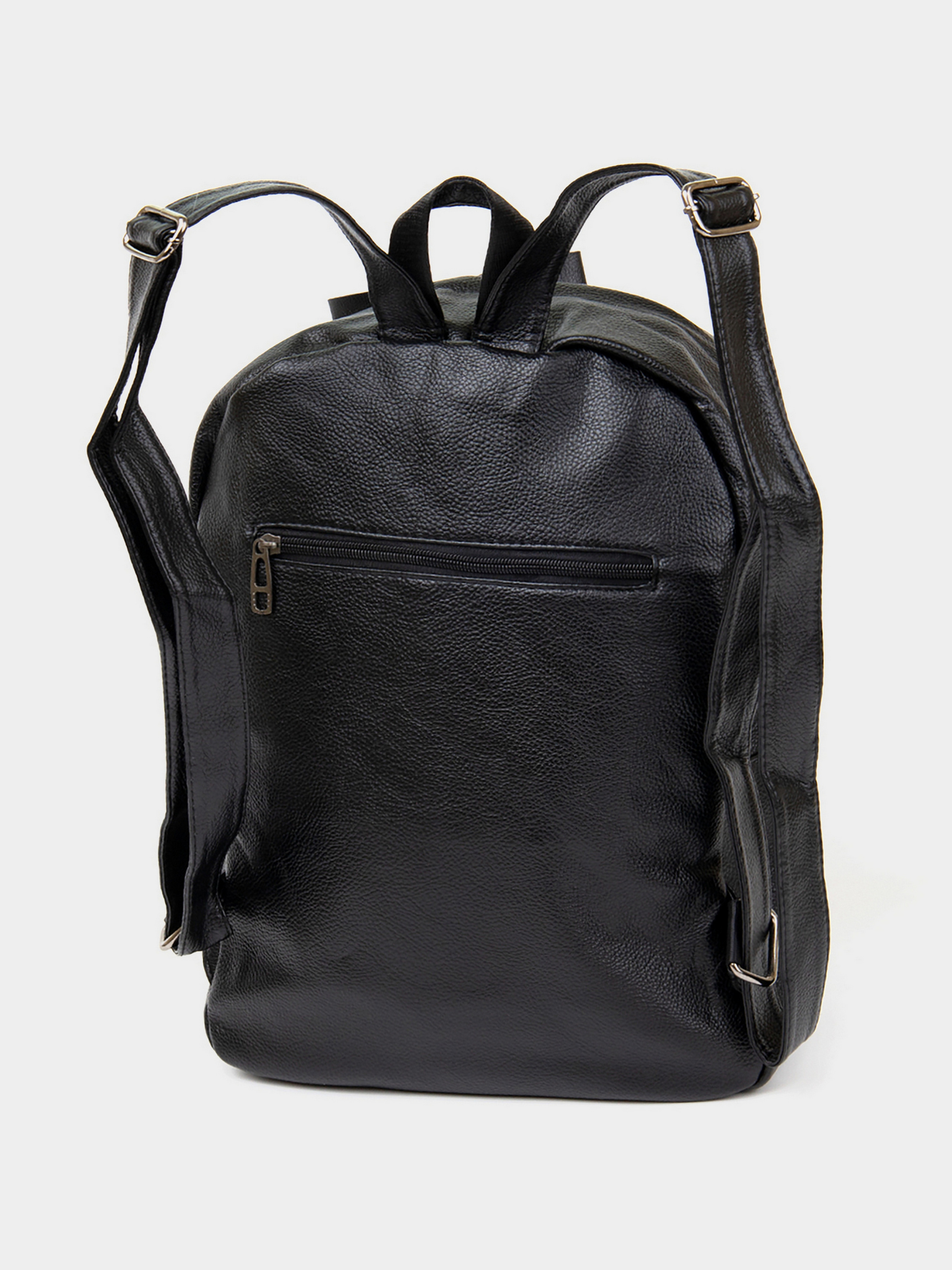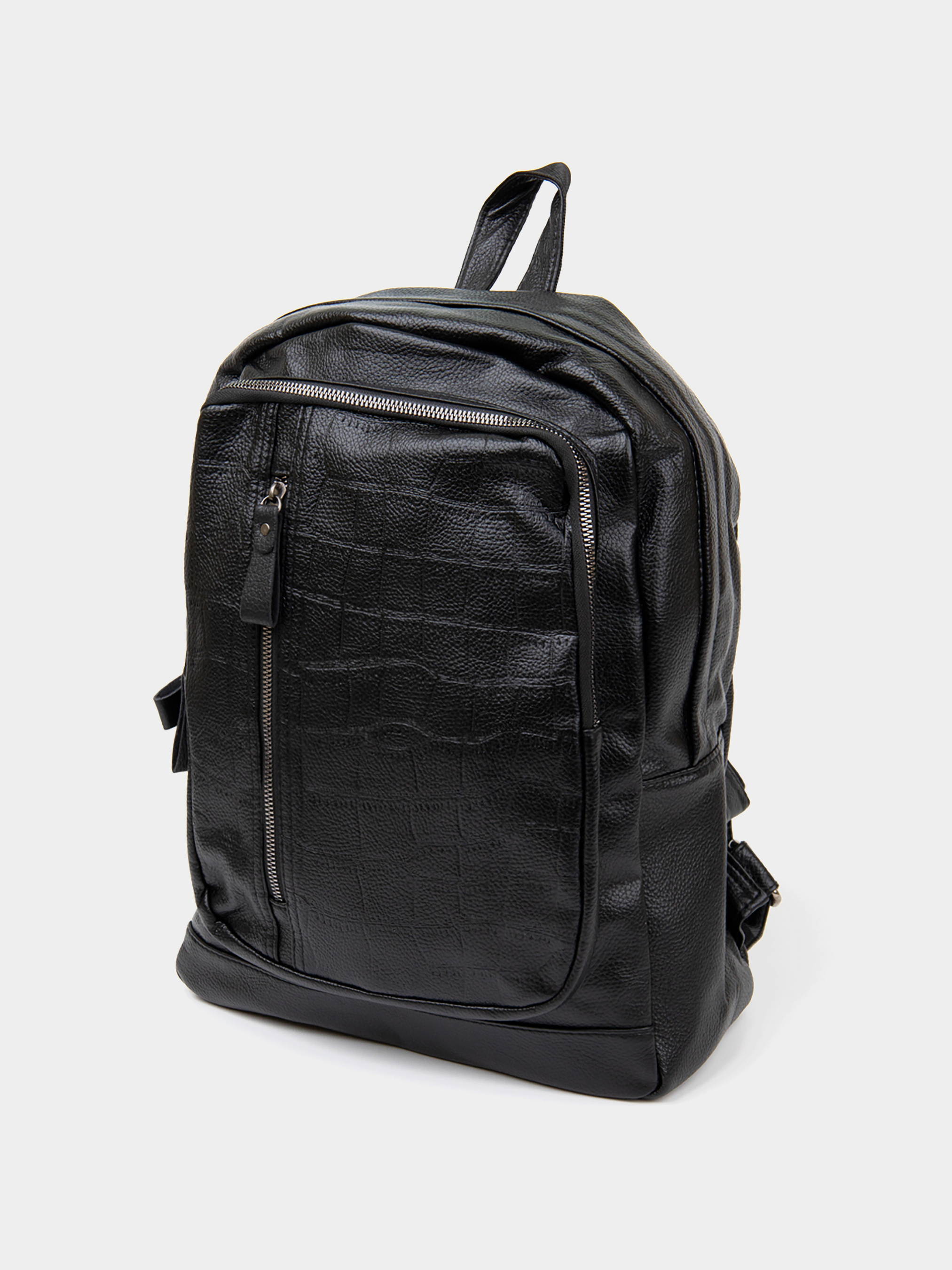 Матеріал: кожзам. Колір чорний. Розміри (ШхВхГ, см): 28,5х36х10,5 см. Країна виробник: Китай. Бренд: Vintage. Опис: - основне відділення на блискавці; - потайна кишеня на блискавці всередині сумки; - двінакладні відкриті кишені; - кишеня на блискавці на тильній стороні; - накладна кишеня на блискавці на лицьовій стороні і вбудована кишеня на блискавки вертикального типу на лицьовій стороні; - ручка для носіння в руці; - регульовані лямки на плечі. Місткий рюкзак зі шкірозамінника досить щільного і при цьому не грубого. Аксесуар доповнено сріблястою фурнітурою. На лицьовій стороні виробу тиснення під екзотичну шкіру. Усередині рюкзак доповнений якісною текстильною підкладкою чорного кольору. У аксесуарі ви зможете носити планшет, щоденник, особисті речі, термос. Рюкзак підійде для подорожей за місто або на кожен день, якщо ви носите досить речей. Також рюкзак зі шкірозамінника ідеальний для студентів і школярів. Ми впевнені, що ви залишитеся задоволені якістю рюкзака на всі 100%.