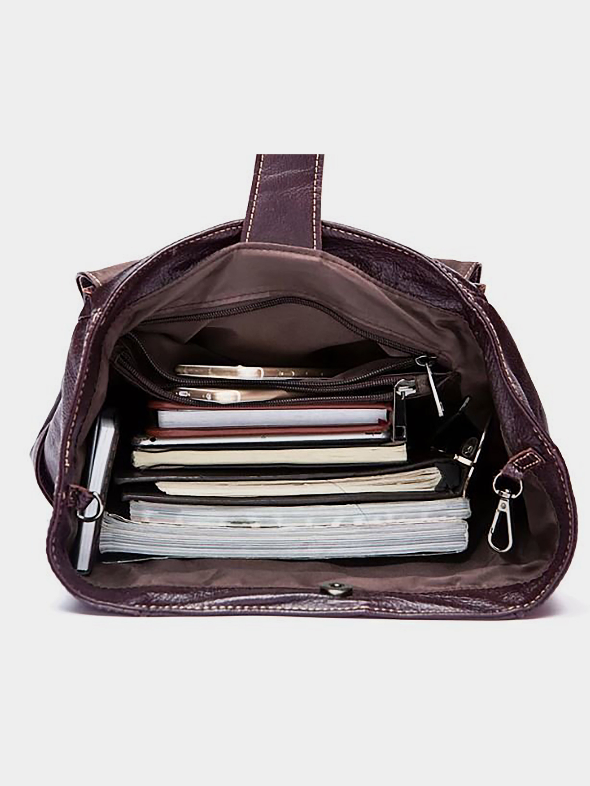 Матеріал: натуральна шкіра високої якості; Колір: чорний; Розміри (ШхВхГ, см): 30х43х16. Країна виробник: Китай. Бренд: Vintage. Всередині: - одне вмістке відділення; - кишенька перегородка на блискавці; - відкрита кишеня; - потайна кишеня на блискавці; Закривається на: - карабін; - хлястик з магнітом; - клапан з двома кнопками; Ззовні: - накладна кишеня на блискавці знизу; - дві бічні кишені на блискавці; - дві регульовані плечові лямки з комбінації шкіри і текстилю. - на тильній стороні вертикальна кишеня на блискавці. Дуже вмісткий шкіряний рюкзак класичного кольору. Аксесуар м'який на дотик. Відмінний варіант як для міста, так і в поїздку. Модель підійде як для чоловіків, так і для жінок. Аксесуар не важкий. Рюкзак дуже добре носиться і зручний у використанні. Колір фурнітури: темний метал. По краях прошитий світлою ниткою. Підкладка даного аксесуара виконана з міцного текстильного матеріалу коричневого кольору. Є ручка для зручного носіння в руці і лямки - на плечі. Ідеальний і довгоочікуваний подарунок для близької людини. Впевнені, якістю ви будете задоволені. Рюкзак упакований в тканинний мішок.