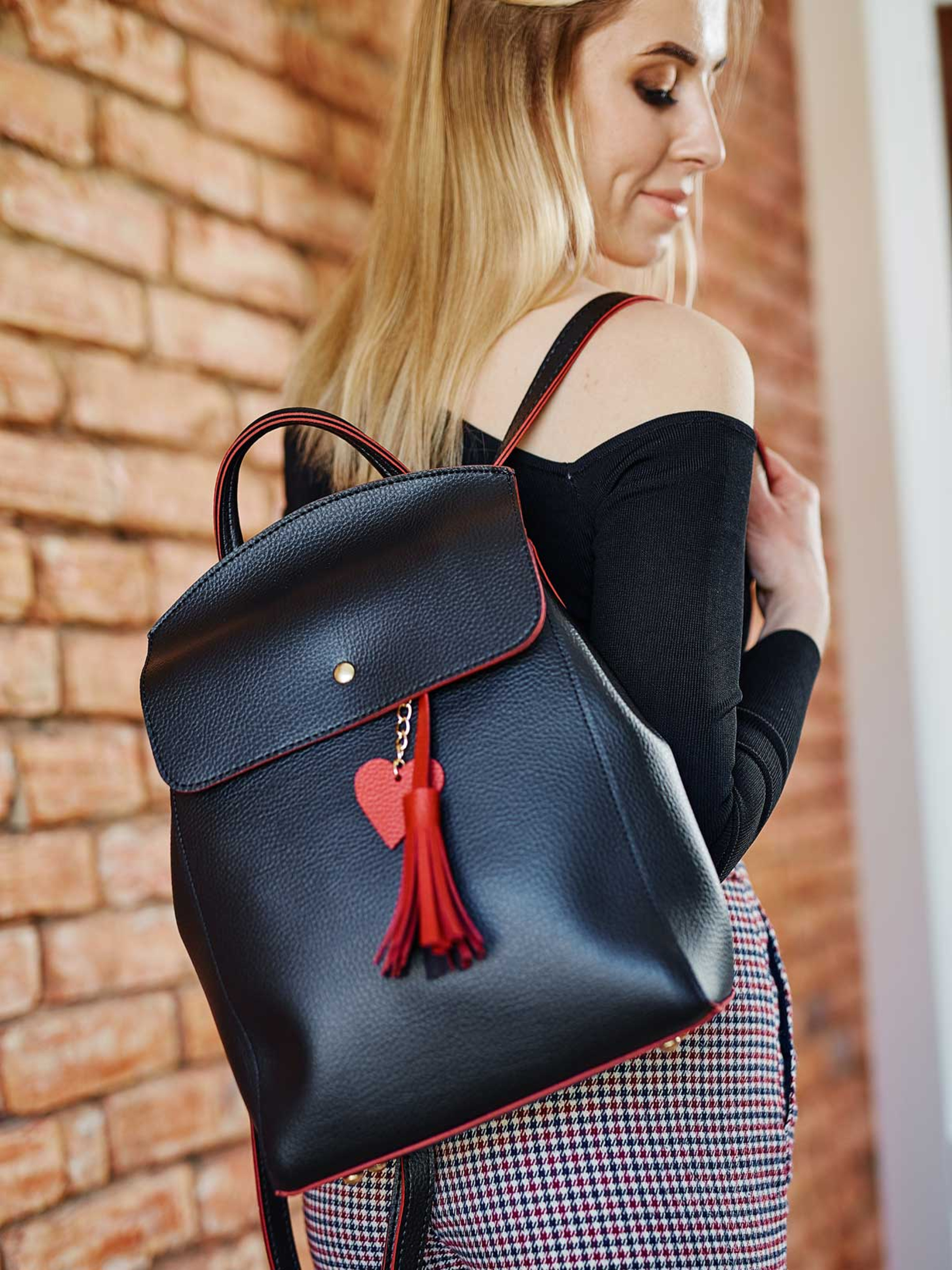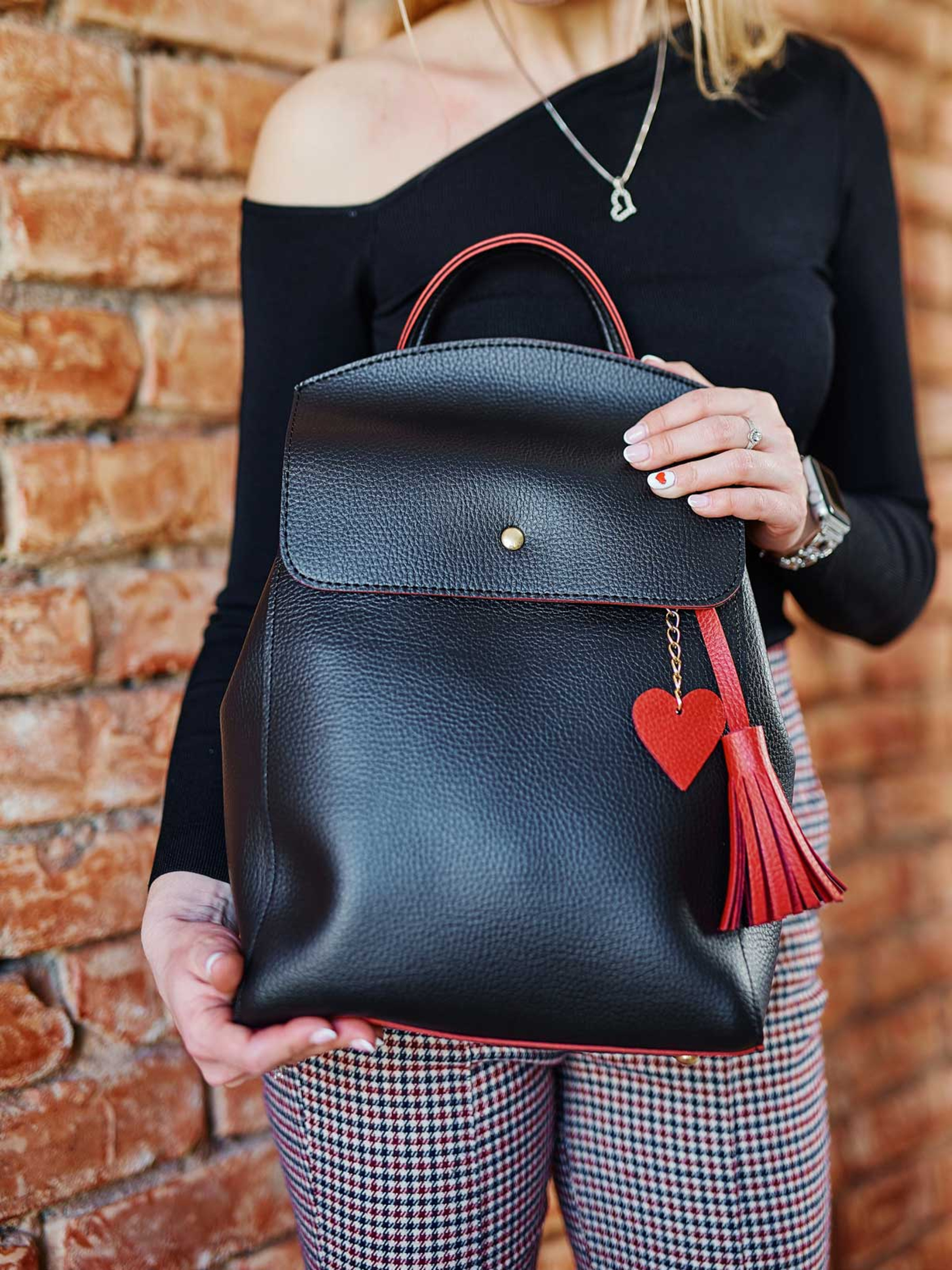 Повсякденний рюкзак WeLassie модель ryukzak-sumka-serce-chornij-z-chervonim