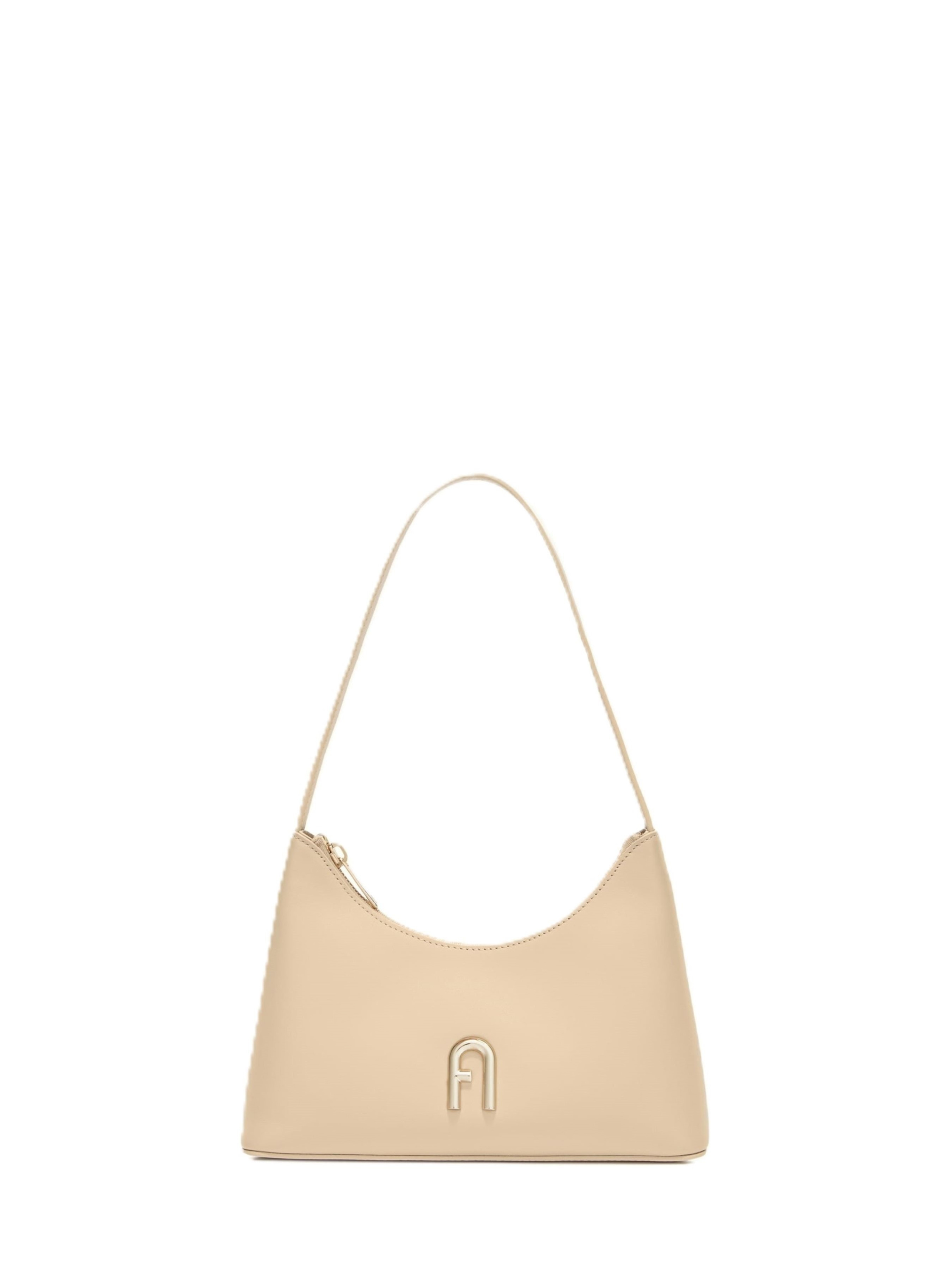 Сумка Furla DIAMANTE MINI SHOULDER BAG. Міні сумка зручної форми для носіння на плечі. Закривається на металеву блискавку. Має один внутрішній відділ з кишенею на блискавці. Металеве оздоблення має колір світлого золота. Має перфарований логотип на задній стороні сумки. Розмір: 24 x 16 x 6