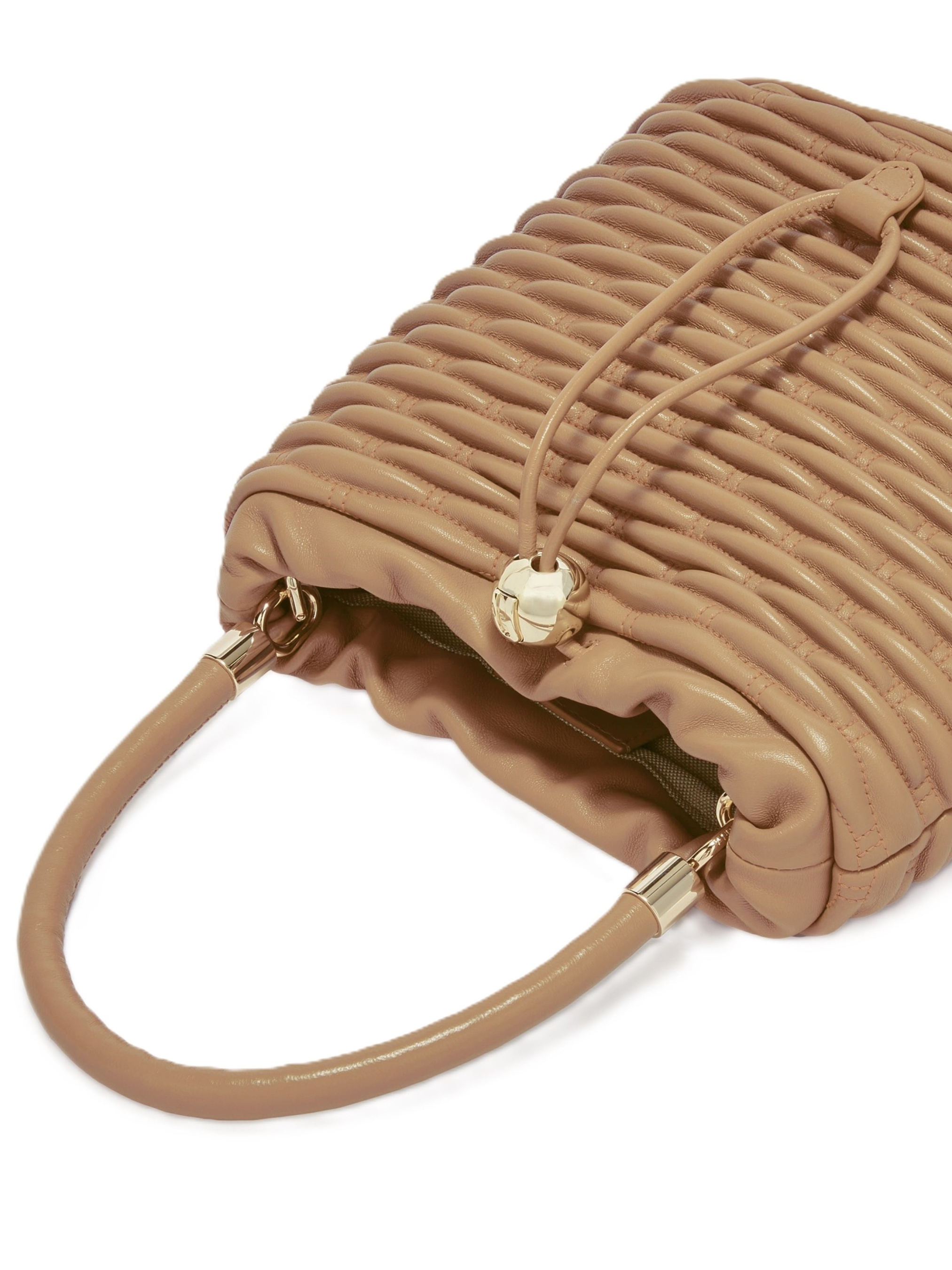 Ця міні-сумка Furla Mionido виготовлена з м'якої кватирної наппа-шкіри, нагадує маленьке гніздо завдяки своїм м'яким і округлим лініям, а також відсилає до ручного плетення верби. Вона застібається всередині на магнітну застібку, а іконічна фурнітура Sfera з логотипом Arch, ембосованим на зовнішньому шнурку, надає сучасного акценту. Дві відкриті внутрішні кишені. Верхня ручка з відповідної наппа. Регульований і знімний плечовий ремінь. Розміри 21х22х13.5