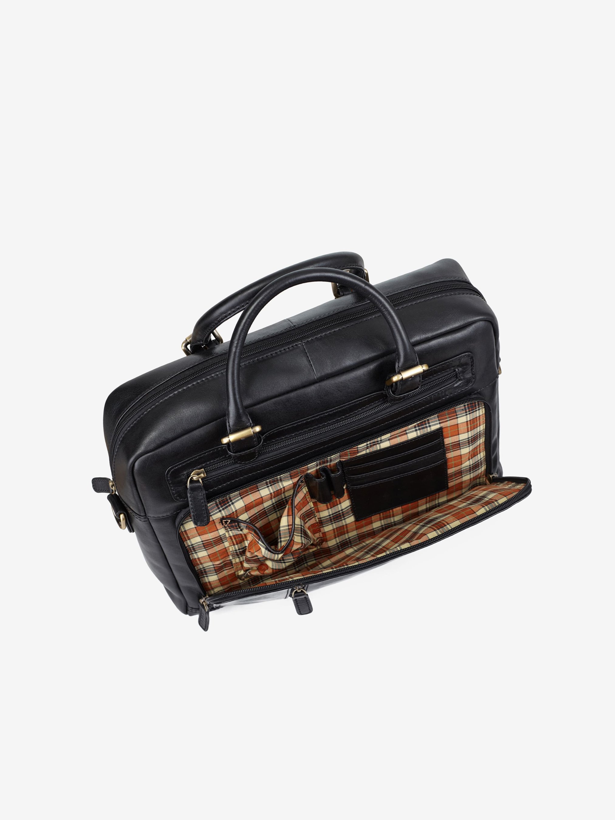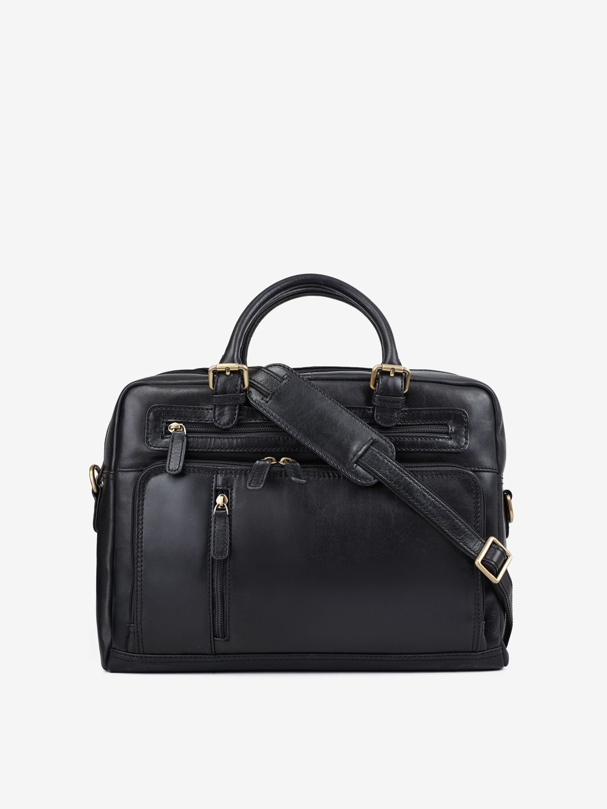 Деталі: Матеріал: 100% натуральна гладка шкіра Фурнітура бронзового кольору Розміри (Ш x В x Г) - 38 х 27 х 10 см Усередині 2 відділення, одне з них для ноутбука розміром 35 х 24 см, і велика кишеня на блискавці Попереду 3 кишеньки на блискавці, одна з них має відділення для смартфона, 2 відділення для ручок та 4 відділення для карток Позаду велика кишеня на блискавці та кріплення для валізи Підкладка: бавовна Застібка: блискавка Ремінець комбінований - текстиль зі шкіряною вставкою та наплічником, регулюється, знімний, максимальна довжина 130 см Висота ручок 11 см У комплекті йде пильовик для сумки.