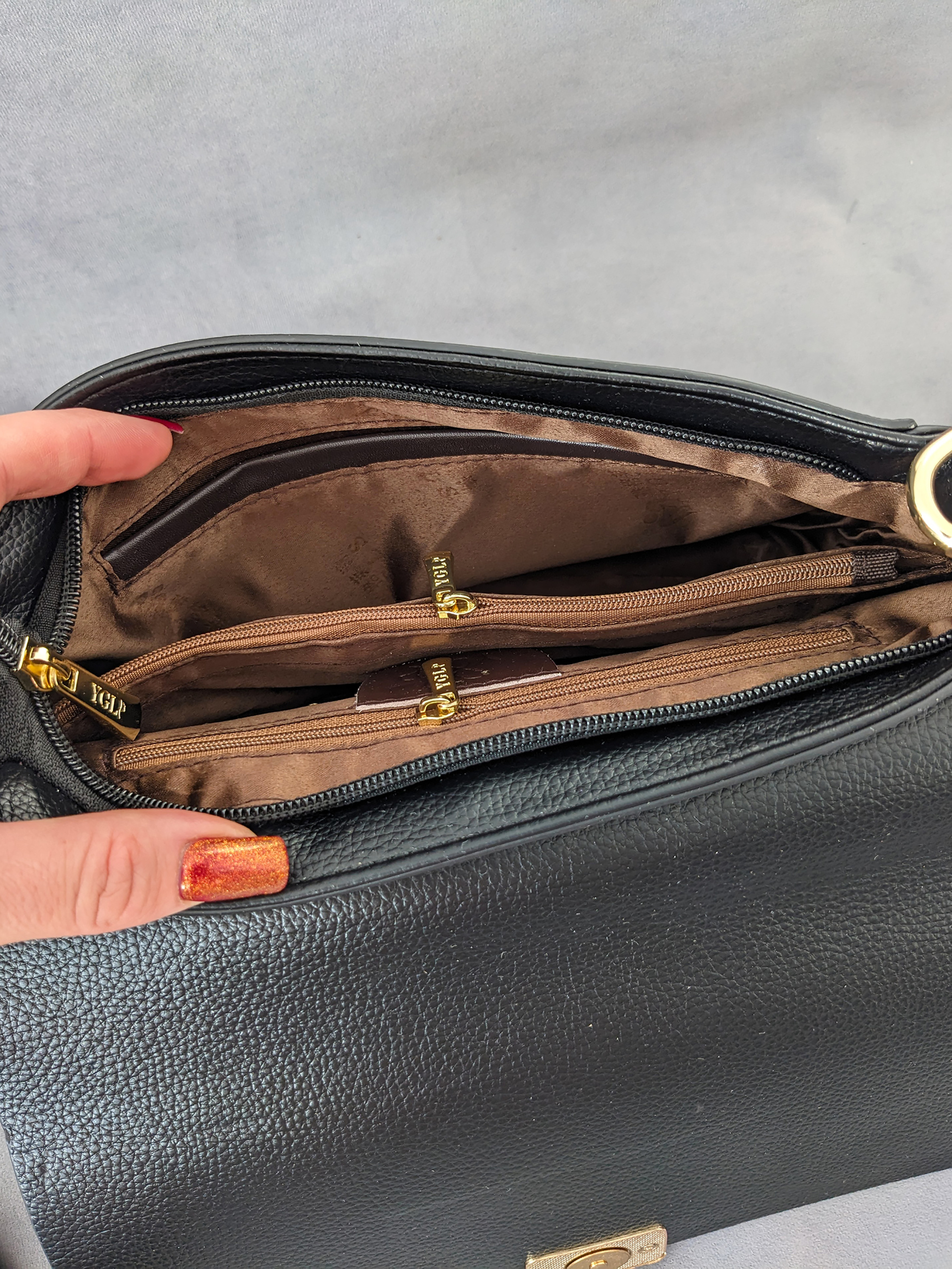 Елегантна жіноча сумка з якісної екошкіри — стильний та практичний аксесуар на кожен день. Модель має один загальний відділ на блискавці, всередині якого розташована перегородка на блискавці, що допомагає зручно організувати вміст. Додатково всередині передбачено дві кишені: одну на блискавці для цінних речей та одну відкриту — для дрібниць. Зовні сумка доповнена функціональною кишенею на блискавці, яка забезпечує швидкий доступ до необхідного. У комплекті два ремінці: короткий для носіння в руці або на плечі та довгий регульований ремінець для максимального комфорту. Якісна фурнітура та лаконічний дизайн з декоративним елементом роблять модель універсальною — вона легко доповнить як повсякденні, так і більш класичні образи. Розмір Висота 17 Ширина 23 Глибина 10