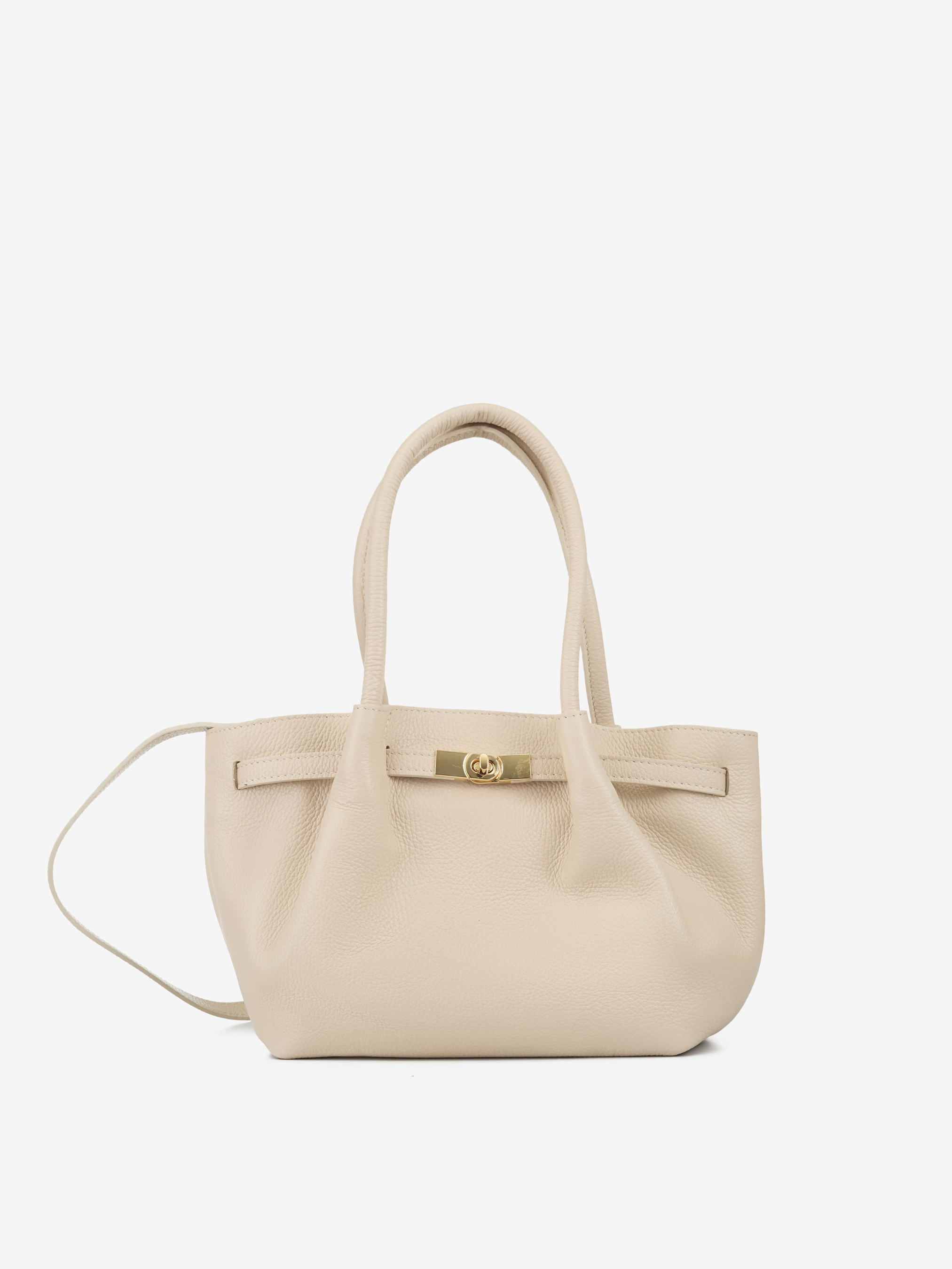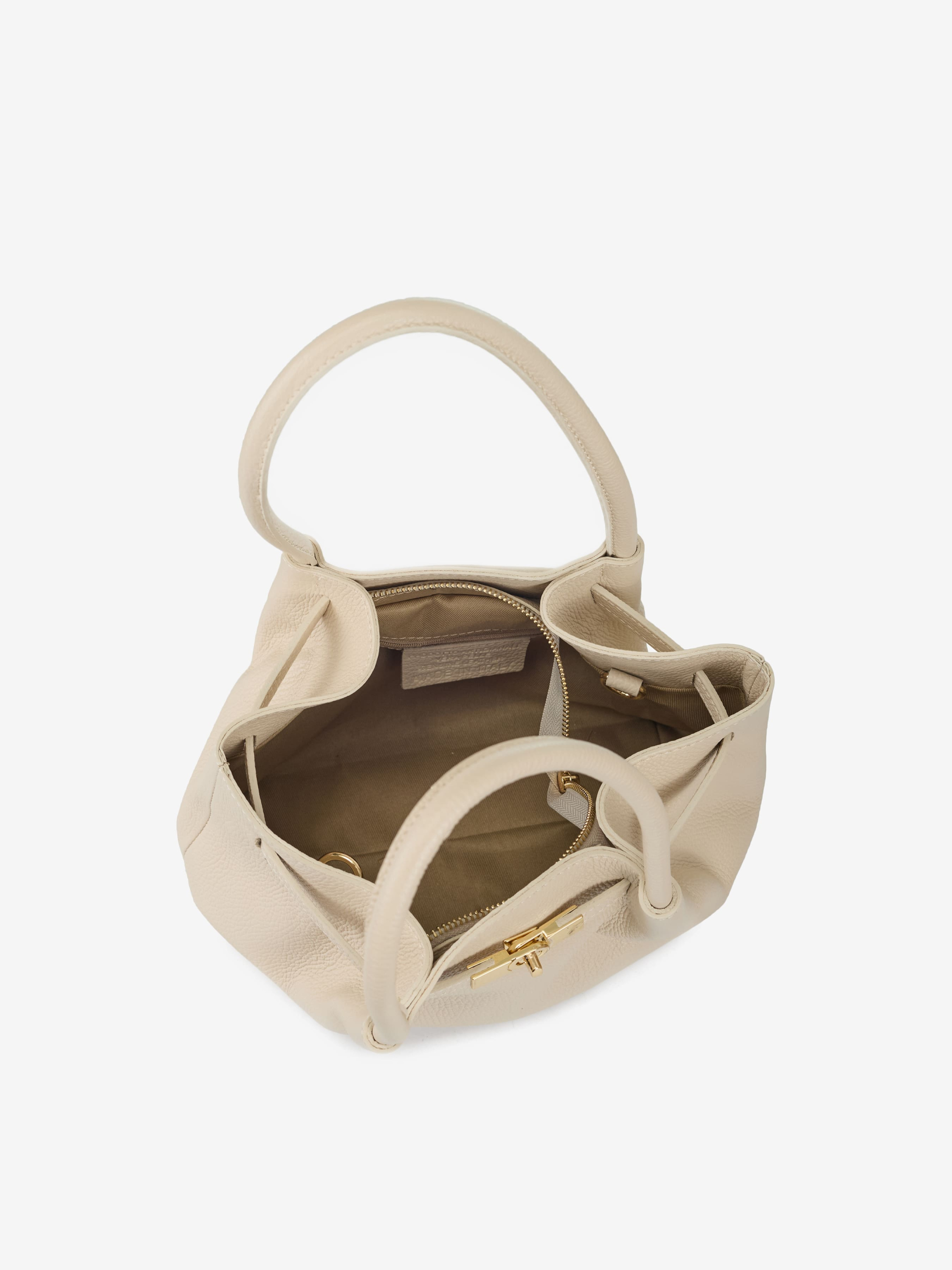Деталі: Матеріал: 100% натуральна шкіра флотар Фурнітура золотистого кольору Розміри (Ш x В x Г) – 32 x 20 x 11 см Усередині 1 відділення 1 кишенька на блискавці Підкладка: бавовна Застібка: блискавка Висота ручок 18 см Ремінець шкіряний, знімний, регулюється, максимальна довжина 120 см