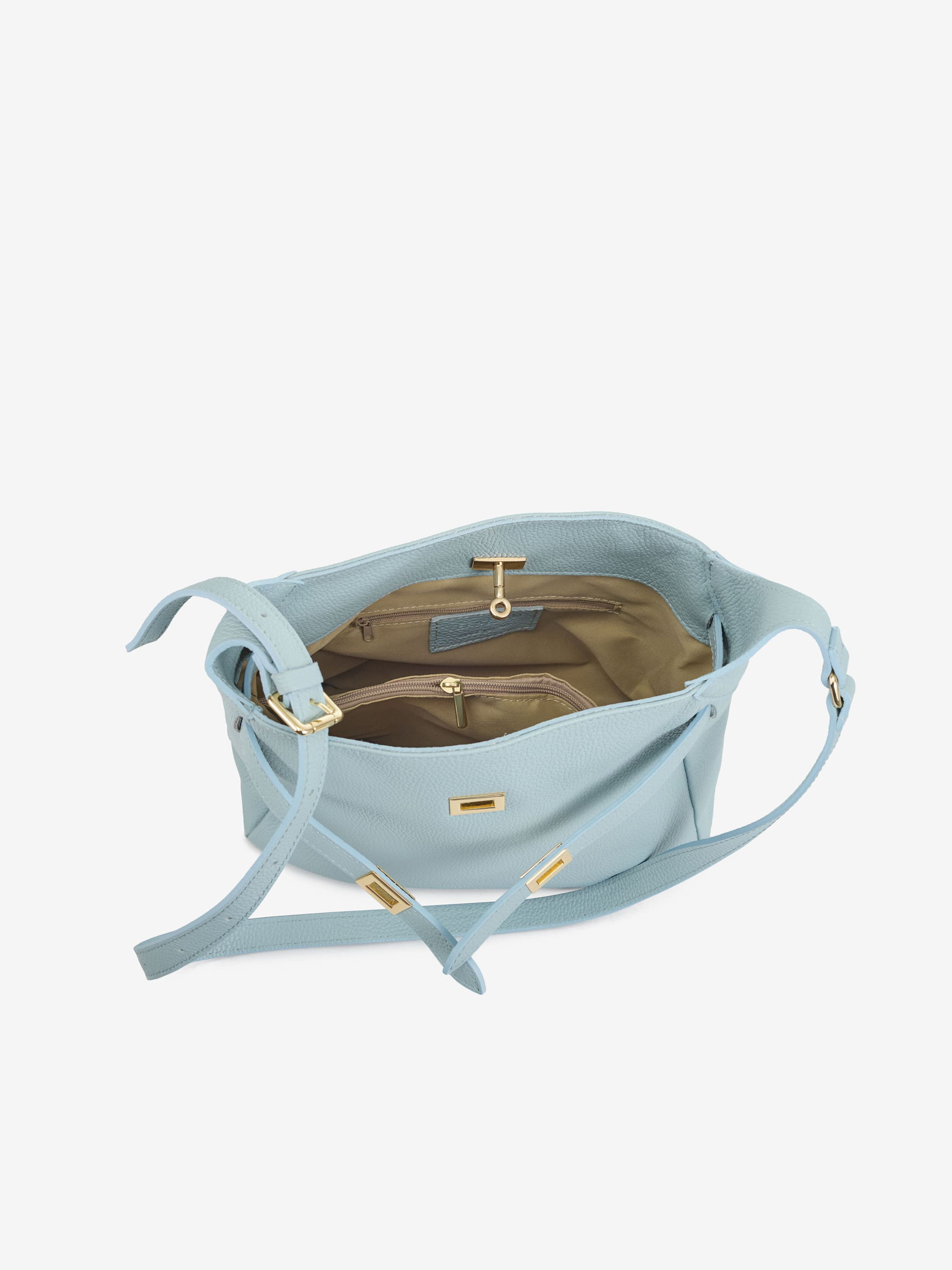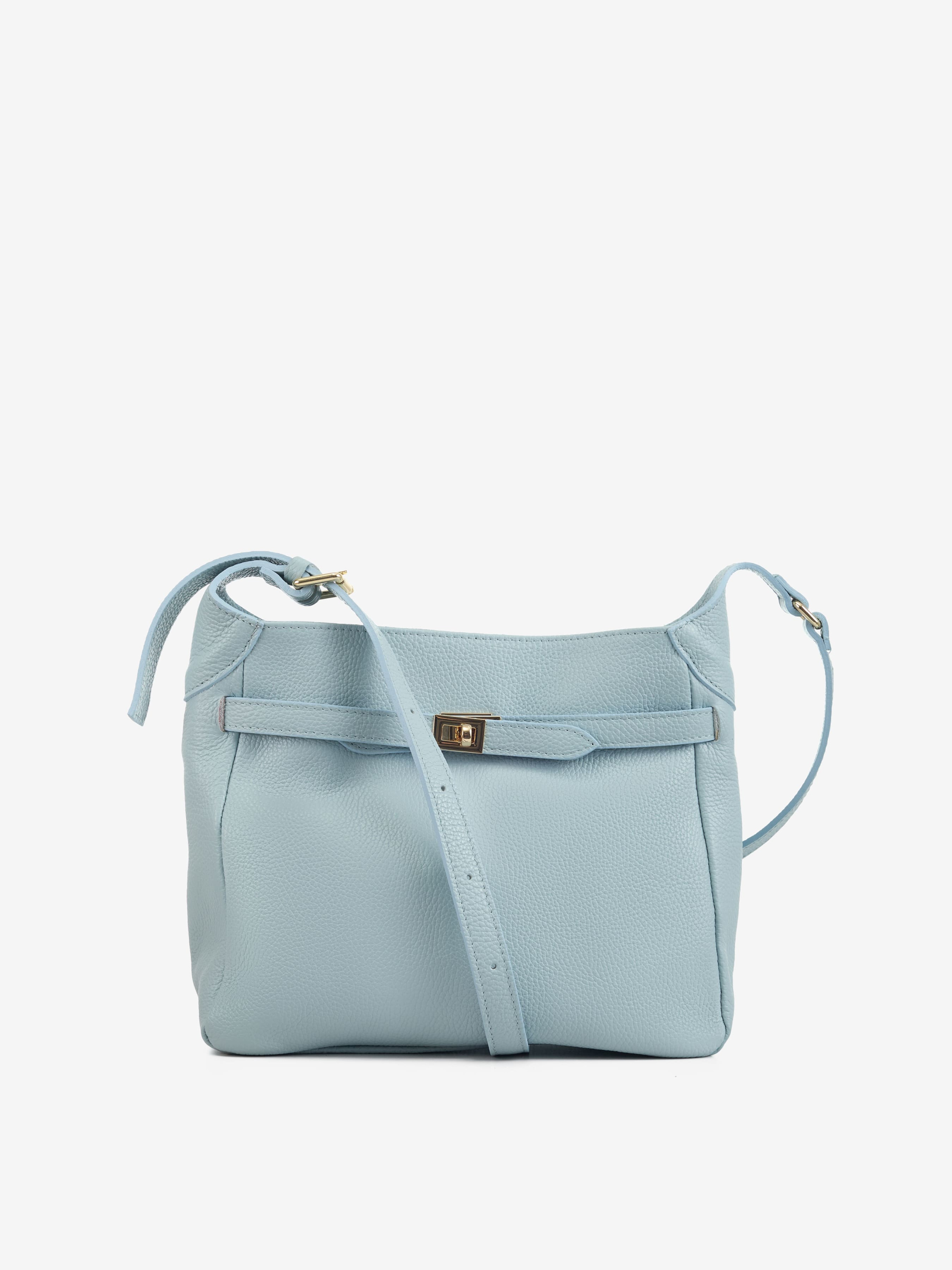 Деталі: Матеріал: 100% натуральна шкіра флотар Фурнітура золотистого кольору Розміри (Ш x В x Г) – 32 x 26 x 10 см Усередині 2 відділення, розділені кишенею на блискавці, 1 кишенька для дрібниць блискавки Підкладка: бавовна Застібка: поворотний замок Ремінець шкіряний, не знімний, регулюється, максимальна довжина 100 см