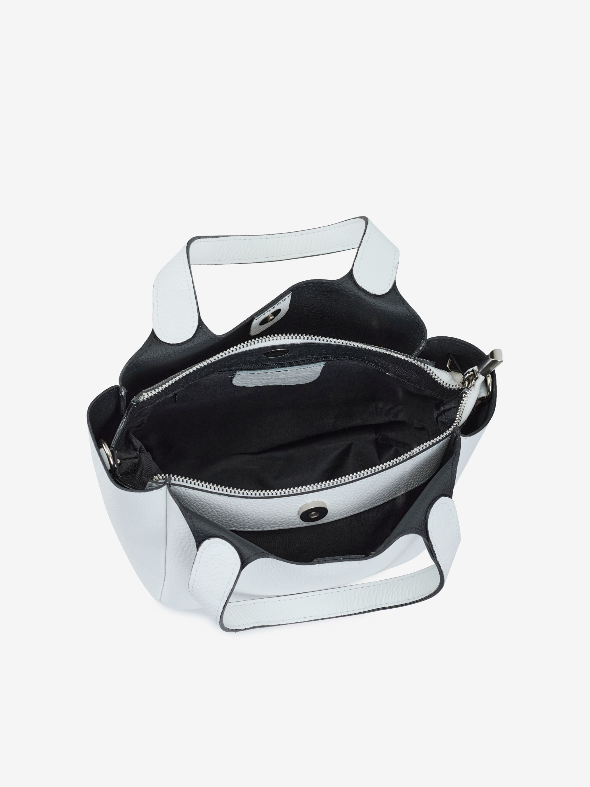 Деталі: Матеріал: 100% натуральна шкіра флотар, Фурнітура сріблястого кольору Розміри (Ш x В x Г) – 27 x 18 x 12 см Усередині 1 відділення 1 кишенька для дрібниць на блискавці спереду і ззаду по одній кишеньці без застібки Підкладка: бавовна Застібка: блискавка, магніт Ремінець шкіряний, знімний, регулюється, максимальна довжина 120 см