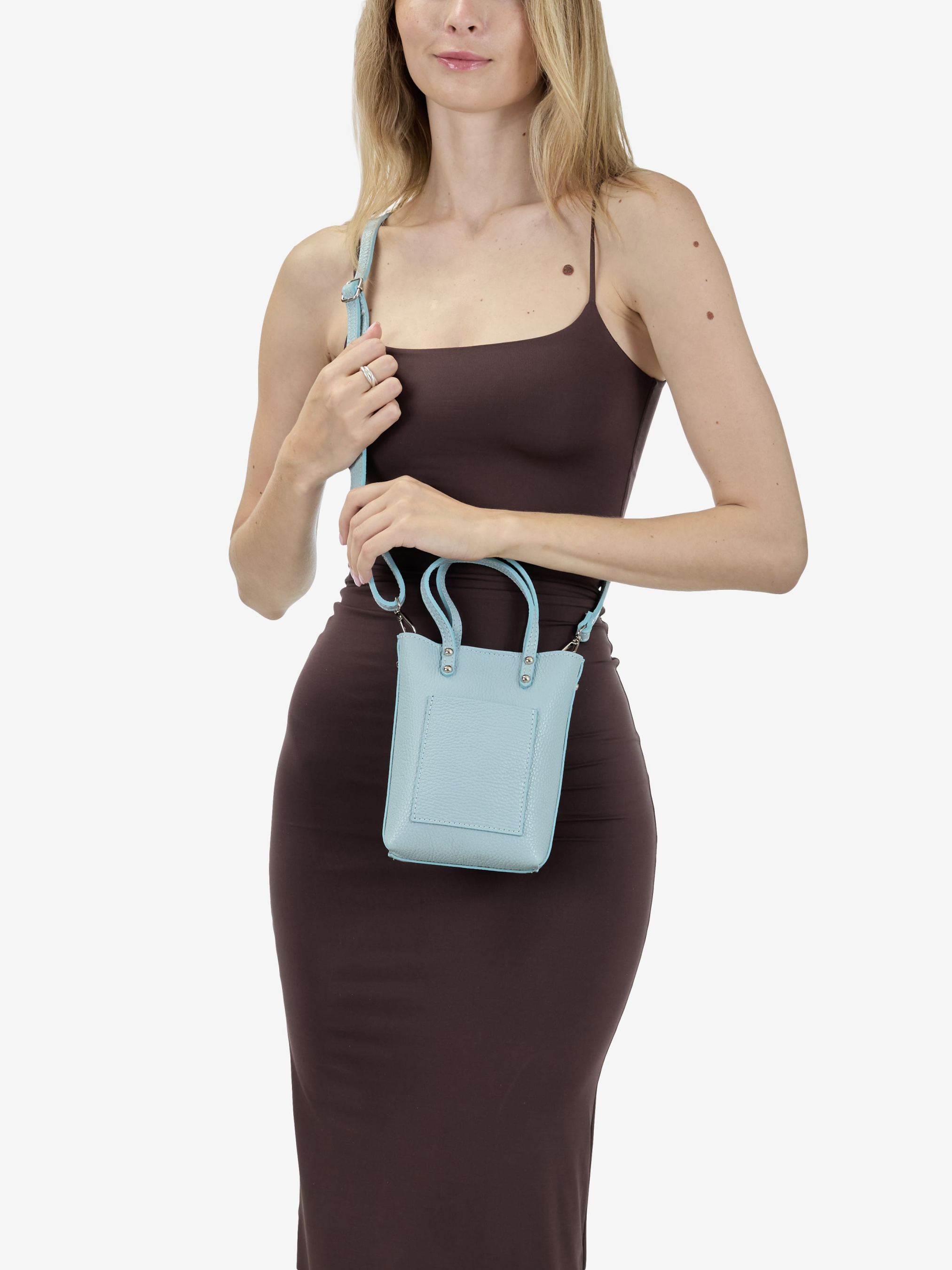 Деталі: Матеріал: 100% натуральна шкіра флотар, Фурнітура сріблястого кольору Розміри (Ш x В x Г) – 13 x 19 x 5 см Усередині 1 відділення, спереду кишенька без застібки Підкладка: замш Застібка: магніт Висота ручки: 10 см. Ремінець шкіряний, знімний, регулюється, максимальна довжина 130 см