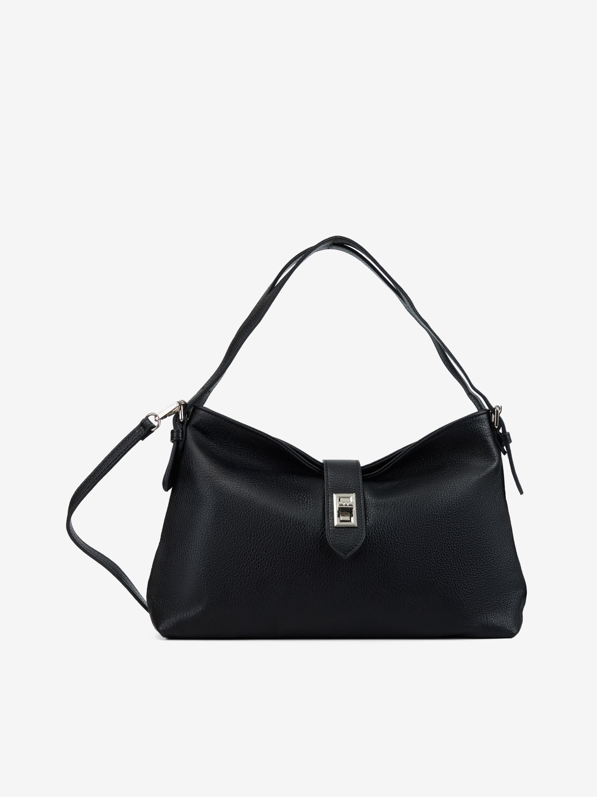 Деталі: Матеріал: 100% натуральна шкіра флотар Фурнітура сріблястого кольору Розміри (Ш x В x Г) – 36 x 23 x 11 см Усередині 1 відділення, 2 кишеньки для дрібниць, 1 з них на блискавці Підкладка: Текстиль Застібка: блискавка, клапан із поворотним замком Висота ручки: 20 см. Ремінець шкіряний, знімний, регулюється, максимальна довжина 120 см