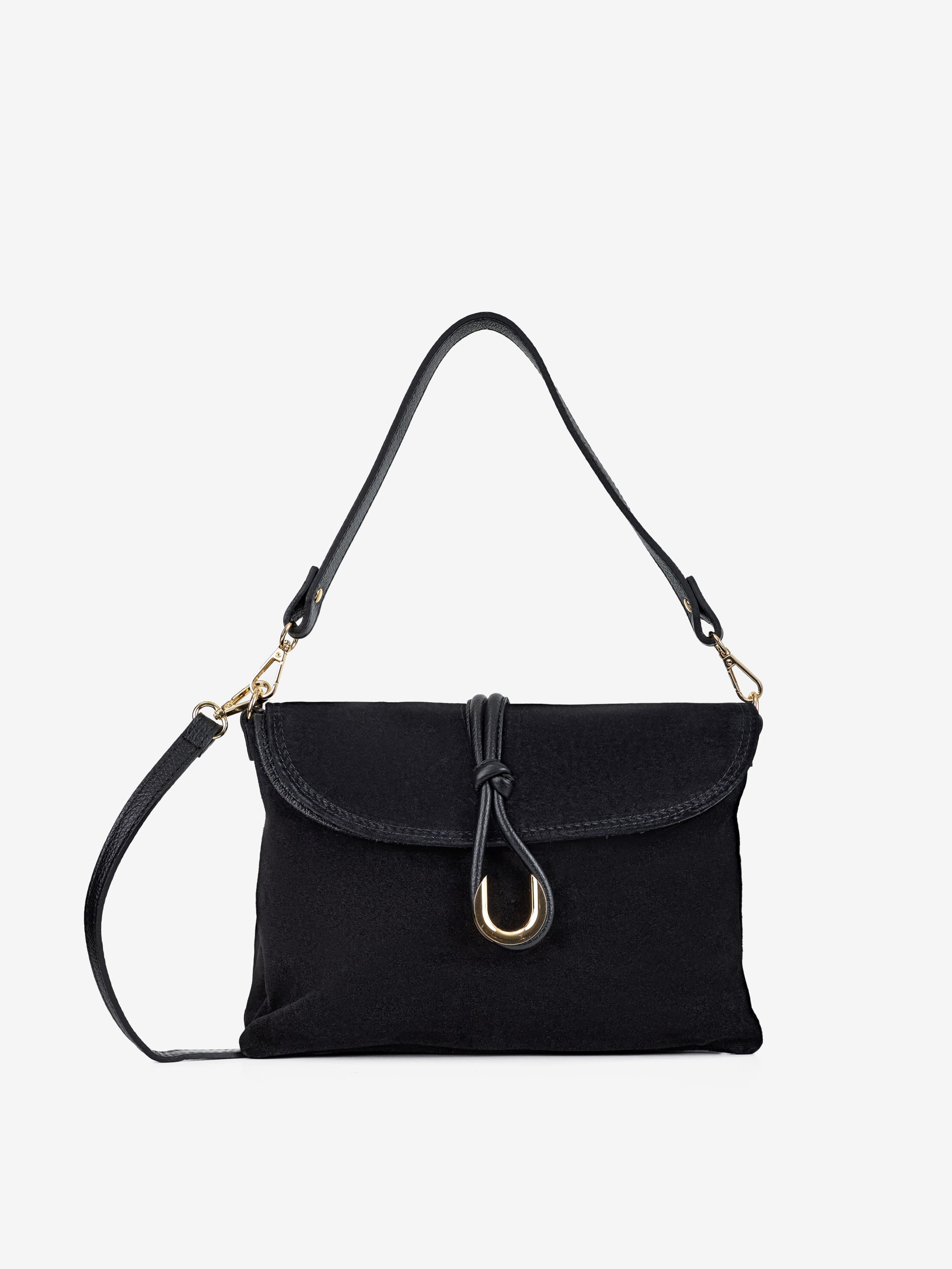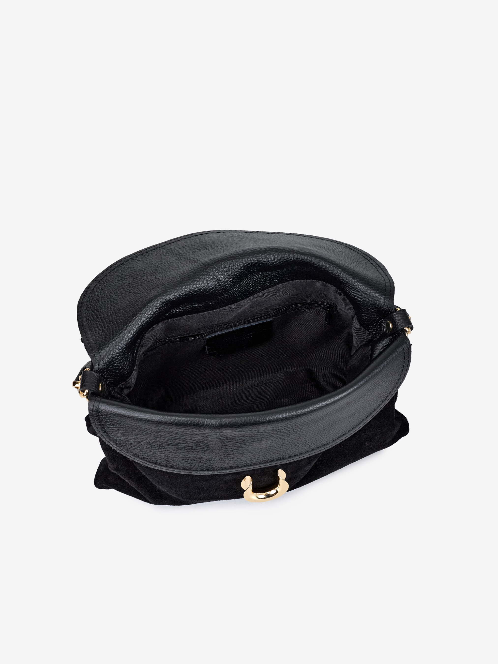 Деталі: Матеріал: 100% натуральна замша, натуральна шкіра флотар Фурнітура золотистого кольору Розміри (Ш x В x Г) – 30 x 21 x 7 см Усередині 1 відділення та кишенька на блискавці для дрібниць Підкладка: бавовна Застібка: клапан на застібці-засувці Ремінець шкіряний, знімний, регулюється, максимальна довжина 110 см Висота ручок 23 см