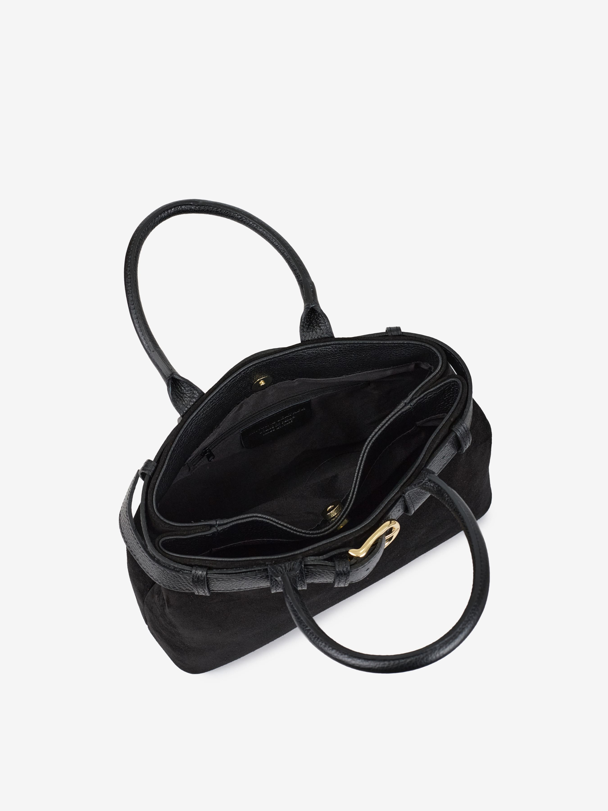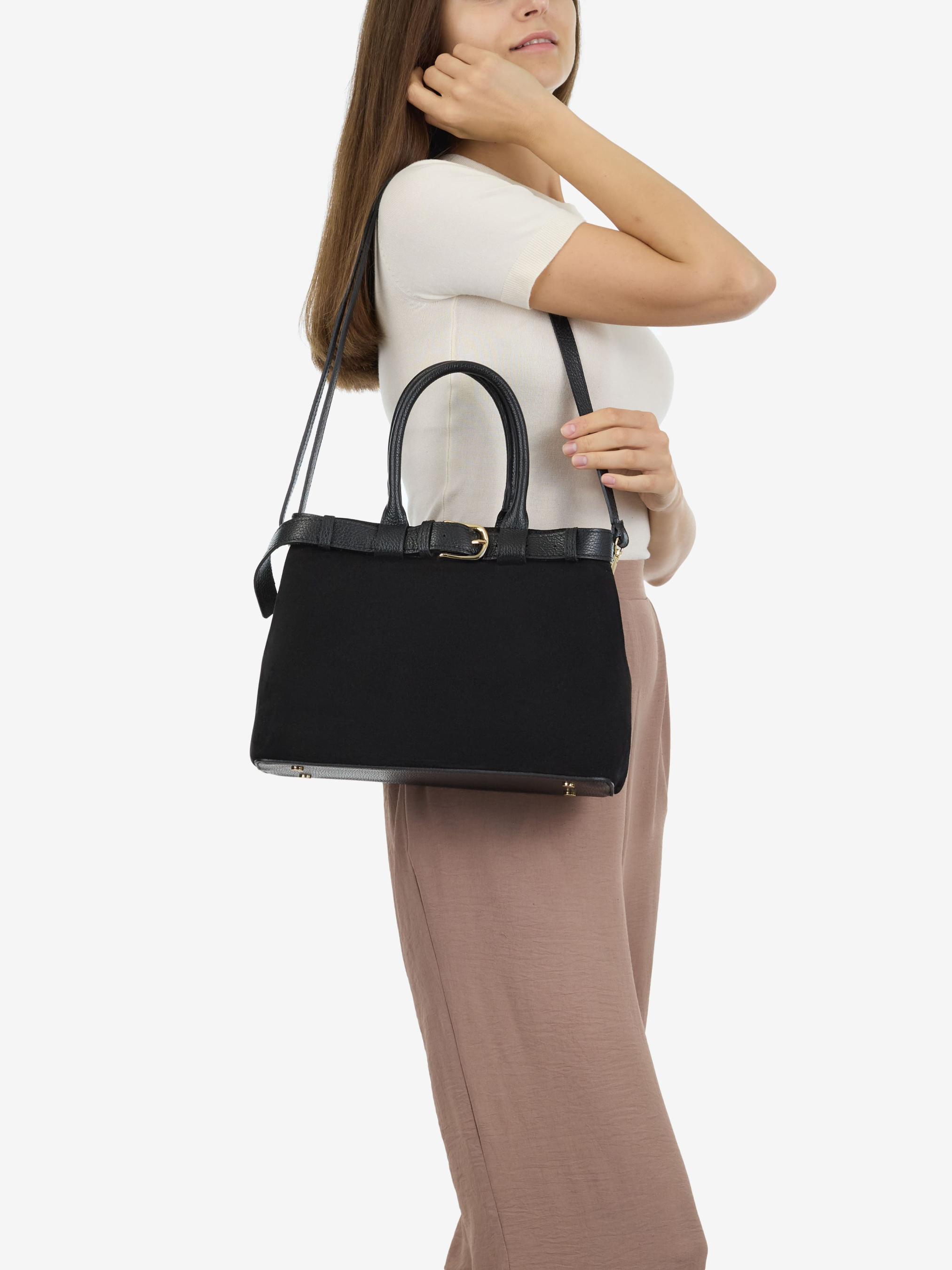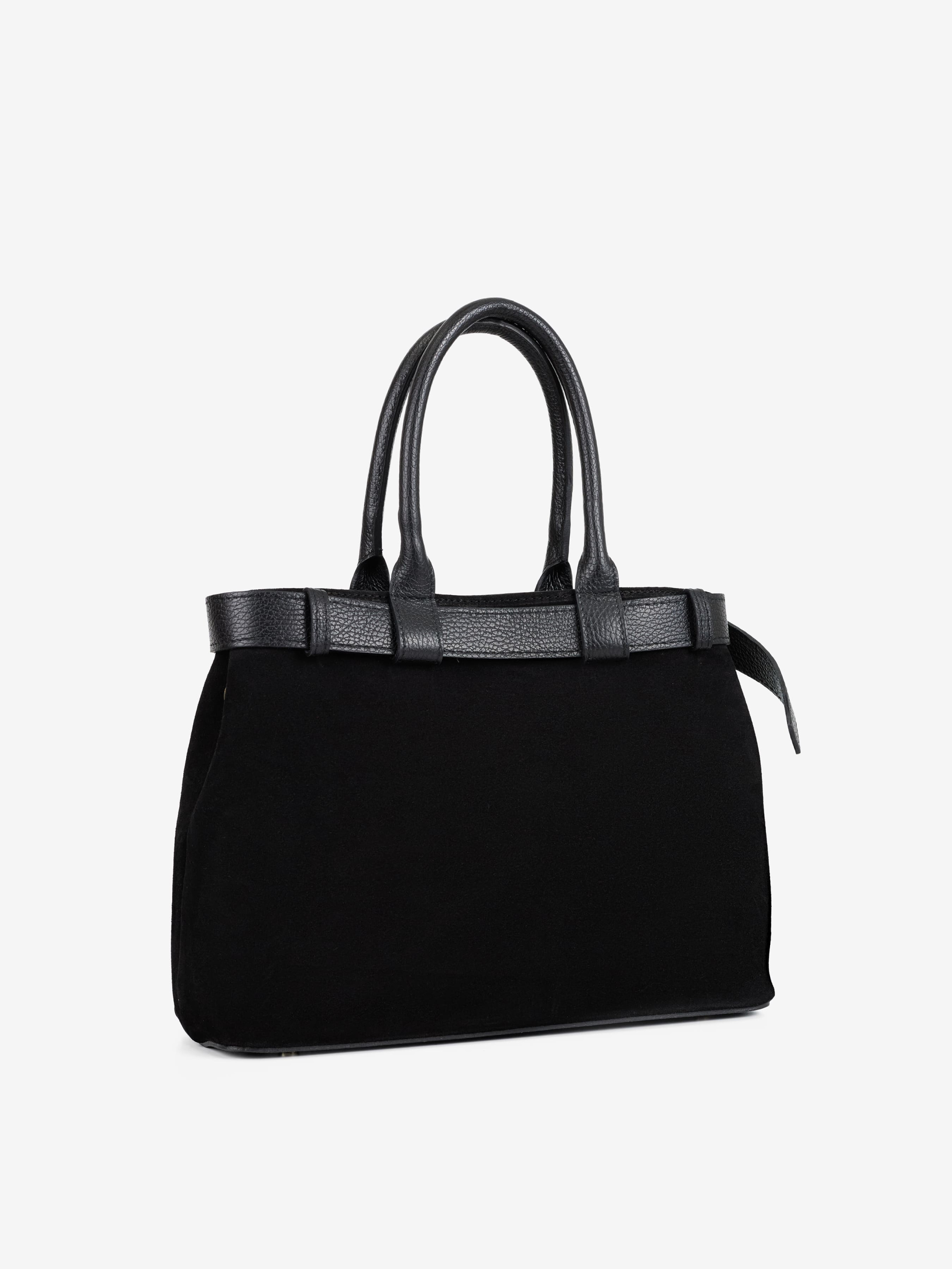 Деталі: Матеріал: 100% натуральна замша, натуральна шкіра флотар Фурнітура золотистого кольору Розміри (Ш x В x Г) – 32х23х11 см Усередині 2 відділення, 1 кишенька на блискавці для дрібниць Підкладка: бавовна Застібка: магніт Ремінець шкіряний, знімний, регулюється, максимальна довжина 125 см Висота ручки 15 см