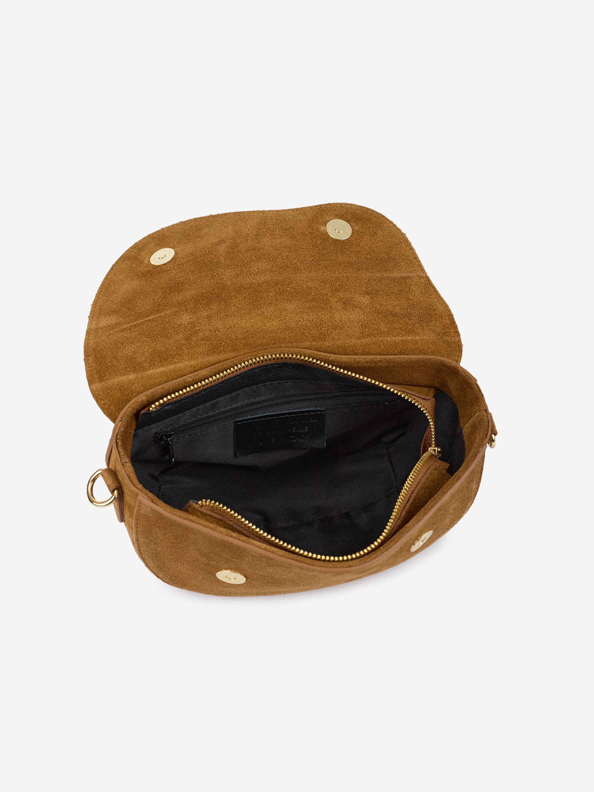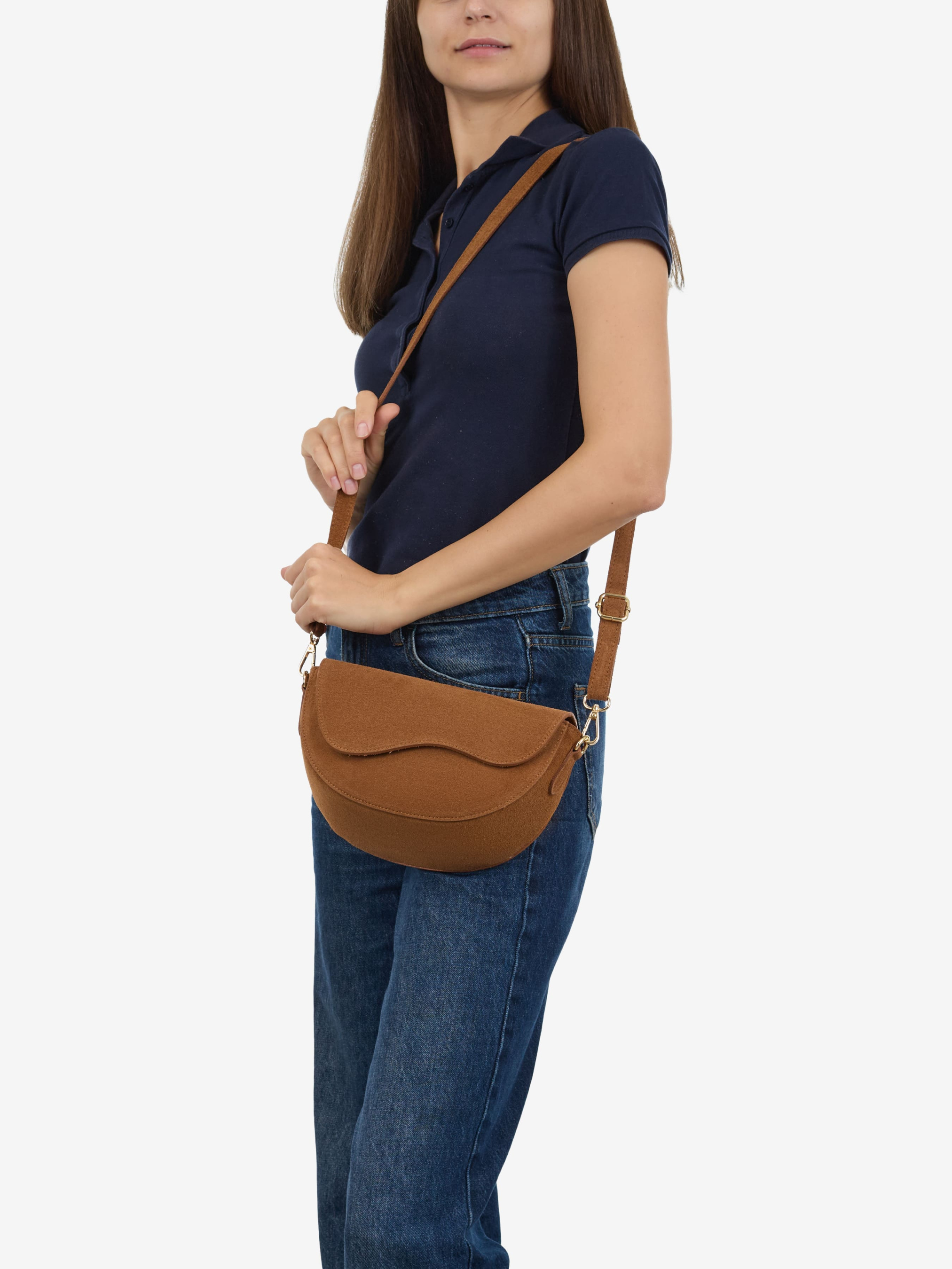 Деталі: Матеріал: 100% натуральна замша Фурнітура золотистого кольору Розміри (Ш x В x Г) – 24х13х9 см Усередині 1 відділення, 1 кишенька на блискавці для дрібниць, 1 кишенька ззаду Підкладка: бавовна Застібка: блискавка, клапан на магніті Ремінець замшевий, знімний, регулюється, максимальна довжина 125 см