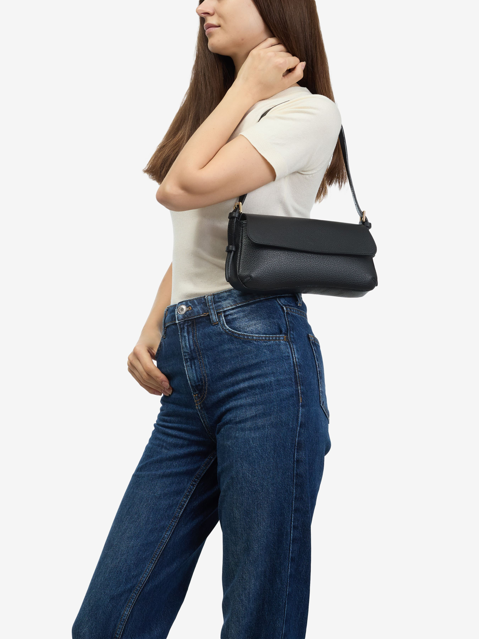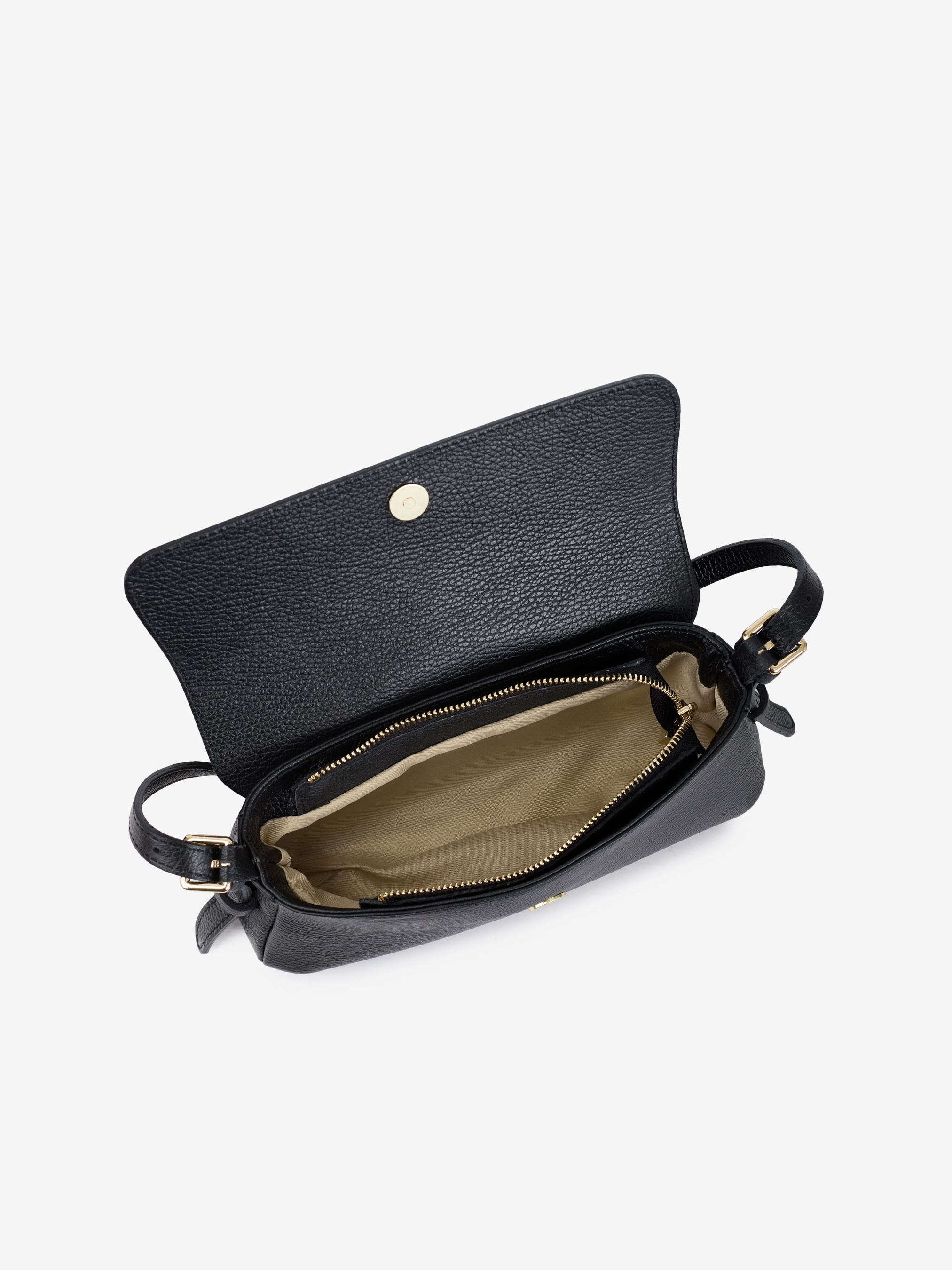 Деталі: Матеріал: 100% натуральна шкіра флотар Фурнітура золотистого кольору Розміри (Ш x В x Г) - 26 х 13 х 5 см Усередині 1 відділення Підкладка: бавовна Застібка: блискавка, клапан на магніті Ремінець шкіряний, знімний, регулюється, максимальна довжина 80 см