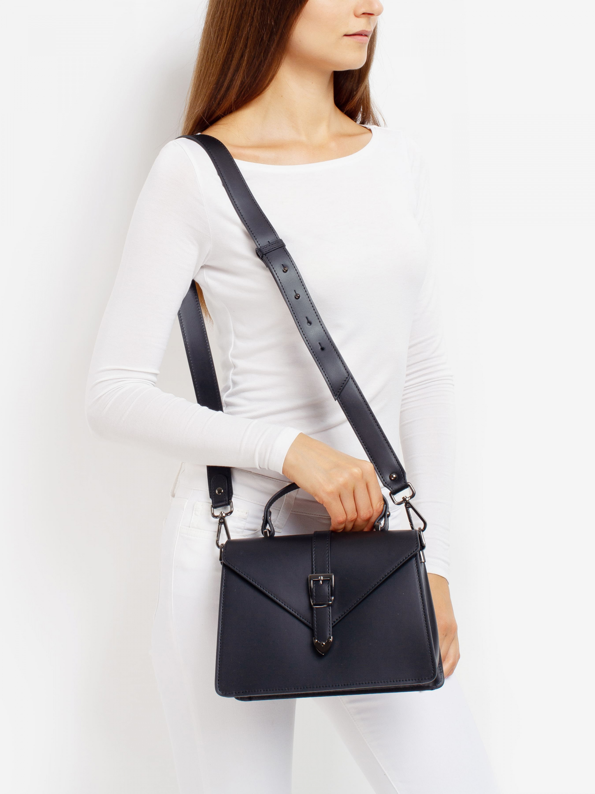 Деталі: - Матеріал: 100% натуральна шкіра - Шкіра має гладку фактуру - Фурнітура чорного кольору - Розміри (Ш x В x Г) - 25 x 18 x 11 см - Усередині 2 відділення розділені кишенею на блискавці - Підкладка: 100% бавовна - Застібка: блискавка і хлястик на магніті - В комплекті ремінець для носіння на плечі