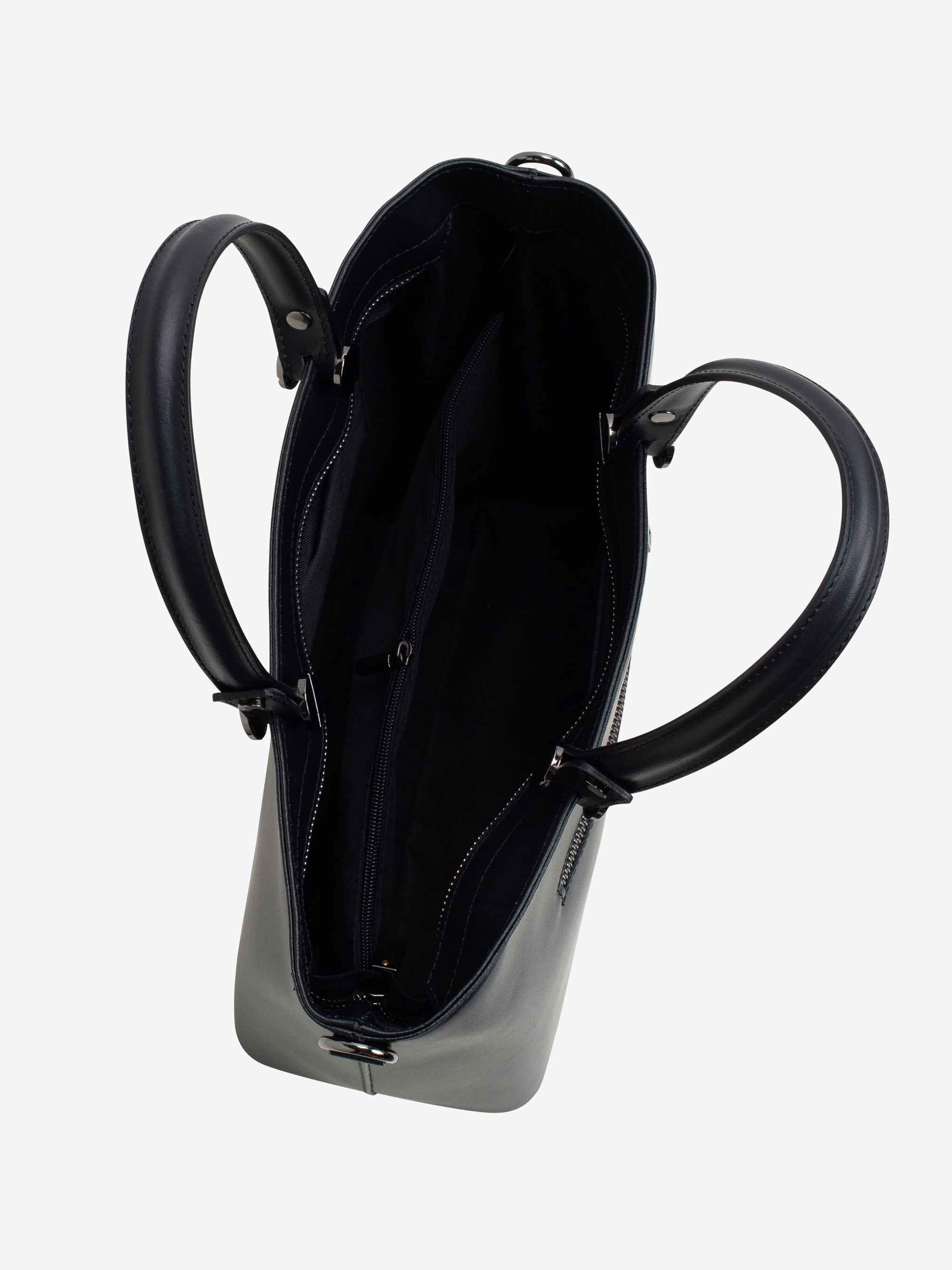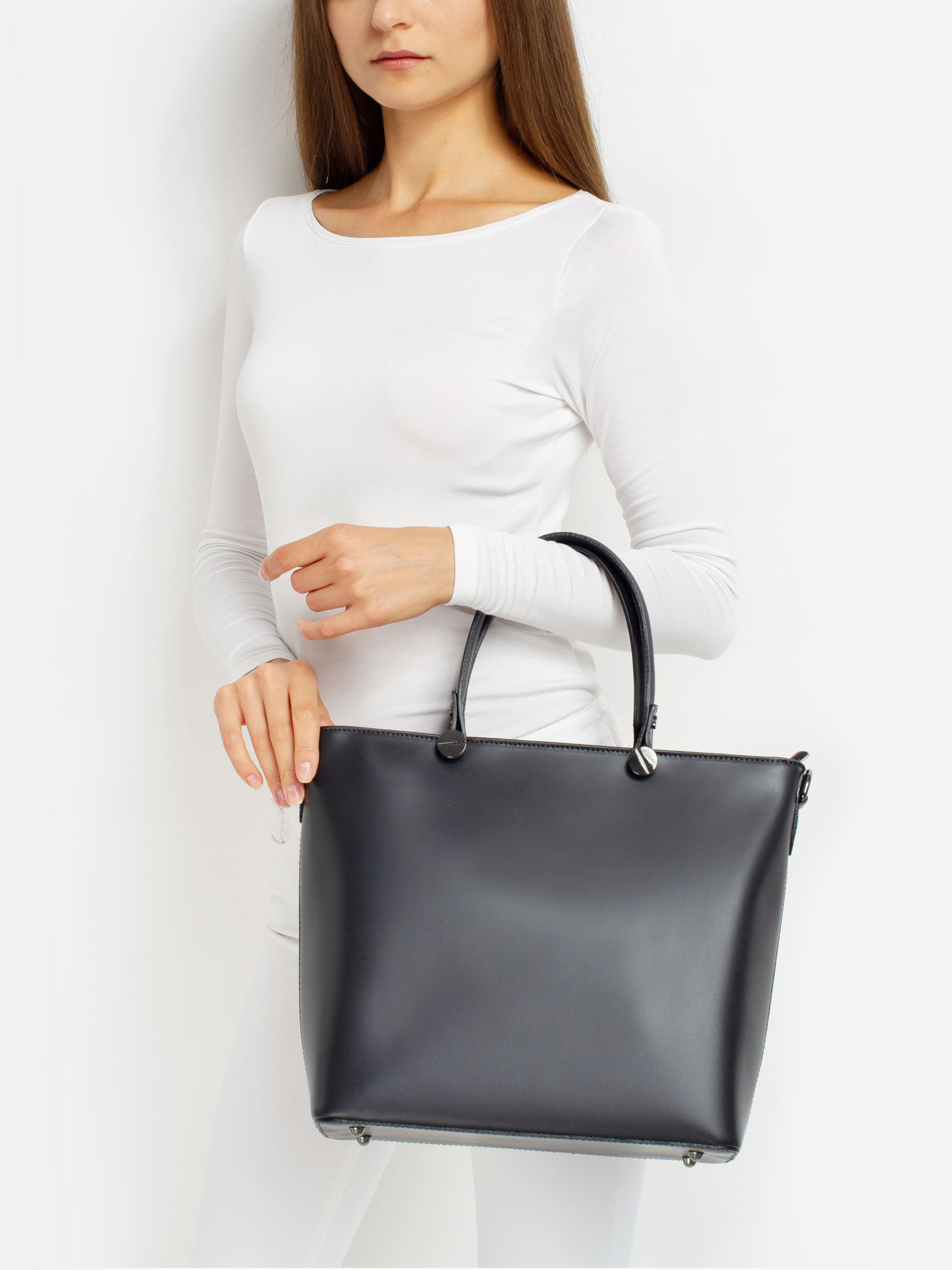 Деталі: - Матеріал: 100% натуральна шкіра - Шкіра має гладку фактуру - Фурнітура чорного кольору - Розміри (Ш x В x Г) - 38 x 30 x 14 см - Вміщає документи формату A4 - Усередині 2 відділення розділені кишенею на блискавці і 2 кишеньки для дрібниць - Підкладка: 100% бавовна - Застібка: блискавка - В комплекті ремінець для носіння на плечі Дизайн: Наша сумка-тоут Regina Notte 1545 - це універсальний, позасезонний стиль, що втілює в собі стриману розкіш. Сумка, виконана з натуральної шкіри, має просторе і функціональний внутрішній простір, що вміщає все необхідне для напруженого дня або далеких перельотів.