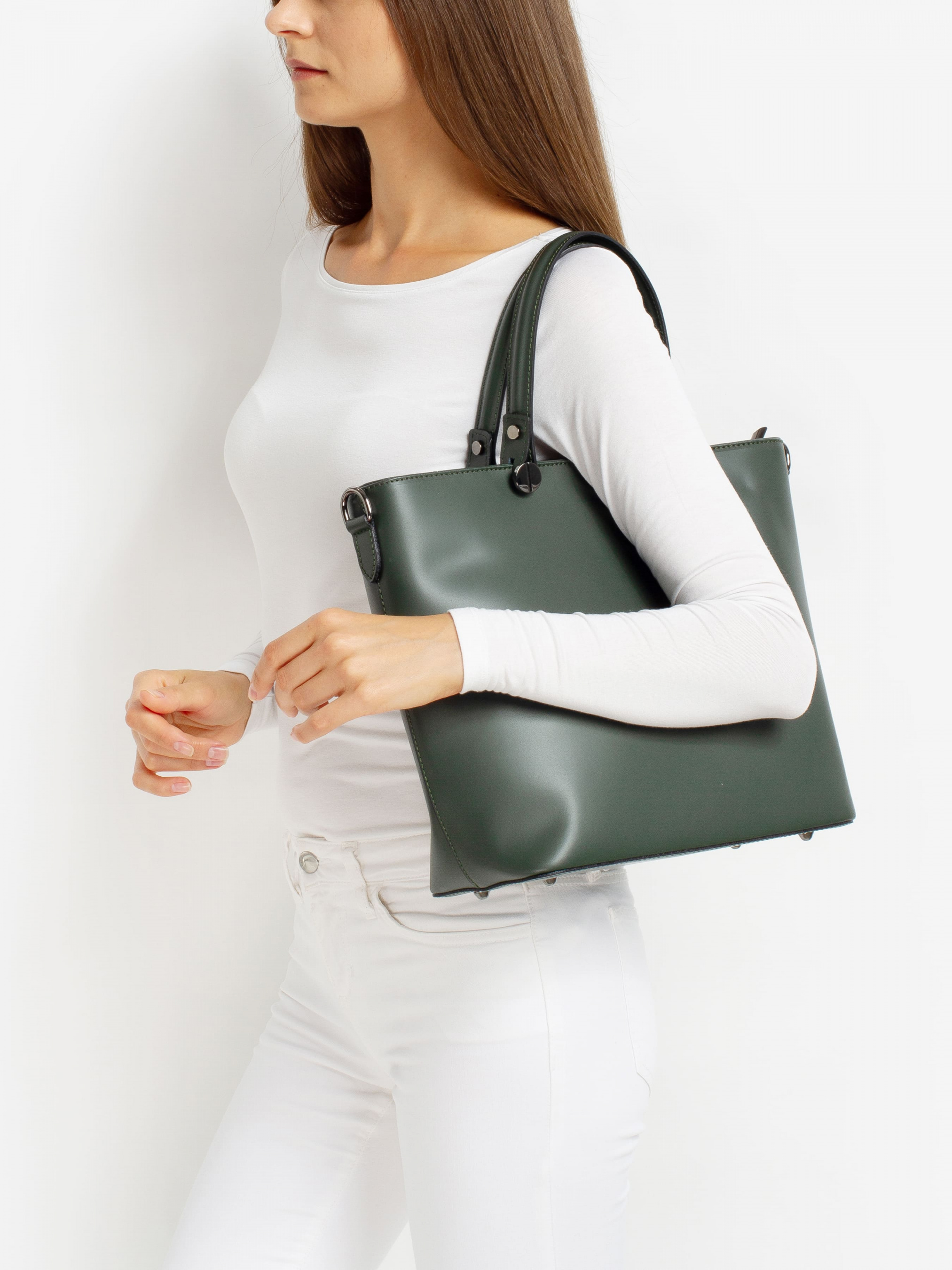 Деталі: - Матеріал: 100% натуральна шкіра - Шкіра має гладку фактуру - Фурнітура чорного кольору - Розміри (Ш x В x Г) - 38 x 30 x 14 см - Вміщає документи формату A4 - Усередині 2 відділення розділені кишенею на блискавці і 2 кишеньки для дрібниць - Підкладка: 100% бавовна - Застібка: блискавка - В комплекті ремінець для носіння на плечі Дизайн: Наша сумка-тоут Regina Notte 1545 - це універсальний, позасезонний стиль, що втілює в собі стриману розкіш. Сумка, виконана з натуральної шкіри, має просторе і функціональний внутрішній простір, що вміщає все необхідне для напруженого дня або далеких перельотів.