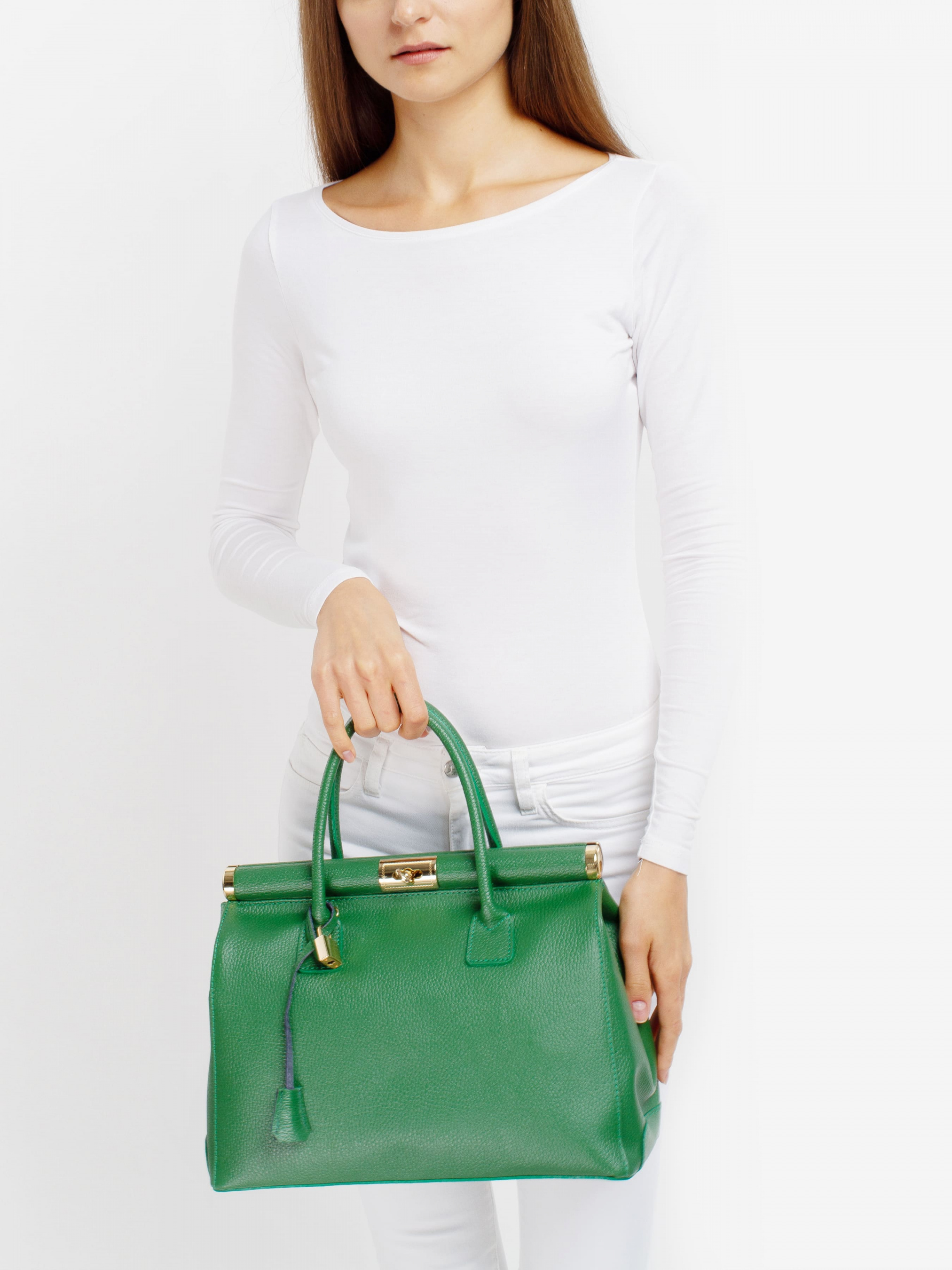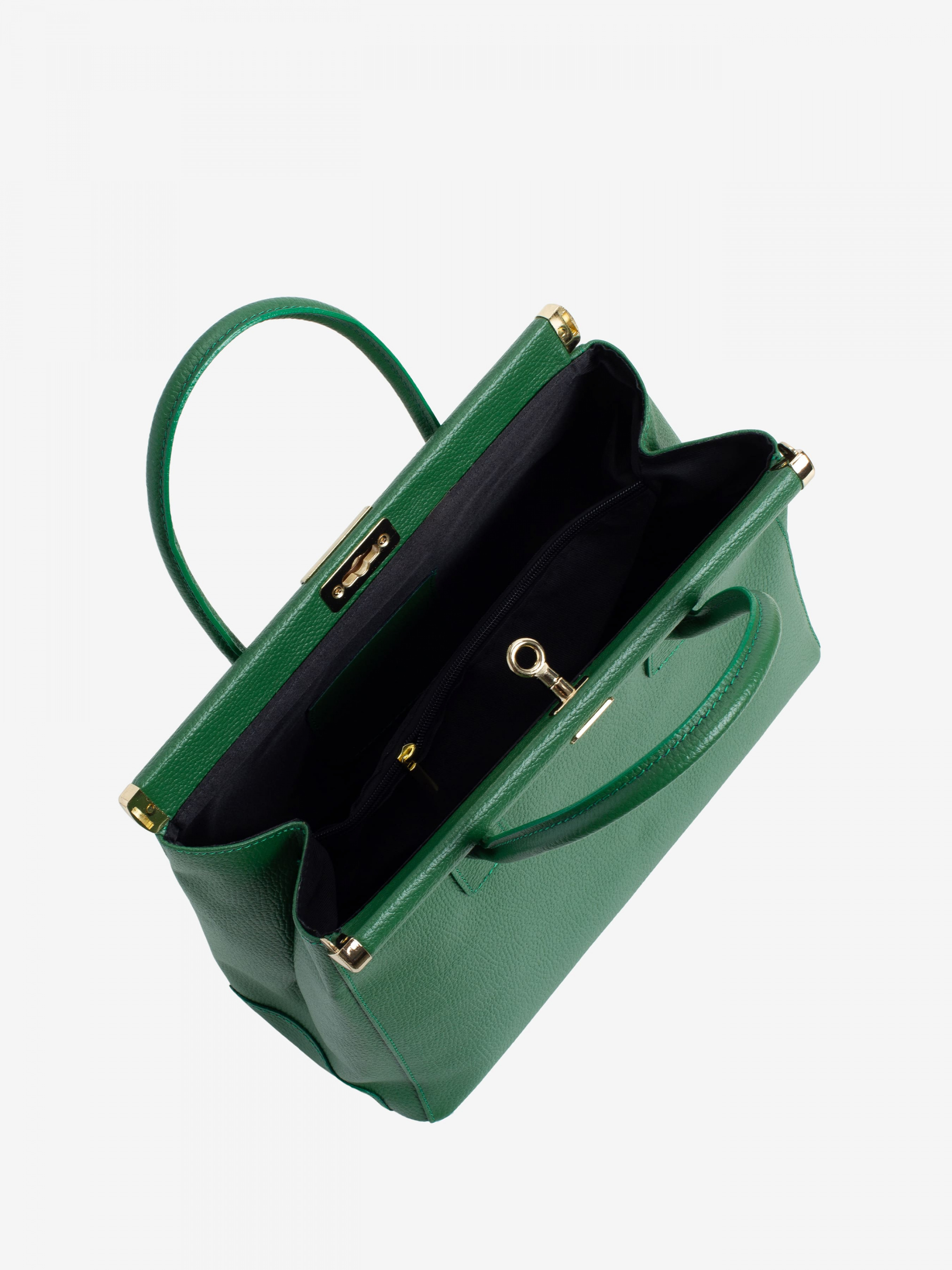 Деталі: - Матеріал: 100% натуральна шкіра - Шкіра має фактуру флотар - Фурнітура золотистого кольору - Розміри (Ш x В x Г) - 35 x 24 x 15 см - Усередині 2 відділення розділені кишенею на блискавці і кишеня для дрібниць - Підкладка: 100% бавовна - Застібка: поворотний замок - В комплекті ремінець для носіння на плечі