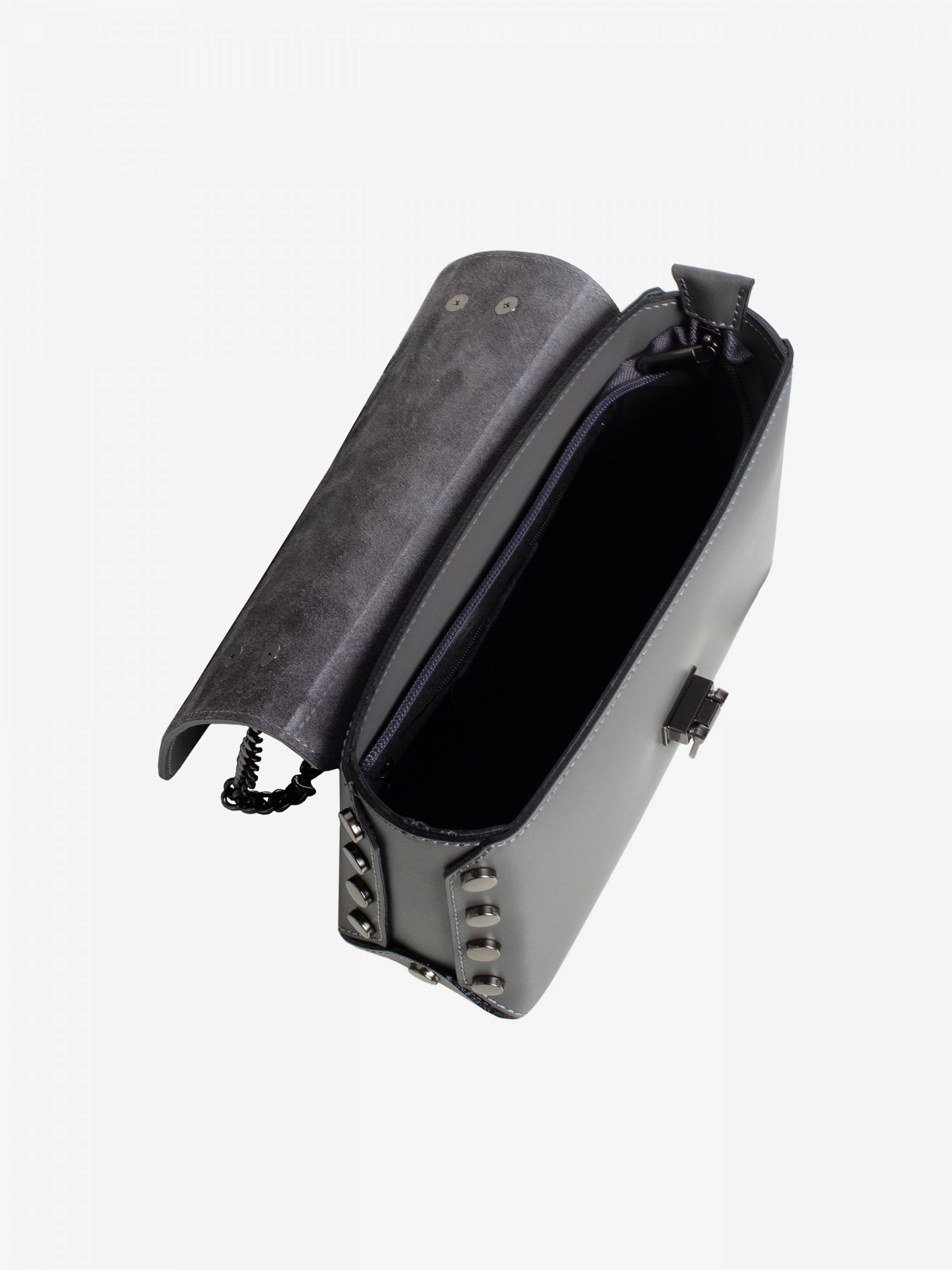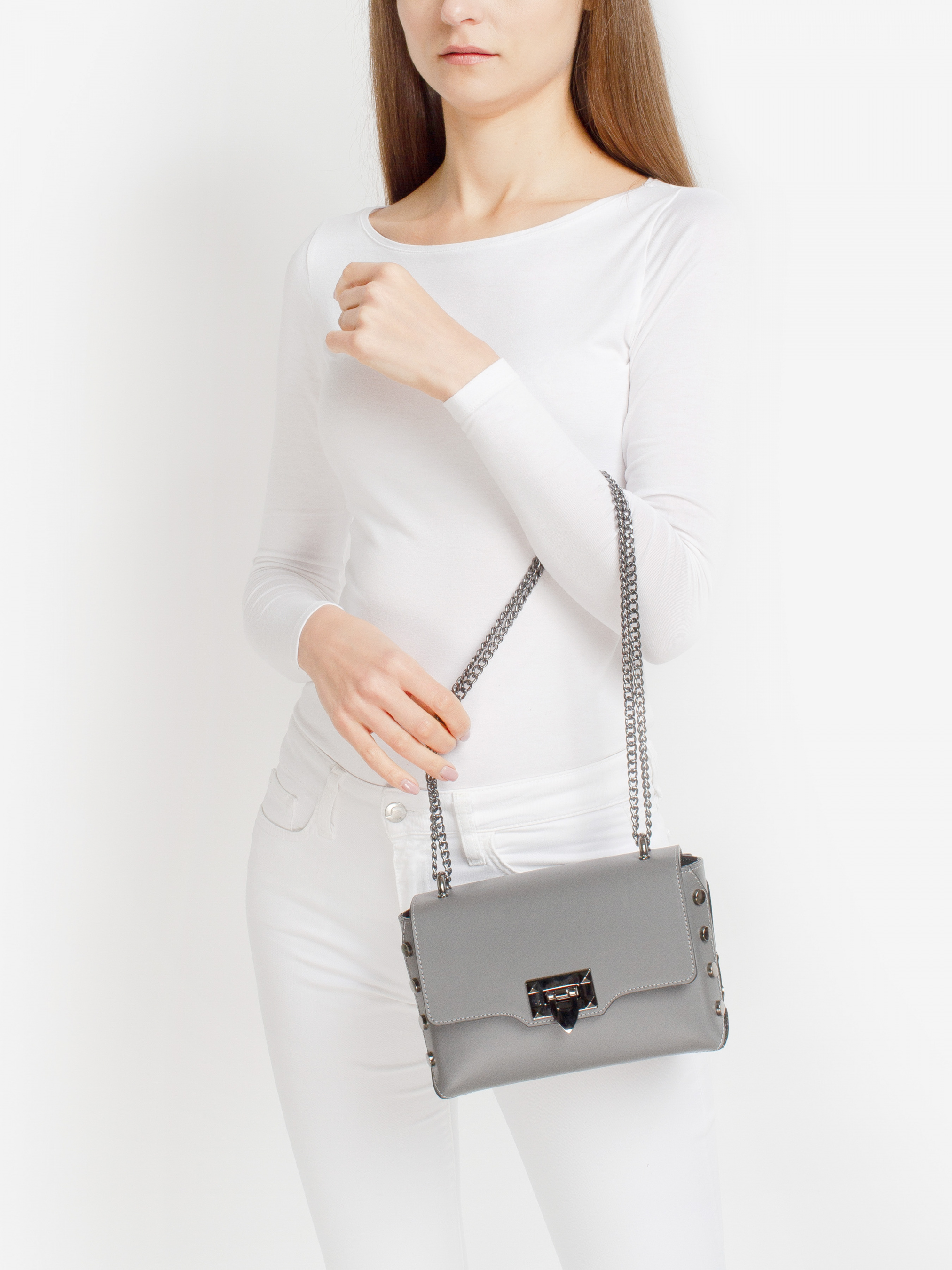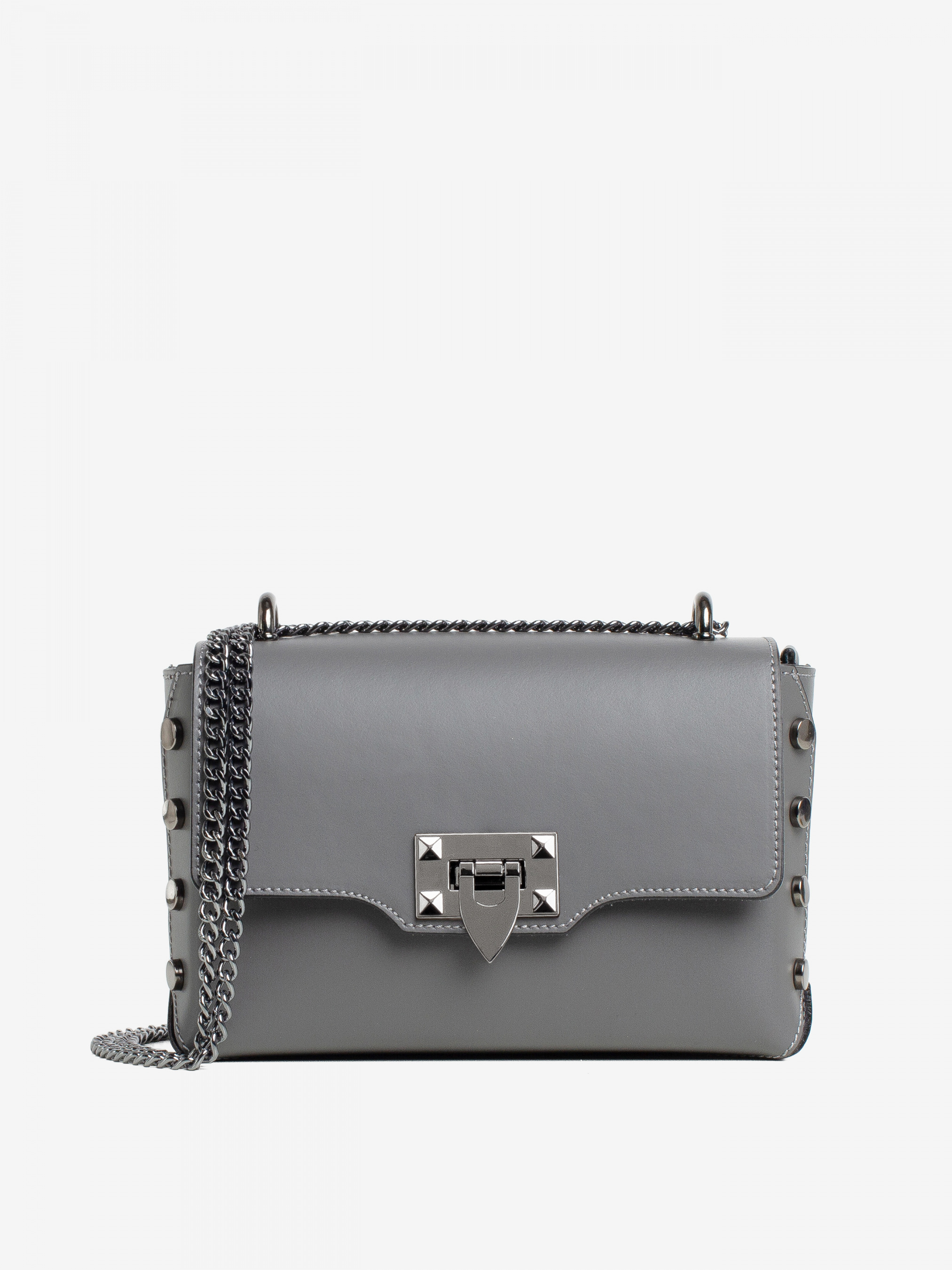 Деталі: - Матеріал: 100% натуральна шкіра - Шкіра має гладку фактуру - Фурнітура чорного кольору - розміри (Ш x В x Г) - 22 x 14 x 7 см - Усередині 1 відділення та 1 кишенька для дрібниць на блискавці - Підкладка: 100% бавовна - Застібка: блискавка, клапан на кліпсі - Сумка на ланцюжках, які регулюються по довжині.