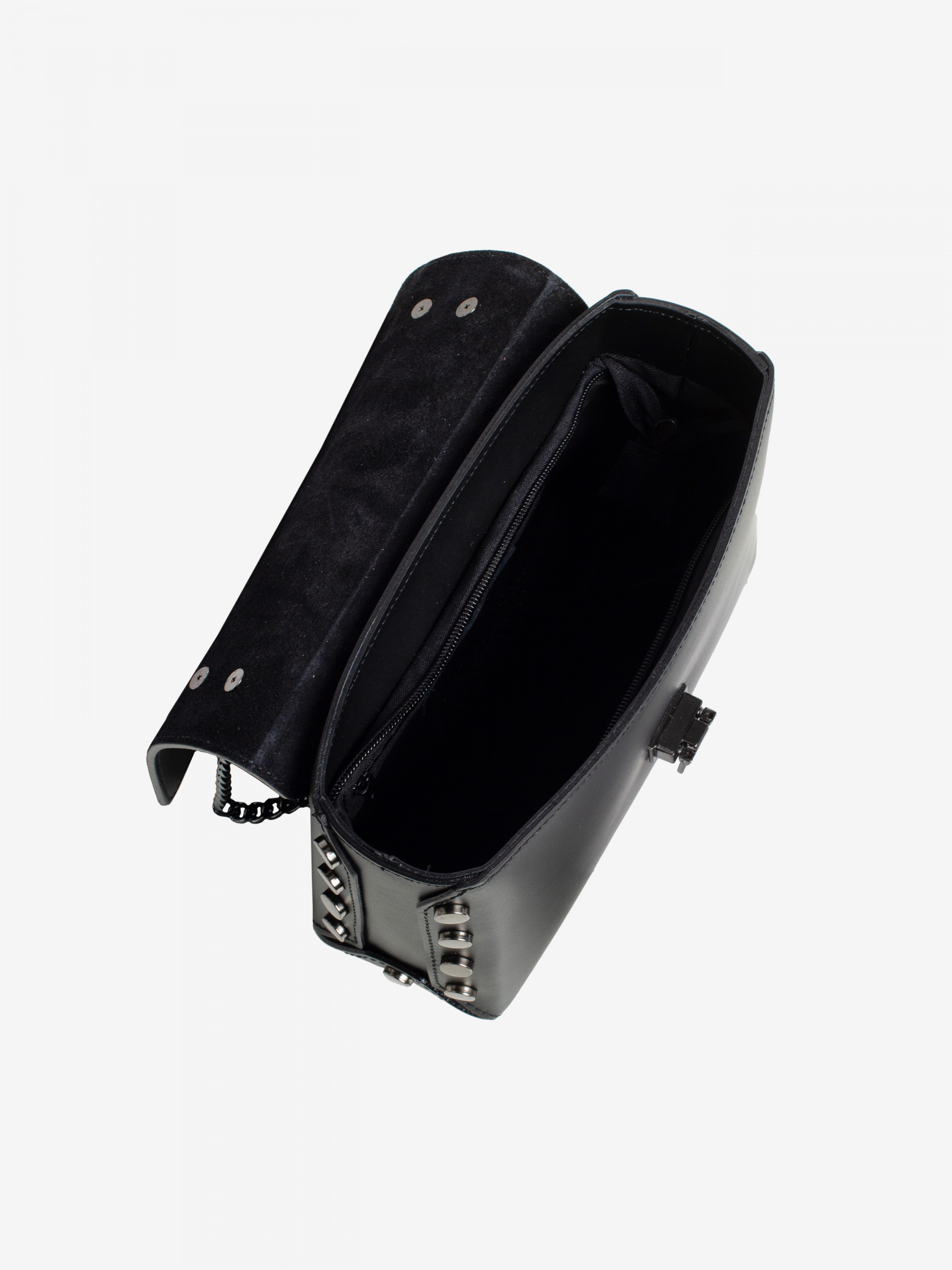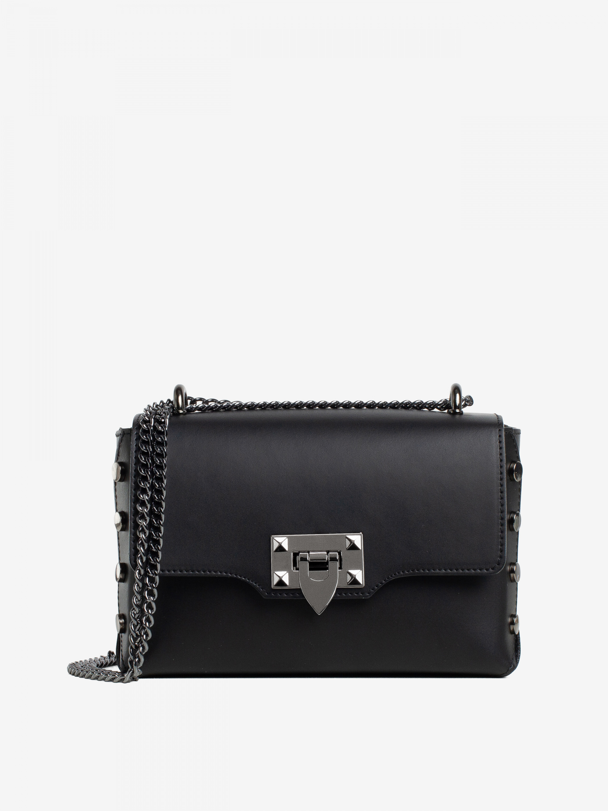 Деталі: - Матеріал: 100% натуральна шкіра - Шкіра має гладку фактуру - Фурнітура чорного кольору - розміри (Ш x В x Г) - 22 x 14 x 7 см - Усередині 1 відділення та 1 кишенька для дрібниць на блискавці - Підкладка: 100% бавовна - Застібка: блискавка, клапан на кліпсі - Сумка на ланцюжках, які регулюються по довжині.