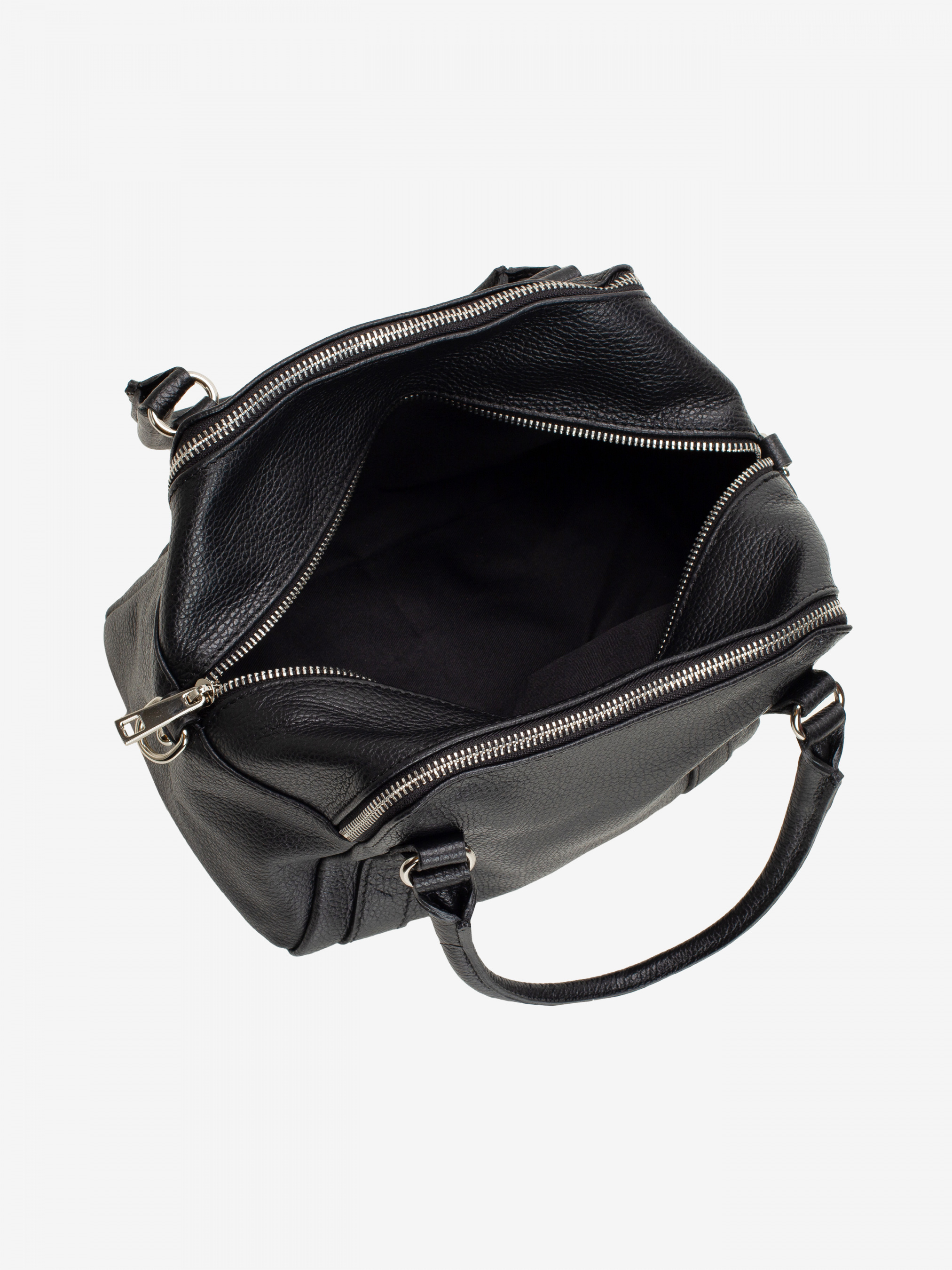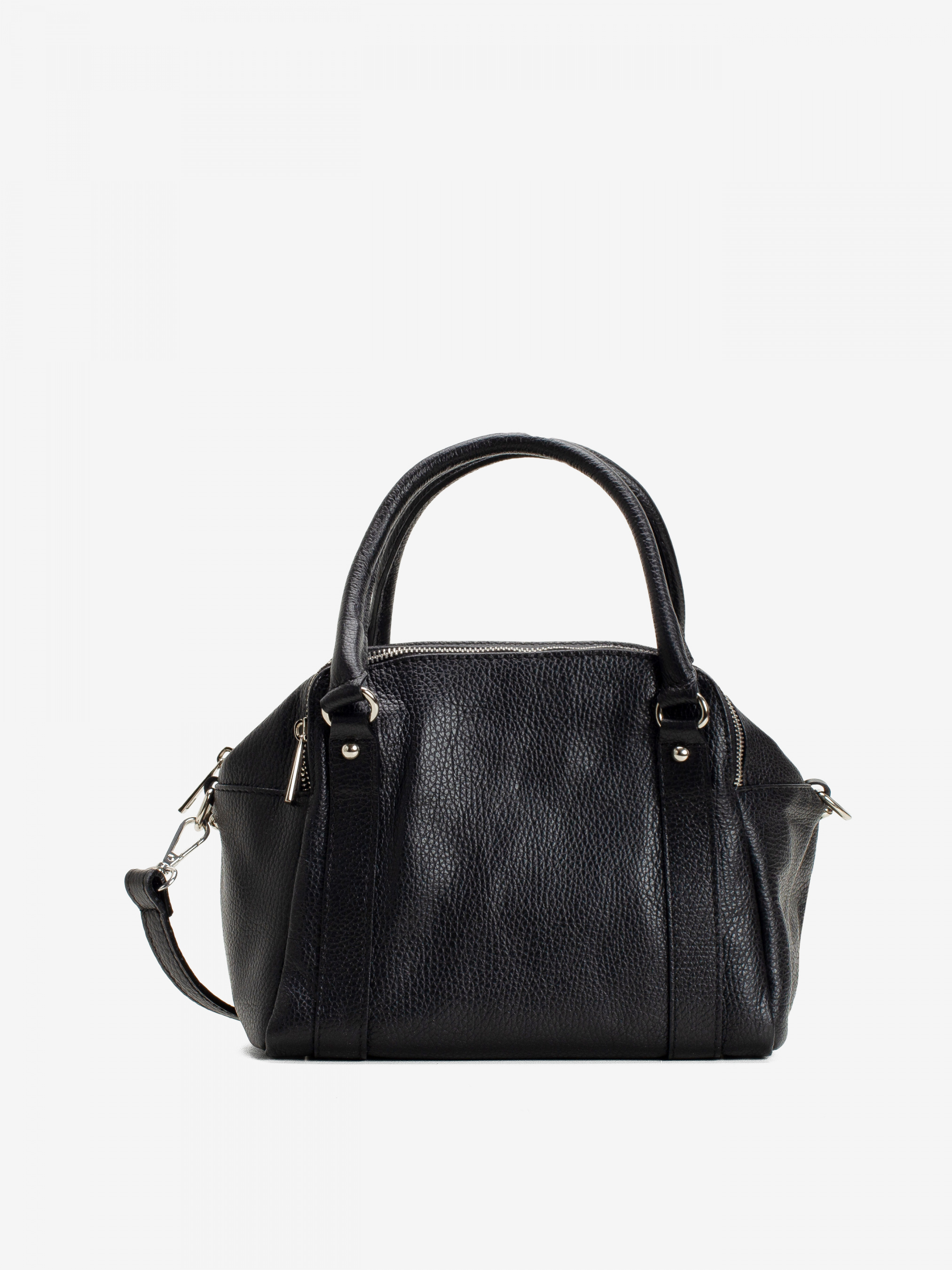Деталі: - Матеріал: 100% натуральна шкіра - Шкіра має фактуру флотар - Фурнітура сріблястого кольору - розміри (Ш x В x Г) - 23 x 19 x 14 см - Усередині 3 роздільні відділення та 1 кишенька для дрібниць на блискавці - Підкладка: 100% бавовна - Застібка: блискавка - У комплекті ремінець для носіння на плечі