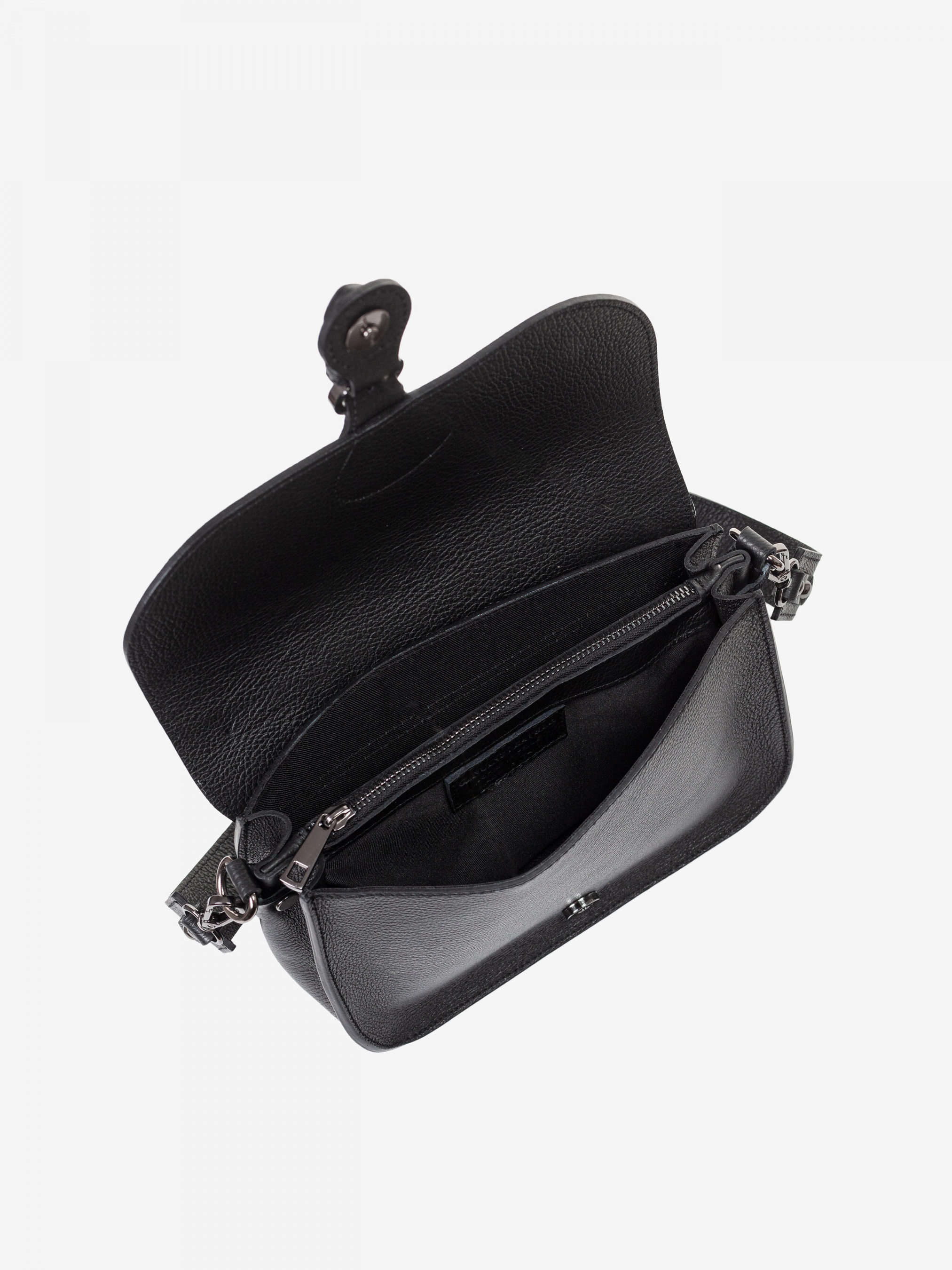 Деталі: - Матеріал: 100% натуральна шкіра - Шкіра має фактуру флотар - Фурнітура чорного кольору - Розміри (Ш x В x Г) – 25 x 18 x 10 см - Всередині: 1 відділення та посередині кишеня на блискавці - Підкладка: 100% бавовна - Застібка: клапан на магніті - Два знімні ремінці на карабінах: широкий не регулюється (довжина 60 см), тонкий регулюється (максимальна довжина 120 см)