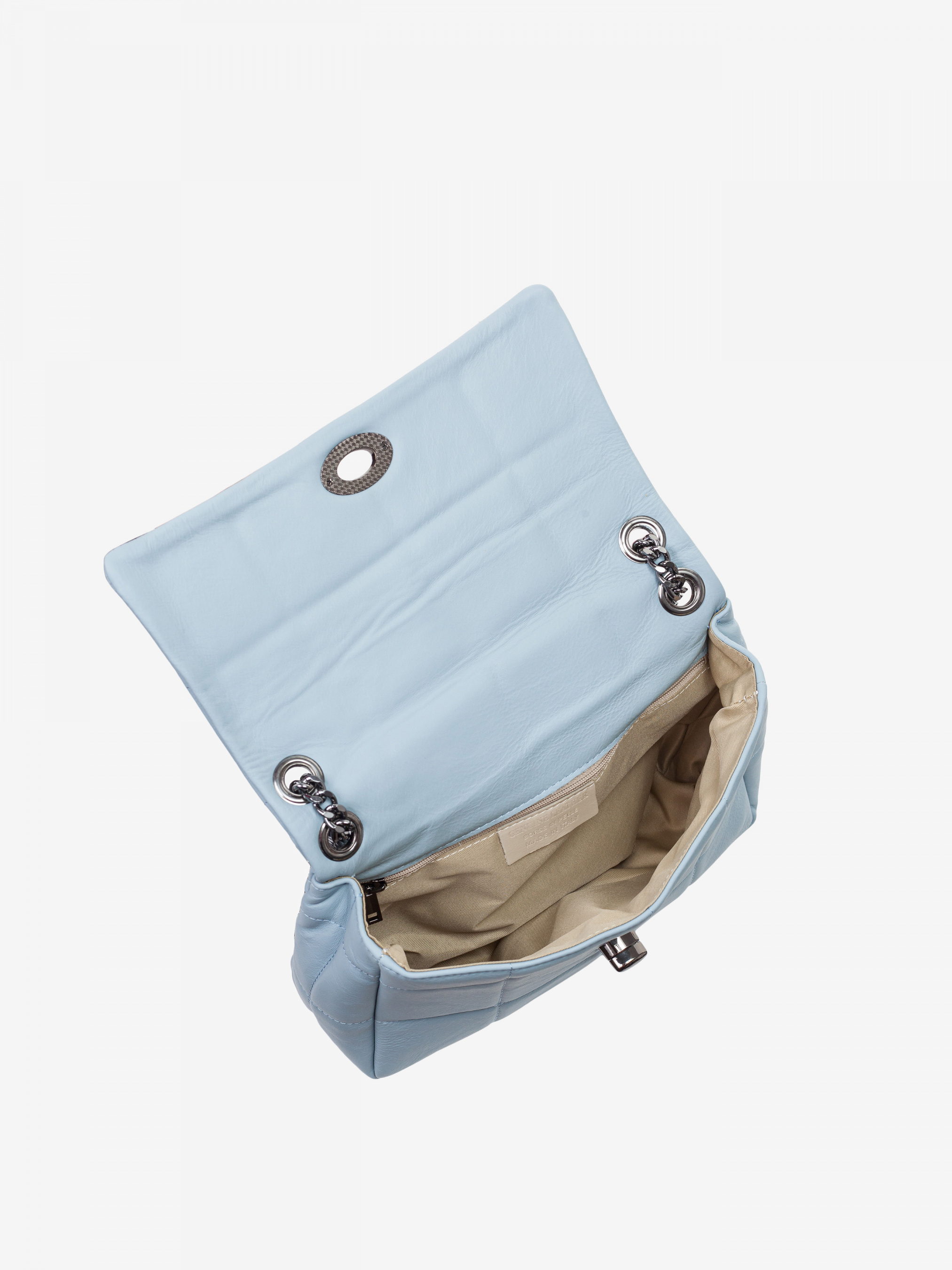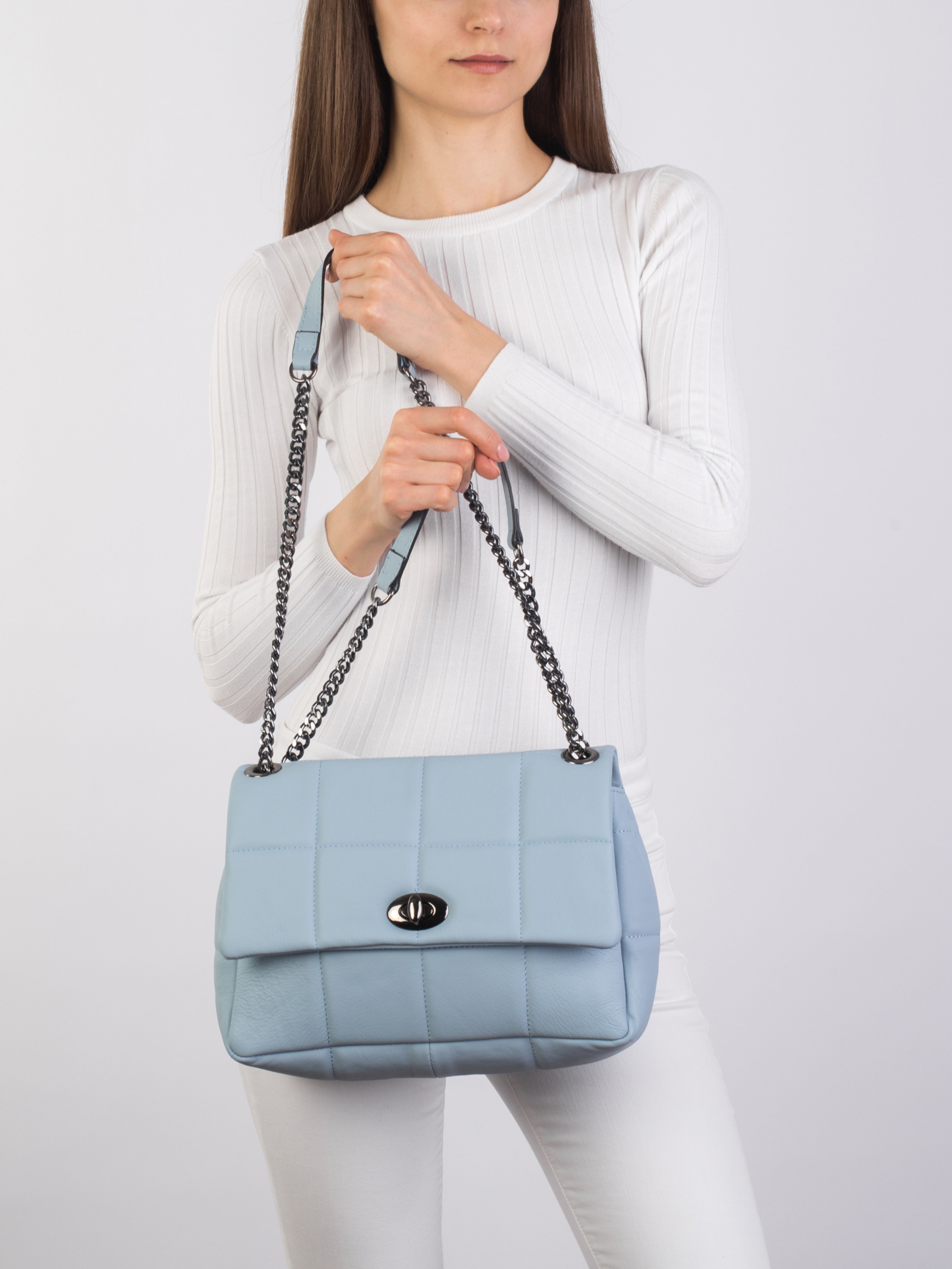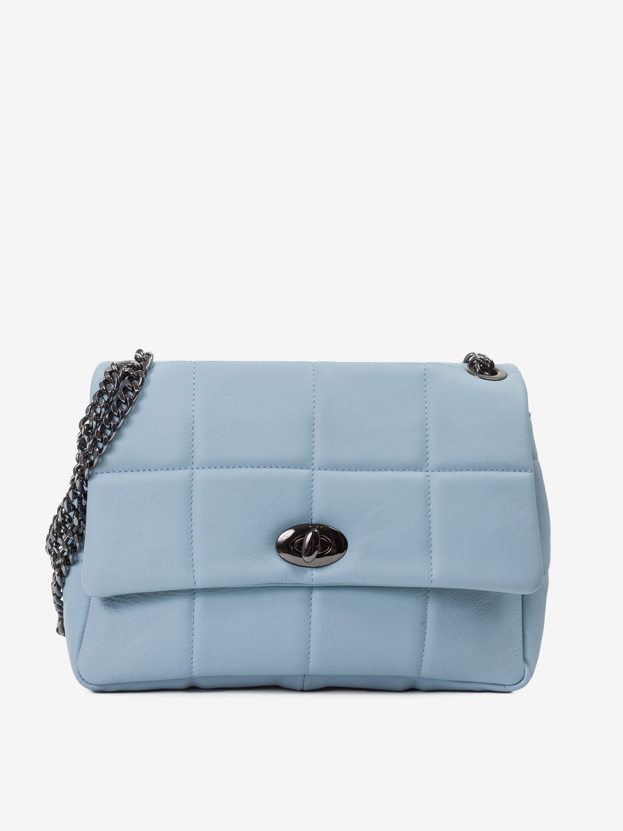 Деталі: - Матеріал: 100% натуральна шкіра - Шкіра наппа - Фурнітура чорного кольору - Розміри (Ш x В x Г) – 30 x 20 x 9 см - Усередині 1 відділення без застібки та 1 велика кишенька для дрібниць на блискавці - Підкладка: 100% бавовна - Застібка: поворотний замок - Ручка-ланцюжок, максимальна висота ланцюжка 52 см