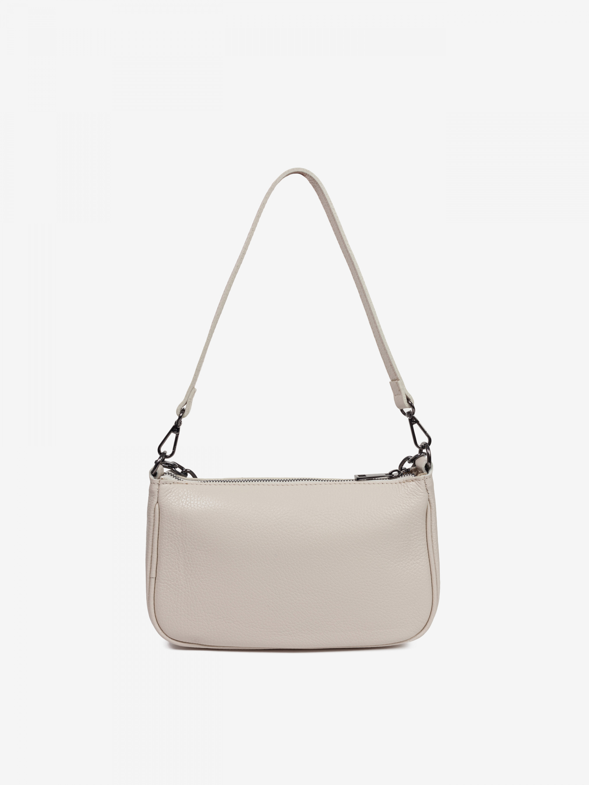 Деталі: Матеріал: 100% натуральна шкіра Шкіра має фактуру флотар Фурнітура сріблястого кольору Розміри (Ш x В x Г) – 25 x 16 x 8 см Усередині 1 відділення та 2 кишеньки для дрібниць, одна з них на блискавці Підкладка: 100% бавовна Застібка: блискавка У комплекті ремінець для носіння на плечі
