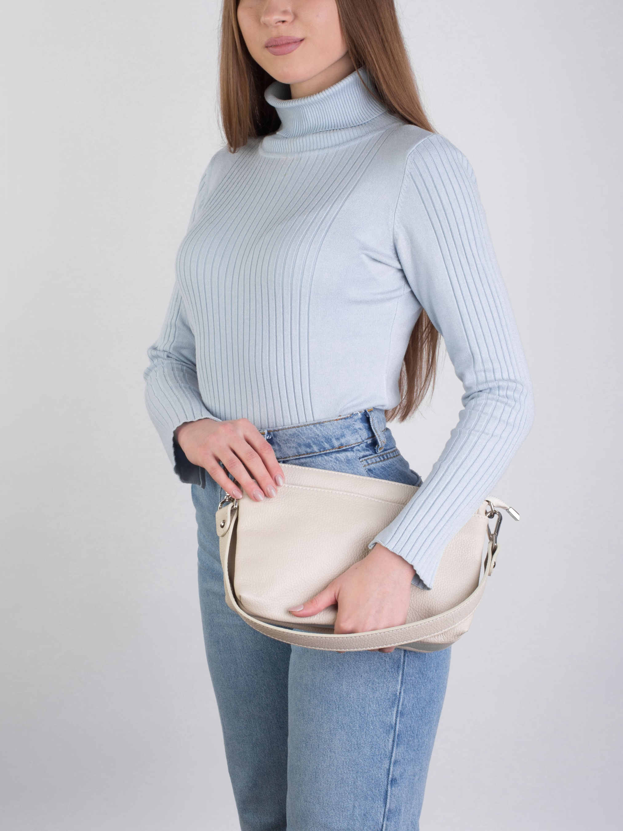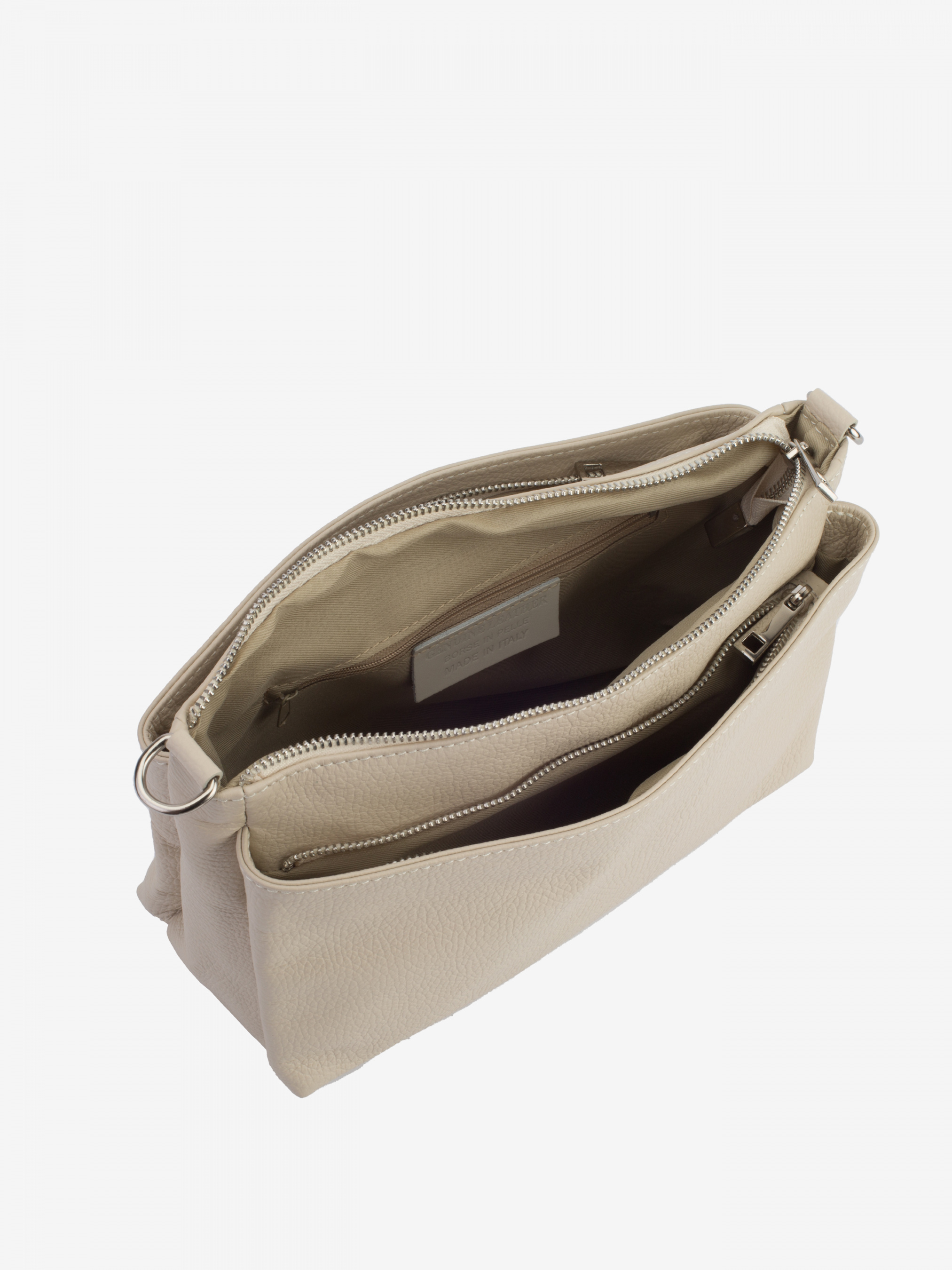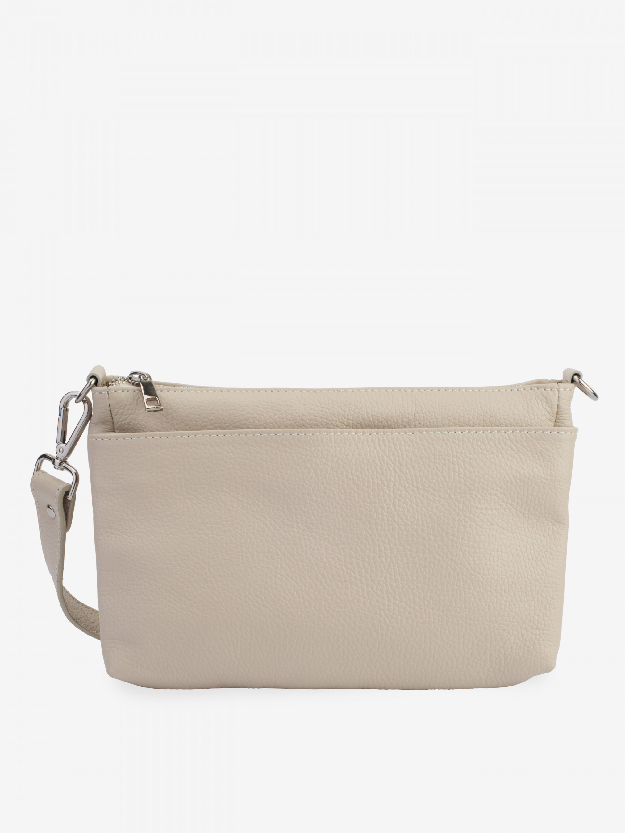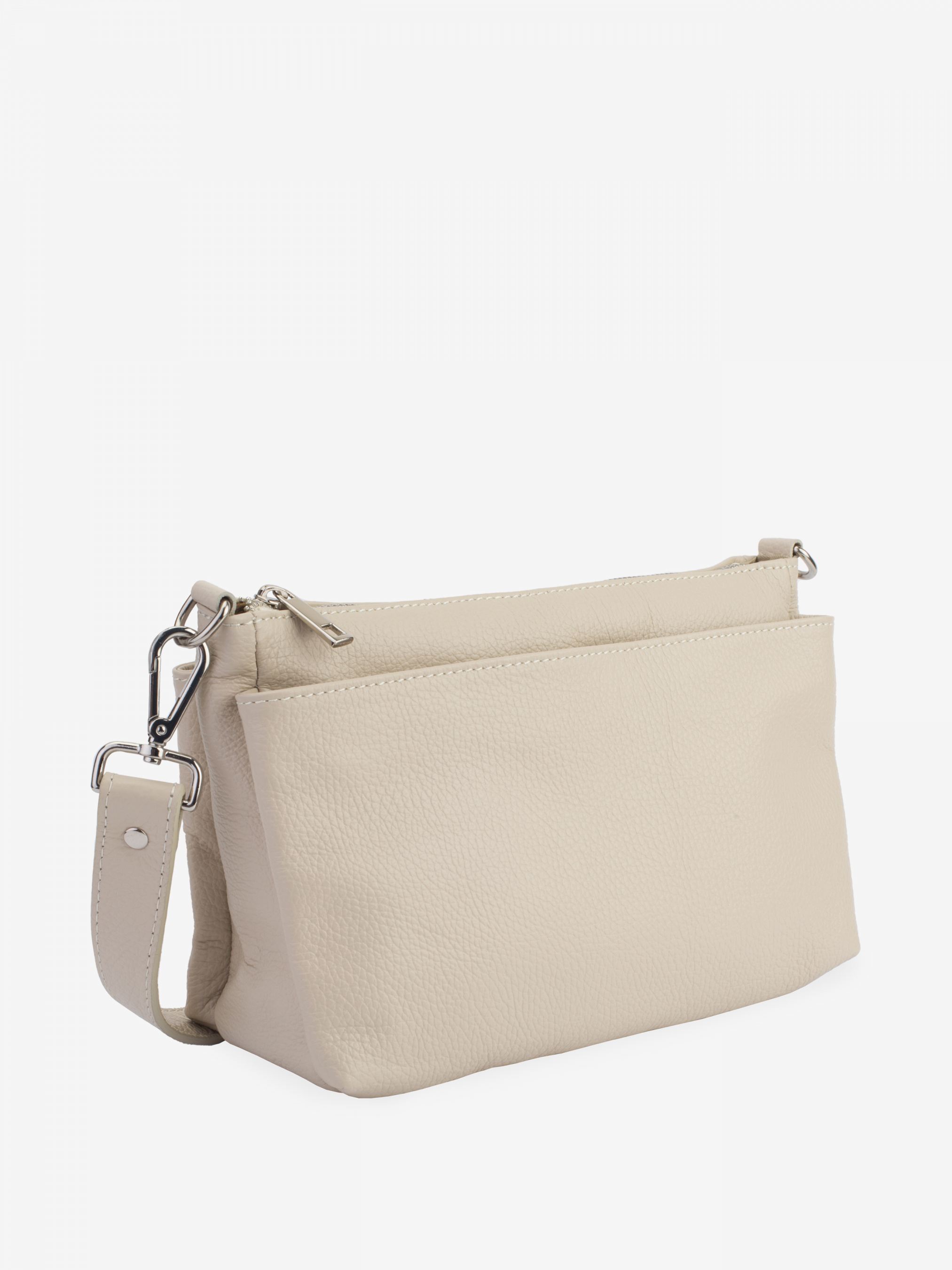 Деталі: - Матеріал: 100% натуральна шкіра - Шкіра має фактуру флотар - Фурнітура сріблястого кольору - розміри (Ш x В x Г) - 25 x 18 x 11 см - Усередині три роздільні відділення - Підкладка: 100% бавовна - Застібка: блискавка - У комплекті ремінець для носіння на плечі
