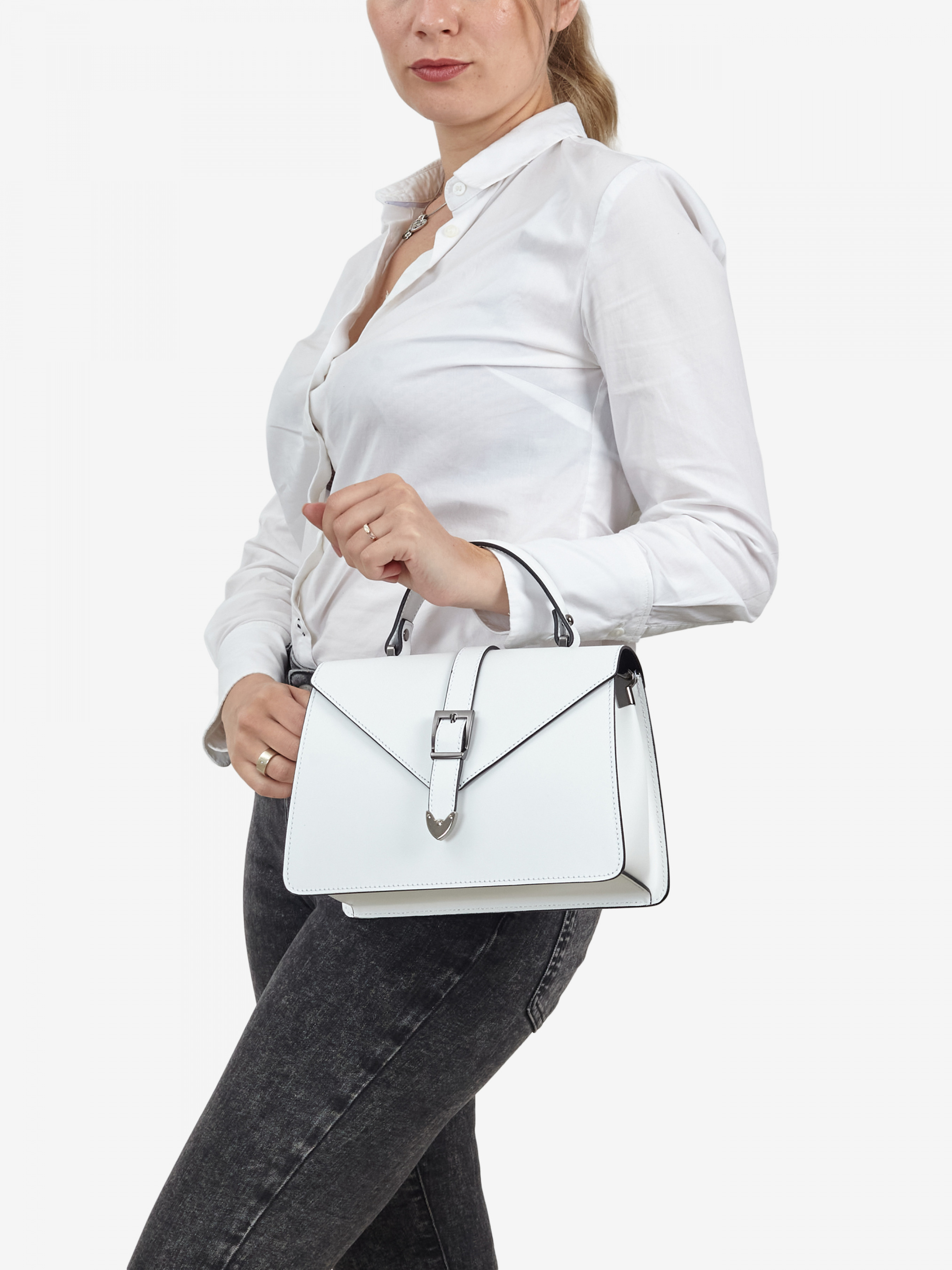 Деталі: - Матеріал: 100% натуральна шкіра - Шкіра має гладку фактуру - Фурнітура чорного кольору - розміри (Ш x В x Г) - 25 x 18 x 11 см - Усередині 2 відділення розділені кишенею на блискавці - Підкладка: 100% бавовна - Застібка: блискавка та хлястик на магніті - Висота ручки 7 см - У комплекті ремінець для носіння на плечі (регулюється, максимальна довжина 110 см)