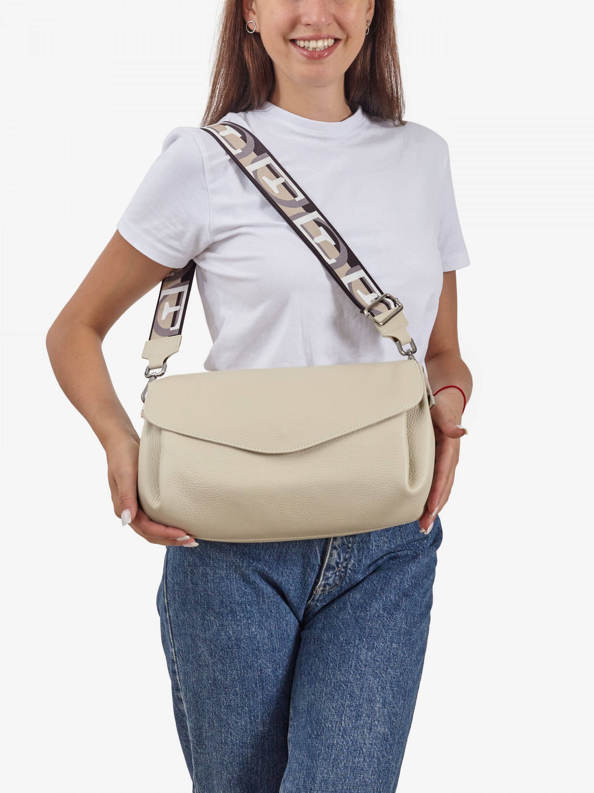 Деталі: - Матеріал: 100% натуральна шкіра - Шкіра має фактуру флотар - Фурнітура сріблястого кольору - Розміри (Ш x В x Г) -31 x 17 x 13 см - Усередині 3 роздільні відділення, один з них на блискавці - Застібка: магніт - У комплекті ремінець для носіння на плечі