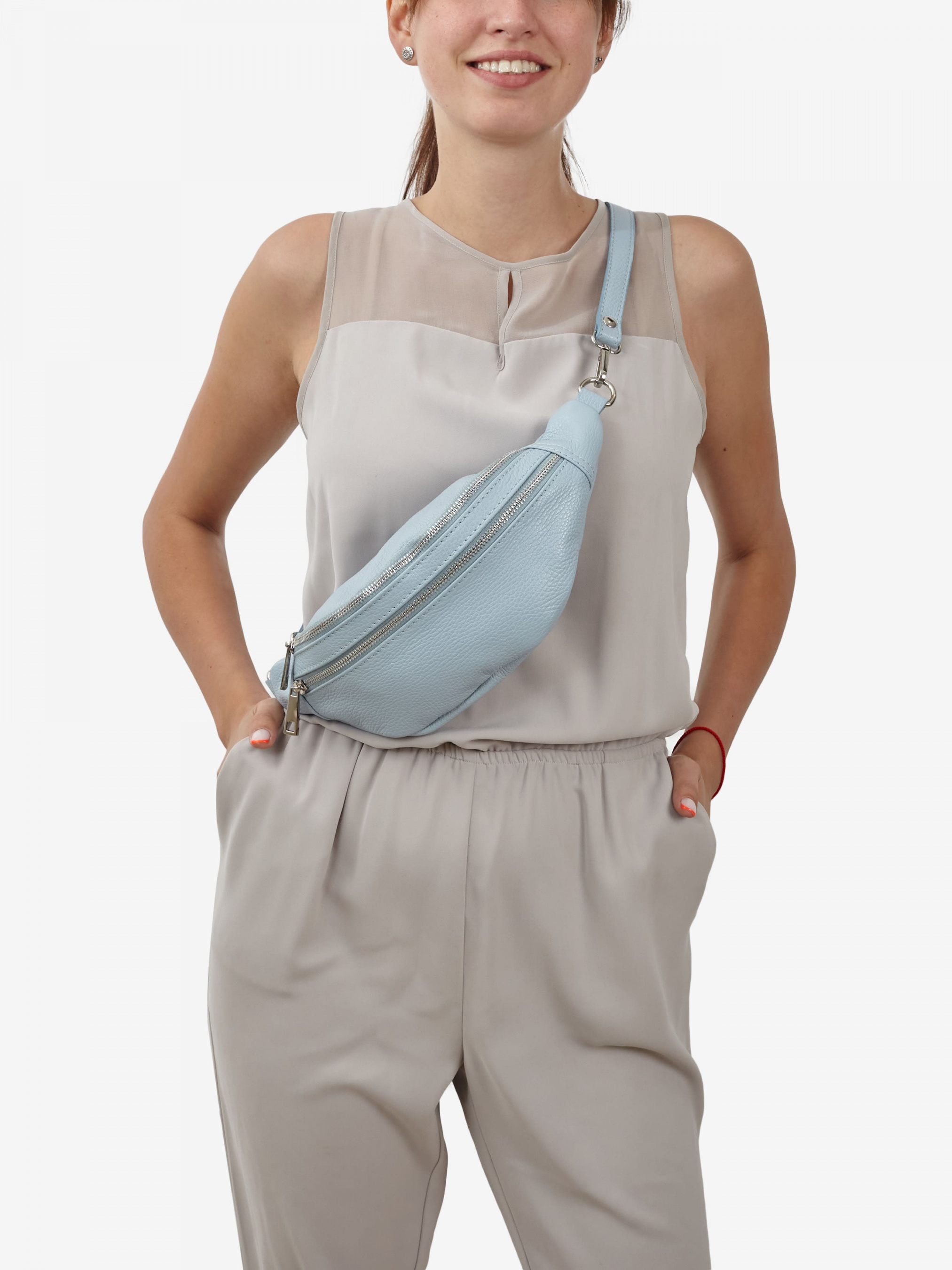 Деталі: Матеріал: 100% натуральна шкіра Шкіра має фактуру флотар Фурнітура сріблястого кольору Розміри (Ш x В x Г) - 30 х 13 х 10 см Усередині 1 відділення на блискавці, спереду кишеня на блискавці. Підкладка: 100% бавовна Застібка: блискавка Ремінець незнімний, регулюється, максимальна довжина 110 см Дизайн: Сумка на пояс Regina Notte 3293 створена в мінімальному дизайні. У порівняно невеликих розмірах, здатна вмістити телефон і необхідні дрібниці для активного життя.