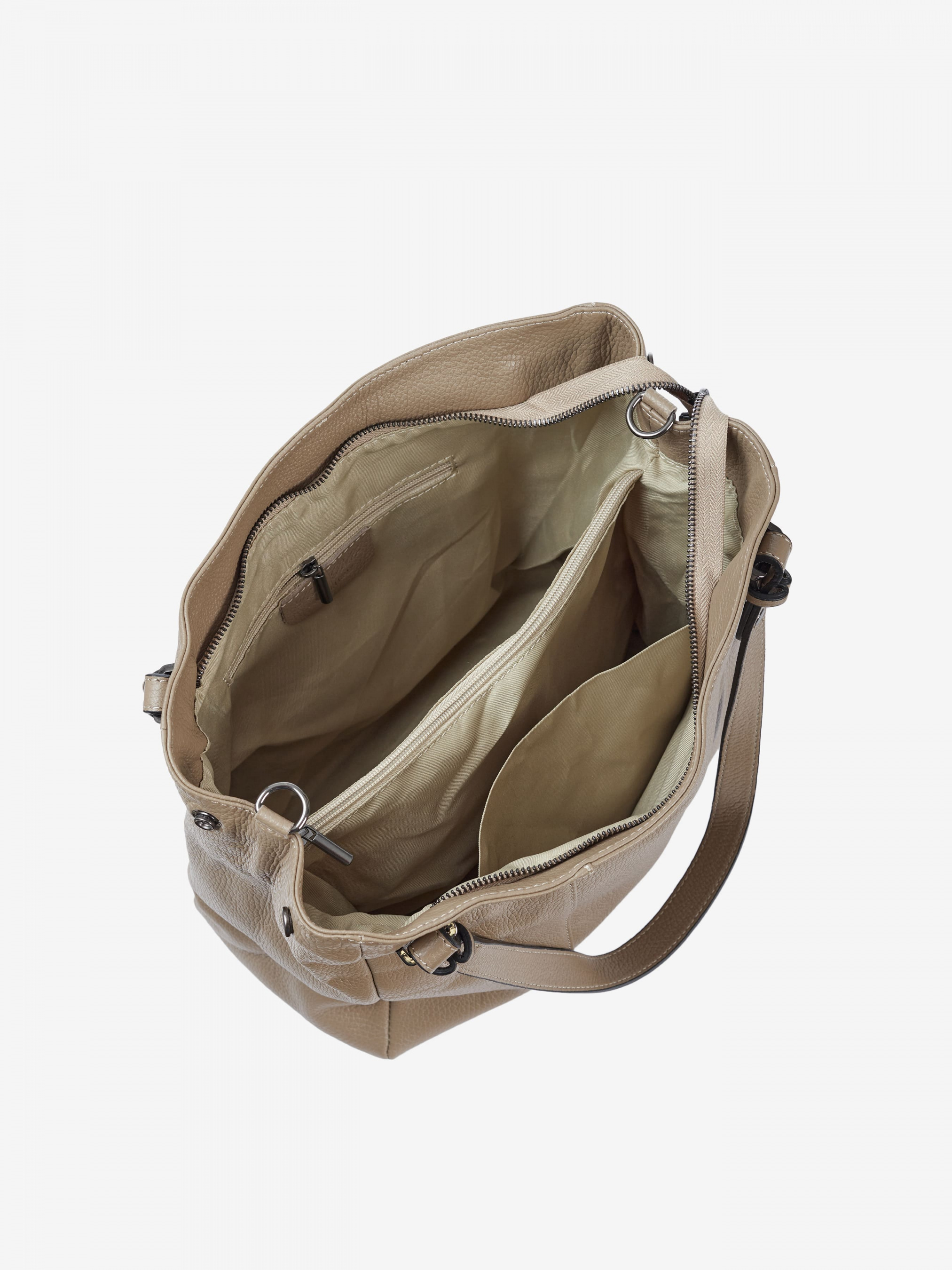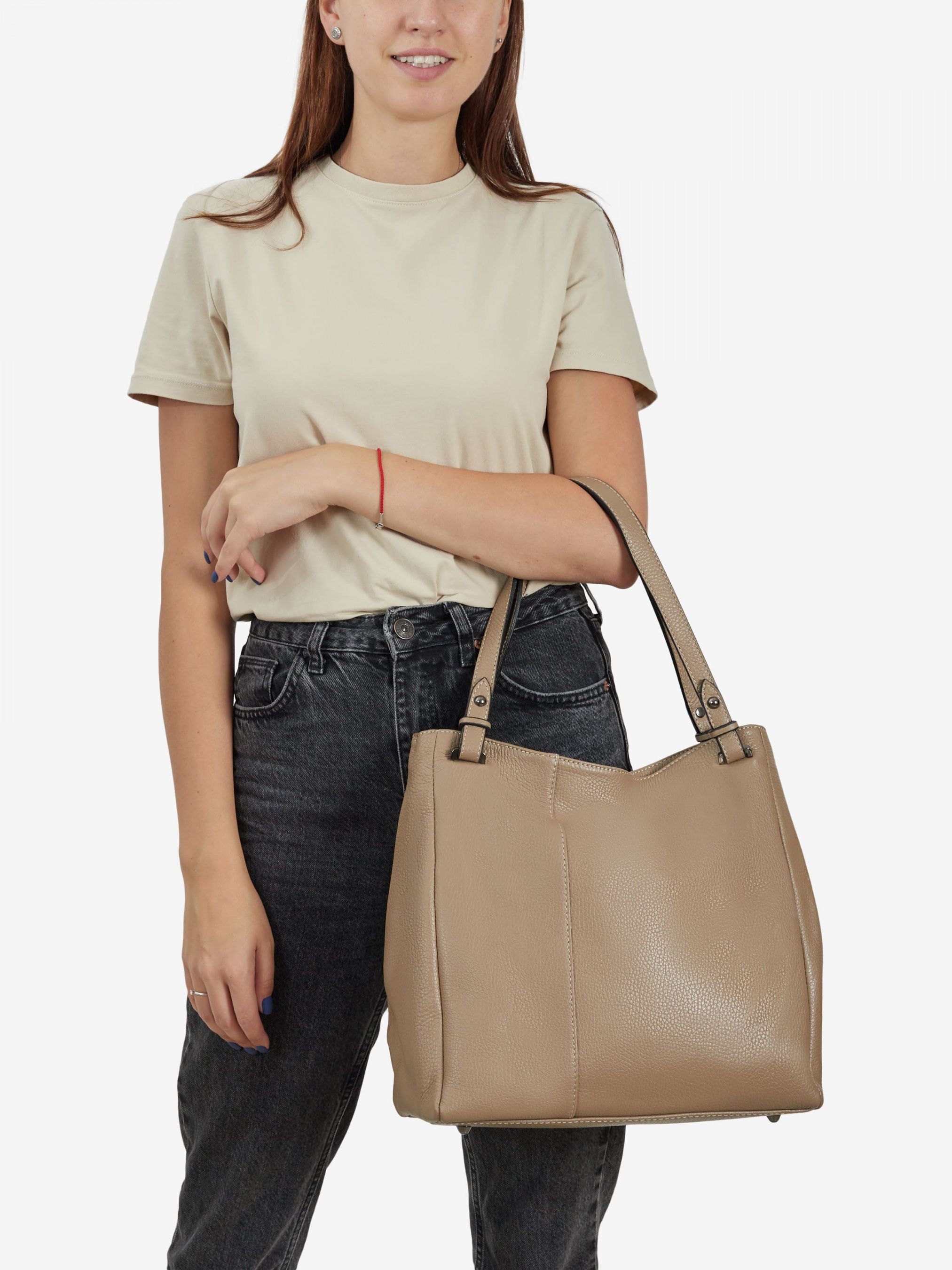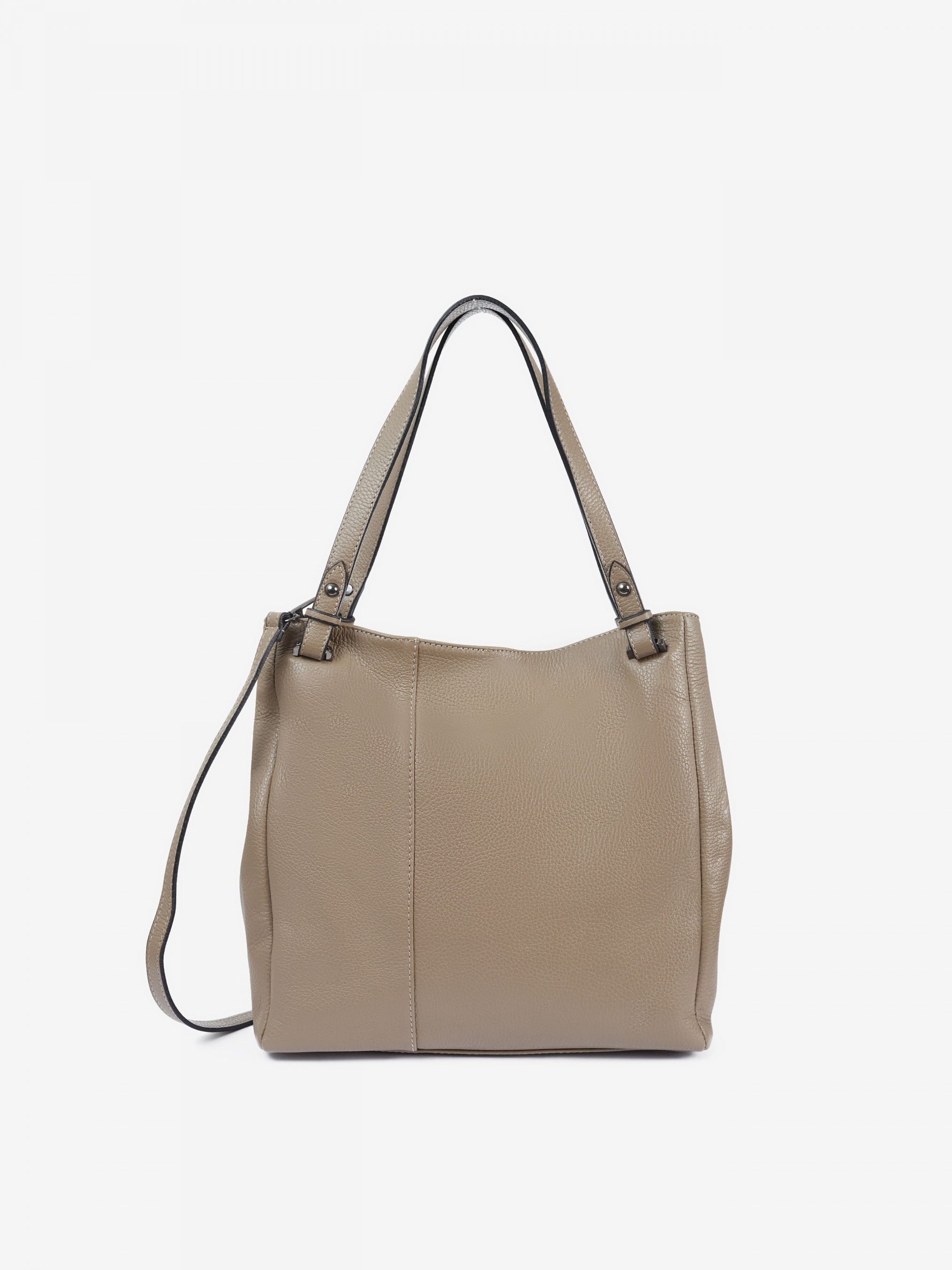 Деталі: Матеріал: 100% натуральна шкіра Шкіра має фактуру флотар Фурнітура чорного кольору Розміри (Ш x В x Г) - 35 x 30 x 15 см Вміщує документи формату A4 Усередині 2 відділення розділені кишенею на блискавці та 2 кишеньки для дрібниць, одна з них на блискавці Позаду горизонтальна кишеня на блискавці З боків знаходяться кліпси для зміни розміру та форми сумки Підкладка: 100% бавовна Застібка: блискавка Висота ручок 25 см У комплекті знімний ремінець на карабінах регулюється, максимальна довжина 105 см