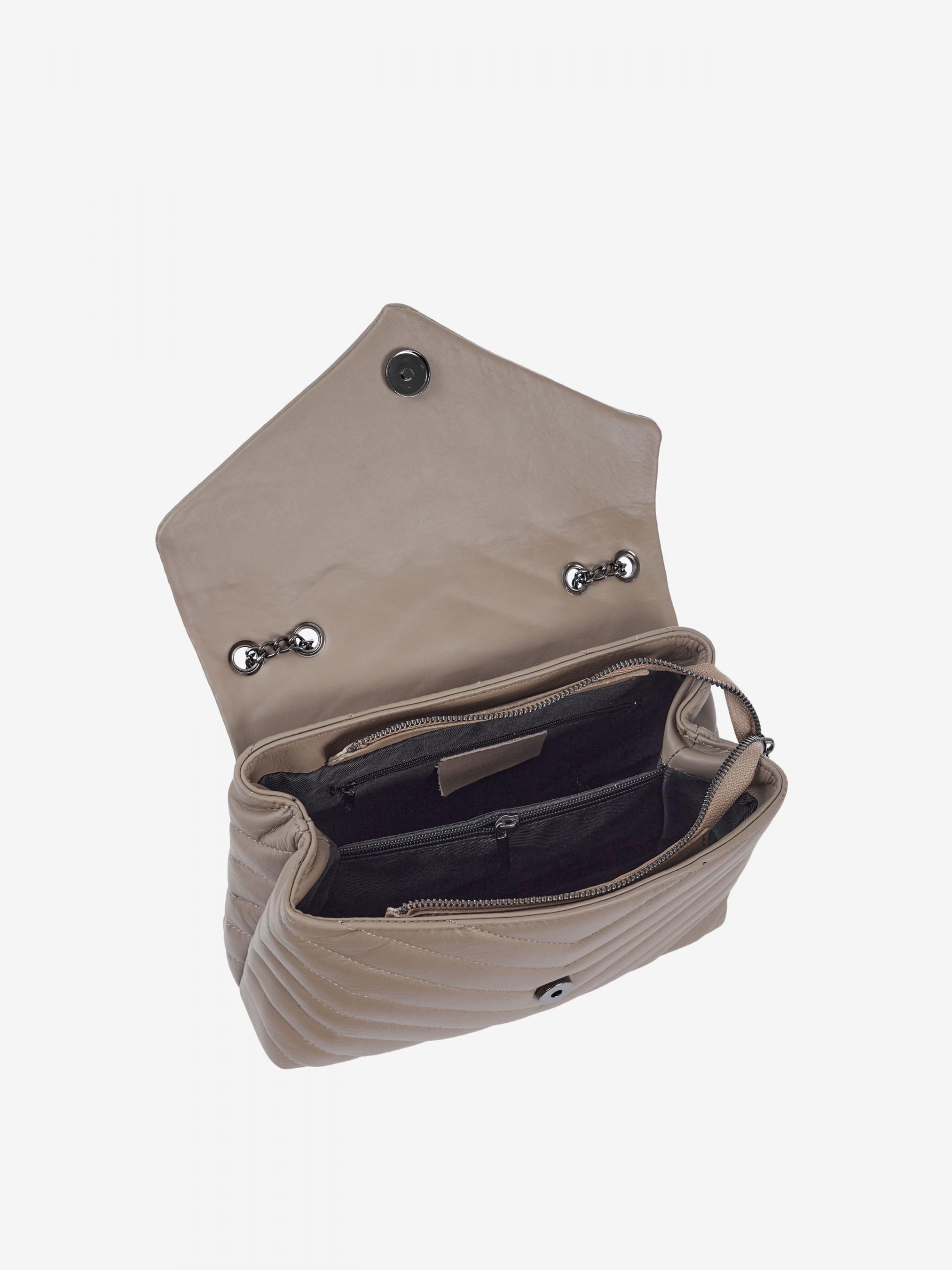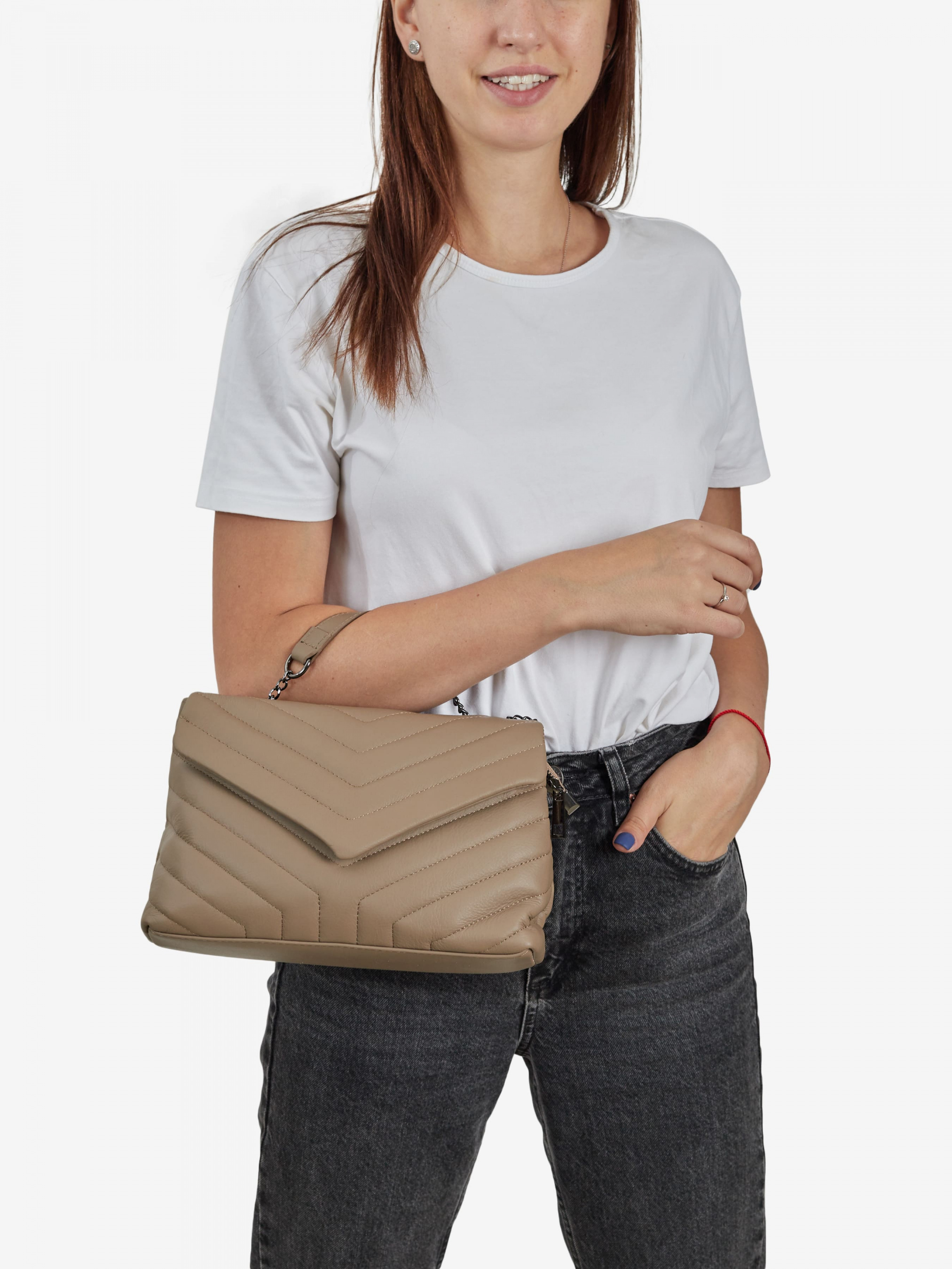 Деталі: - Матеріал: 100% натуральна шкіра - Шкіра наппа стьобана - Фурнітура чорного кольору - розміри (Ш x В x Г) - 26 x 17 x 8 см - Усередині 2 відділення розділені кишенею на блискавці - Підкладка: 100% бавовна - Застібка: блискавка - Можна міняти довжину ланцюжка та носити як на коротких ручках так і через плече Дизайн:Крос-боді Regina Notte 3023 зі стьобаної м'якої шкіри наппа з чистими лініями - ідеальний варіант для повсякденного або вечірнього виходу. Регульований ремінець-ланцюжок перетворює цей стиль на форму через плече, а внутрішній функціональний простір дозволить легко зберігати ваш телефон, гаманець і ключі.