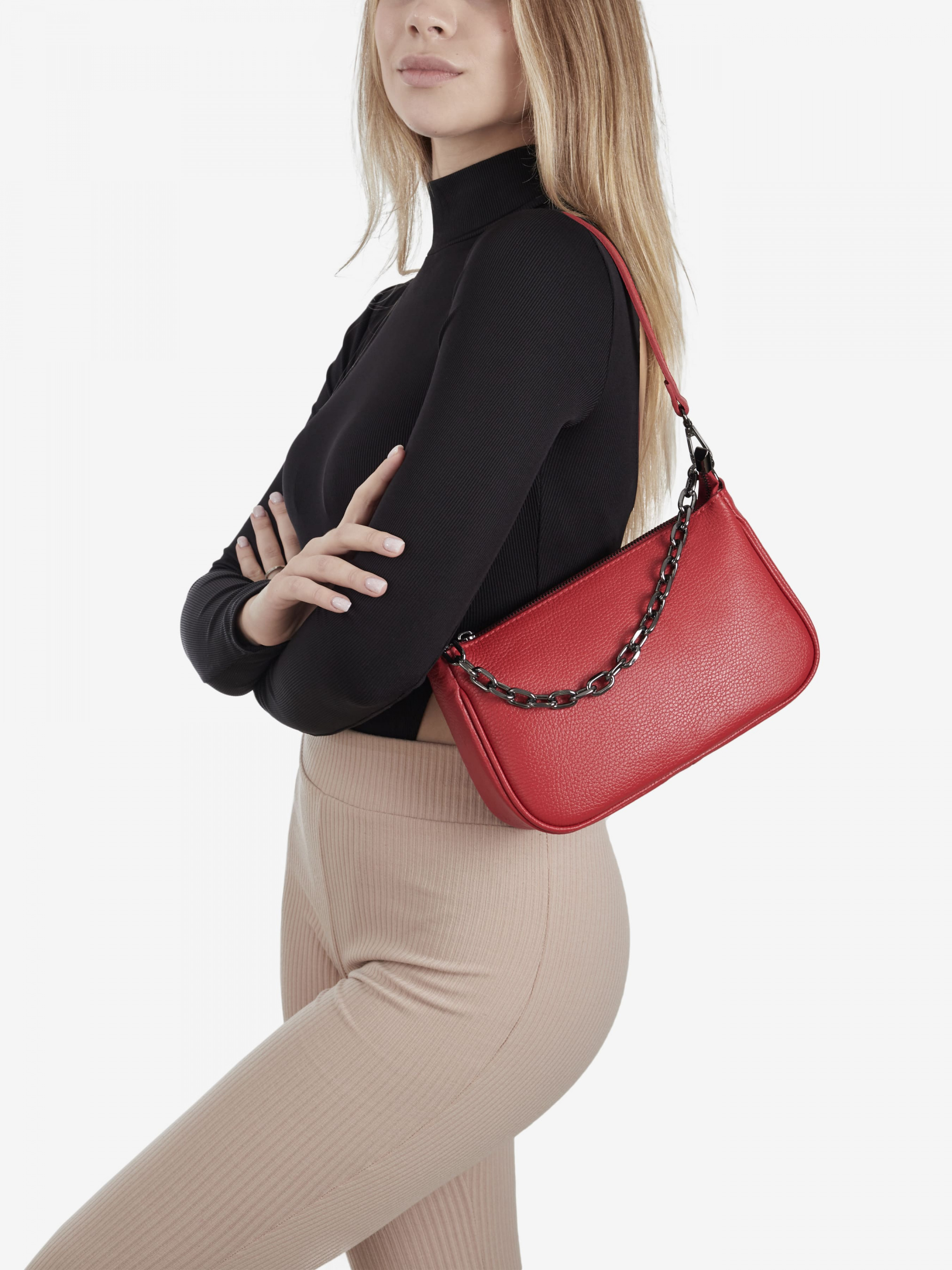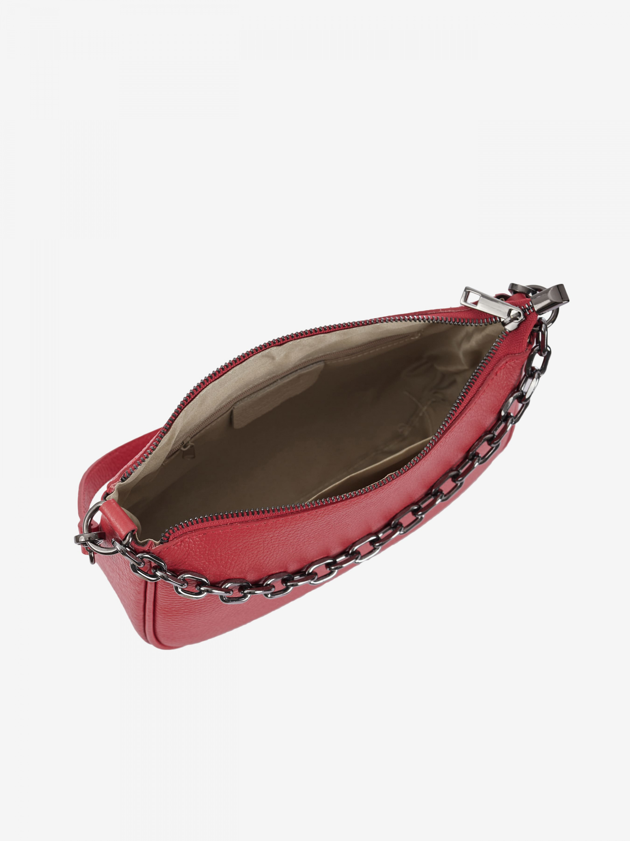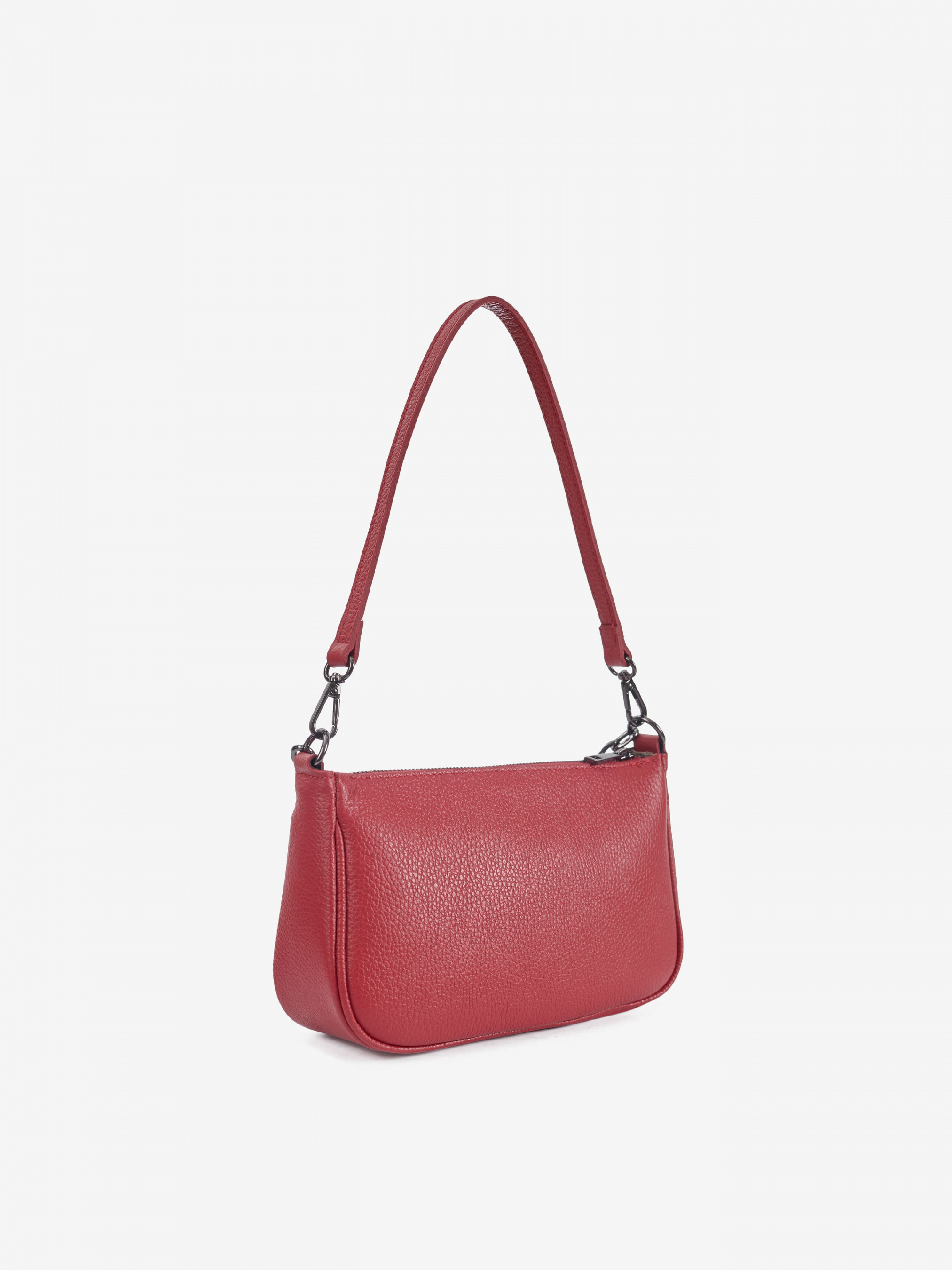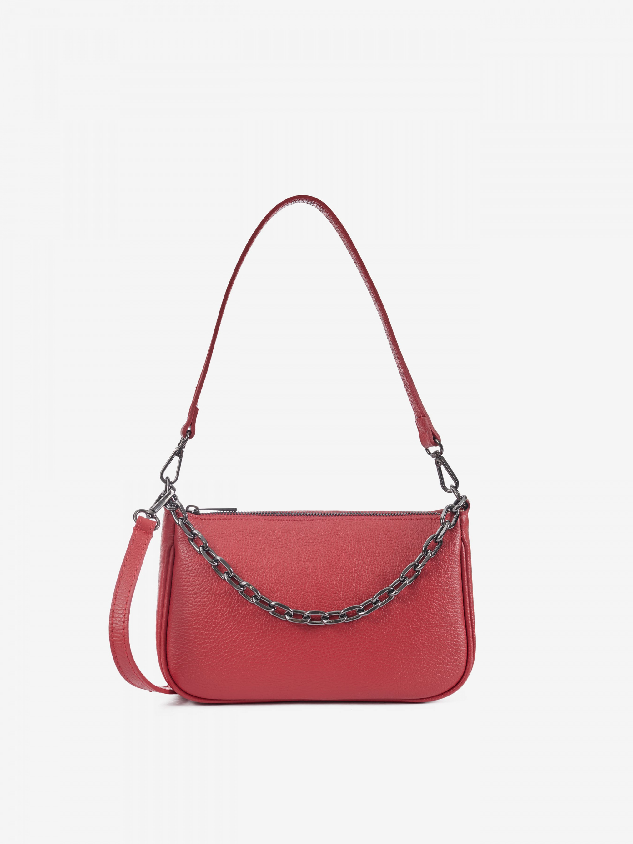 Деталі: Матеріал: 100% натуральна шкіра Шкіра має фактуру флотар Фурнітура сріблястого кольору Розміри (Ш x В x Г) – 25 x 16 x 8 см Усередині 1 відділення та 2 кишеньки для дрібниць, одна з них на блискавці Підкладка: 100% бавовна Застібка: блискавка У комплекті ремінець для носіння на плечі