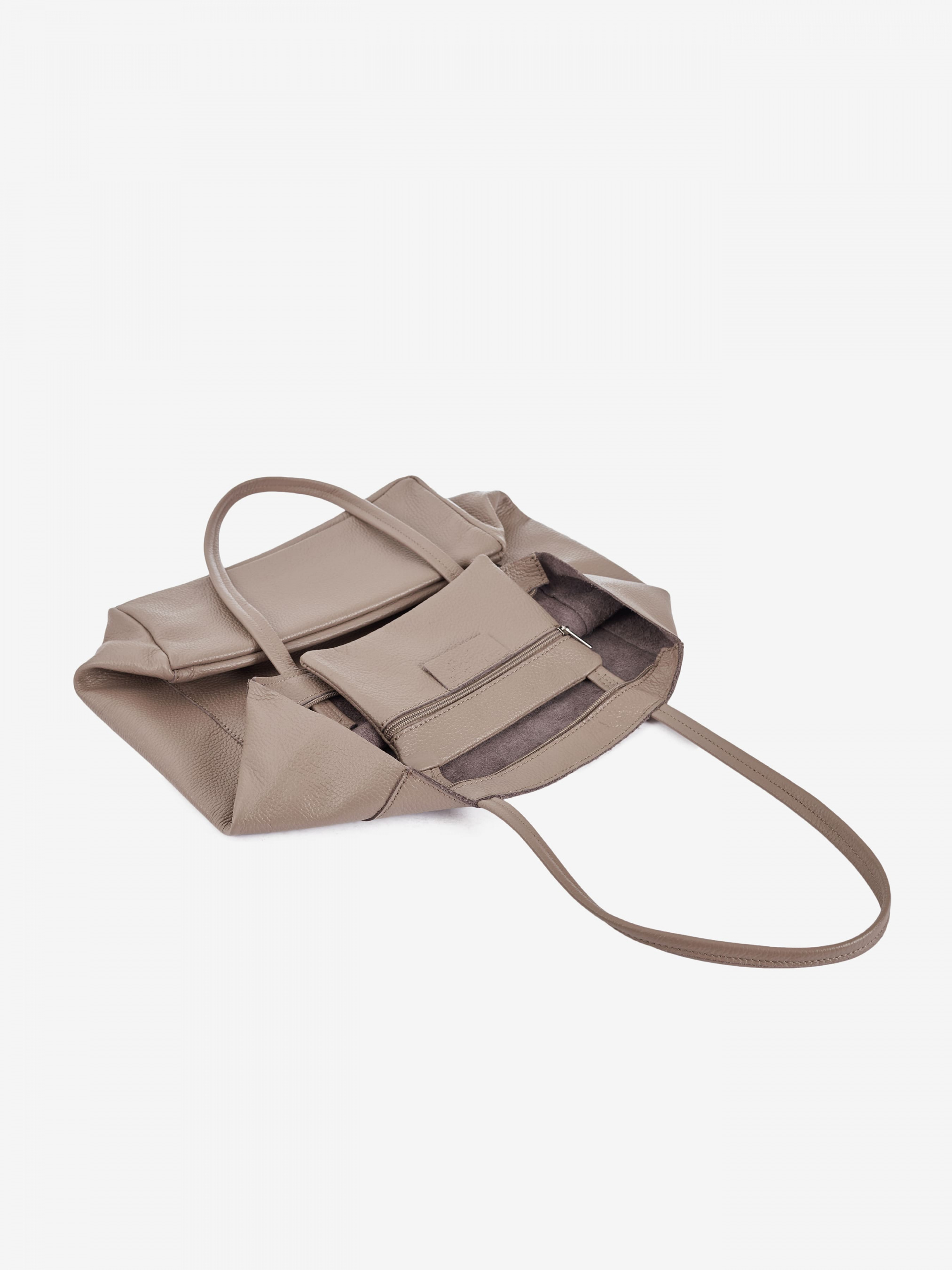 Деталі: Матеріал: 100% натуральна шкіра Шкіра має фактуру флотар Розміри (Ш x В x Г) – 33 x 35 x 11 см Усередині 1 відділення та 1 кишенька для дрібниць на блискавці у вигляді гаманця Підкладка: без підкладки Без плечового ремінця Застібка: шнурки