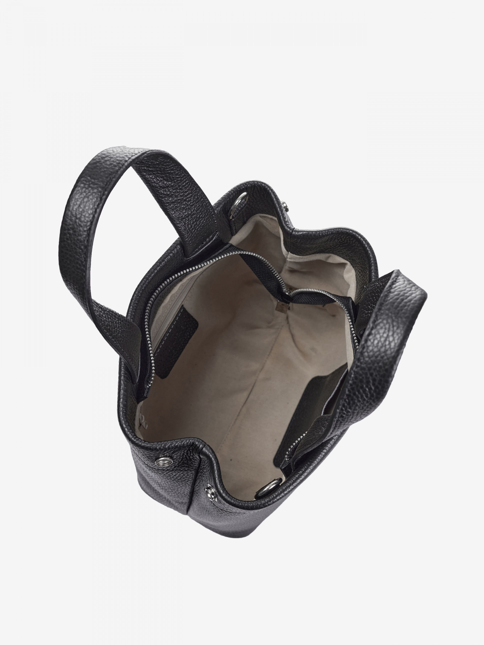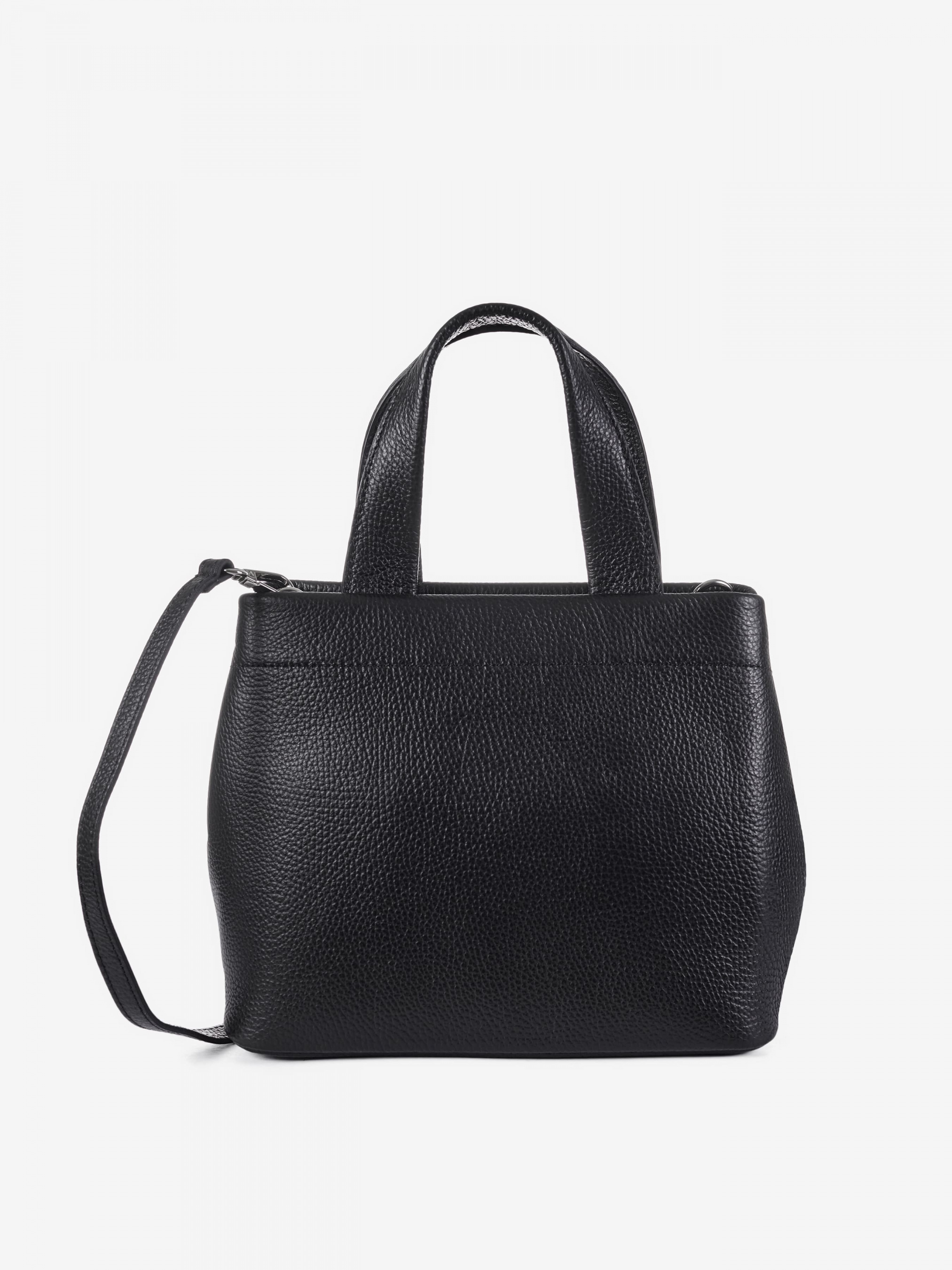 Деталі: Матеріал: 100% натуральна шкіра Шкіра має фактуру флотар Фурнітура сріблястого кольору Розміри (Ш x В x Г) – 29 x 22 x 9 см Усередині 1 відділення та дві кишеньки для дрібниць Підкладка: 100% бавовна Можна змінювати форму сумки за допомогою кнопок розміщених вгорі з боків сумки Застібка: блискавка