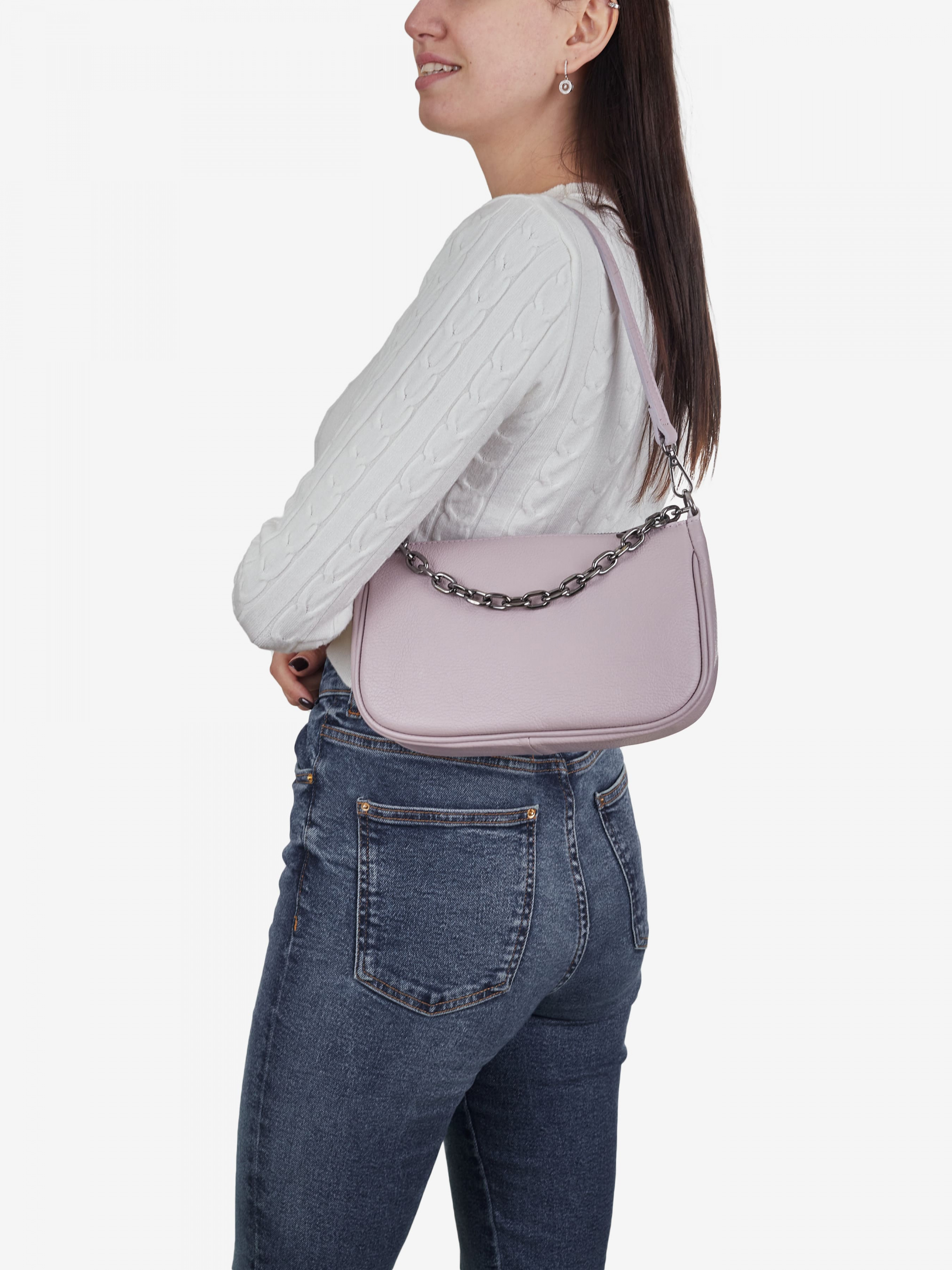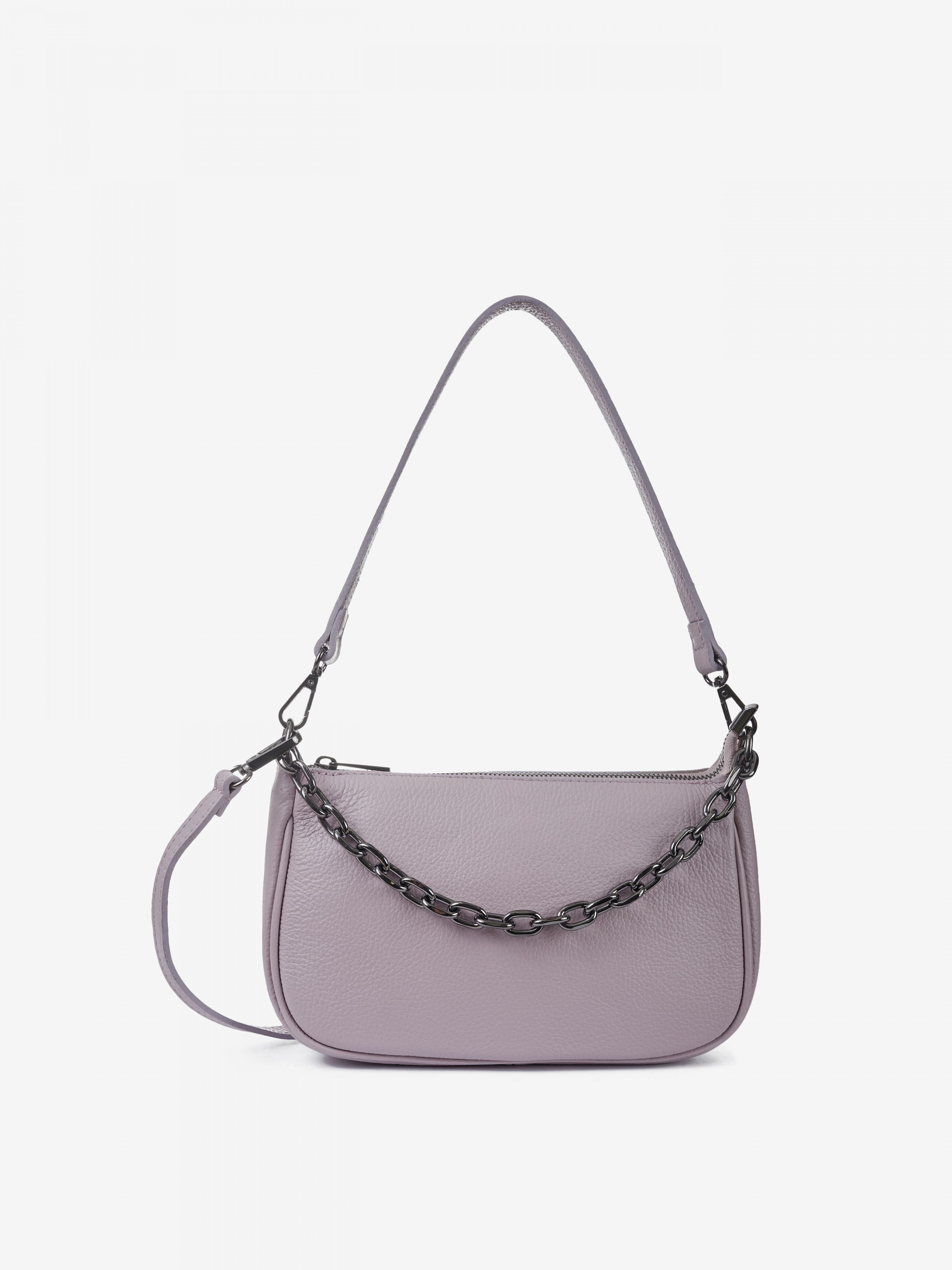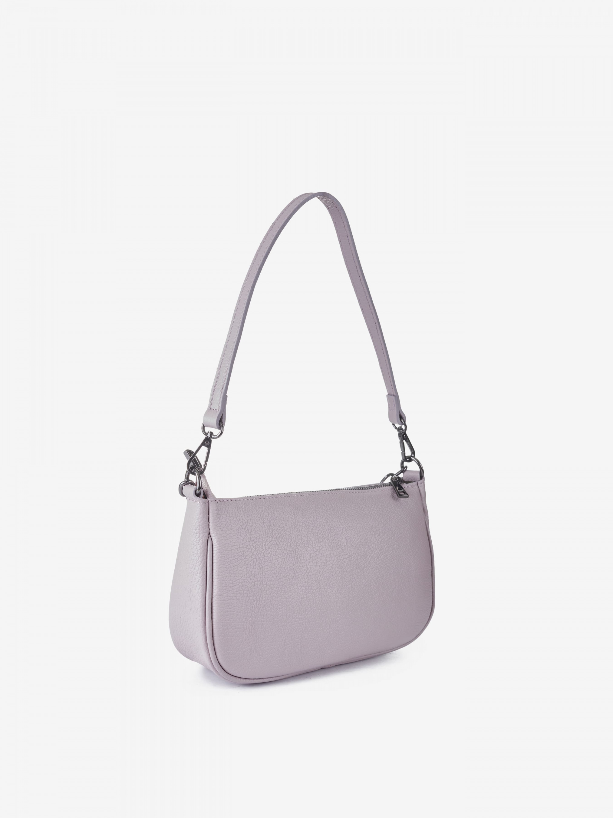 Деталі: Матеріал: 100% натуральна шкіра Шкіра має фактуру флотар Фурнітура сріблястого кольору Розміри (Ш x В x Г) – 25 x 16 x 8 см Усередині 1 відділення та 2 кишеньки для дрібниць, одна з них на блискавці Підкладка: 100% бавовна Застібка: блискавка У комплекті ремінець для носіння на плечі