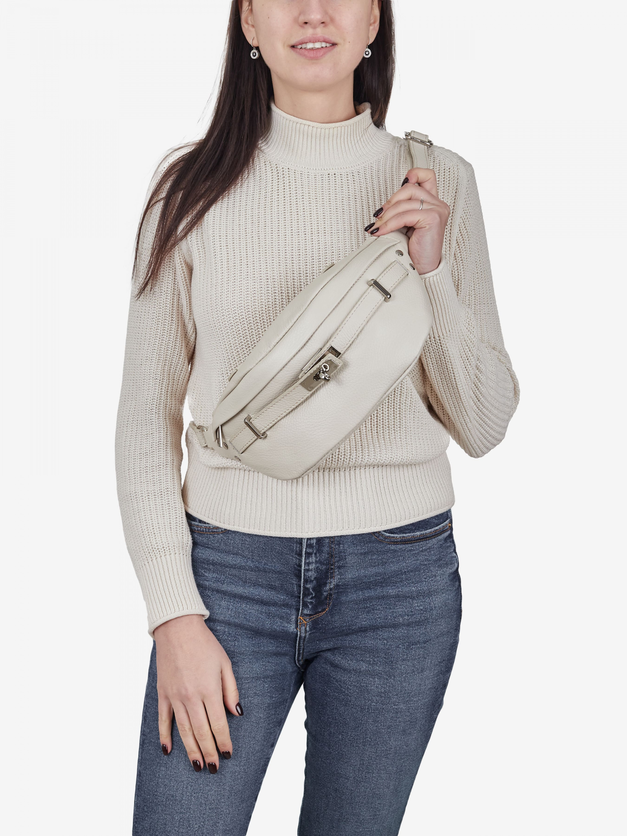 Деталі: Матеріал: 100% натуральна шкіра Шкіра має фактуру флотар Фурнітура сріблястого кольору Розміри (Ш x В x Г) – 40 x 15 x 10 см Усередині 1 відділення на блискавці та 1 кишенька для дрібниць на блискавці. Позаду вертикальна кишеня на блискавці Підкладка: 100% бавовна Застібка: блискавка Ремінець шкіряний регулюється, незнімний, максимальна довжина 100 см