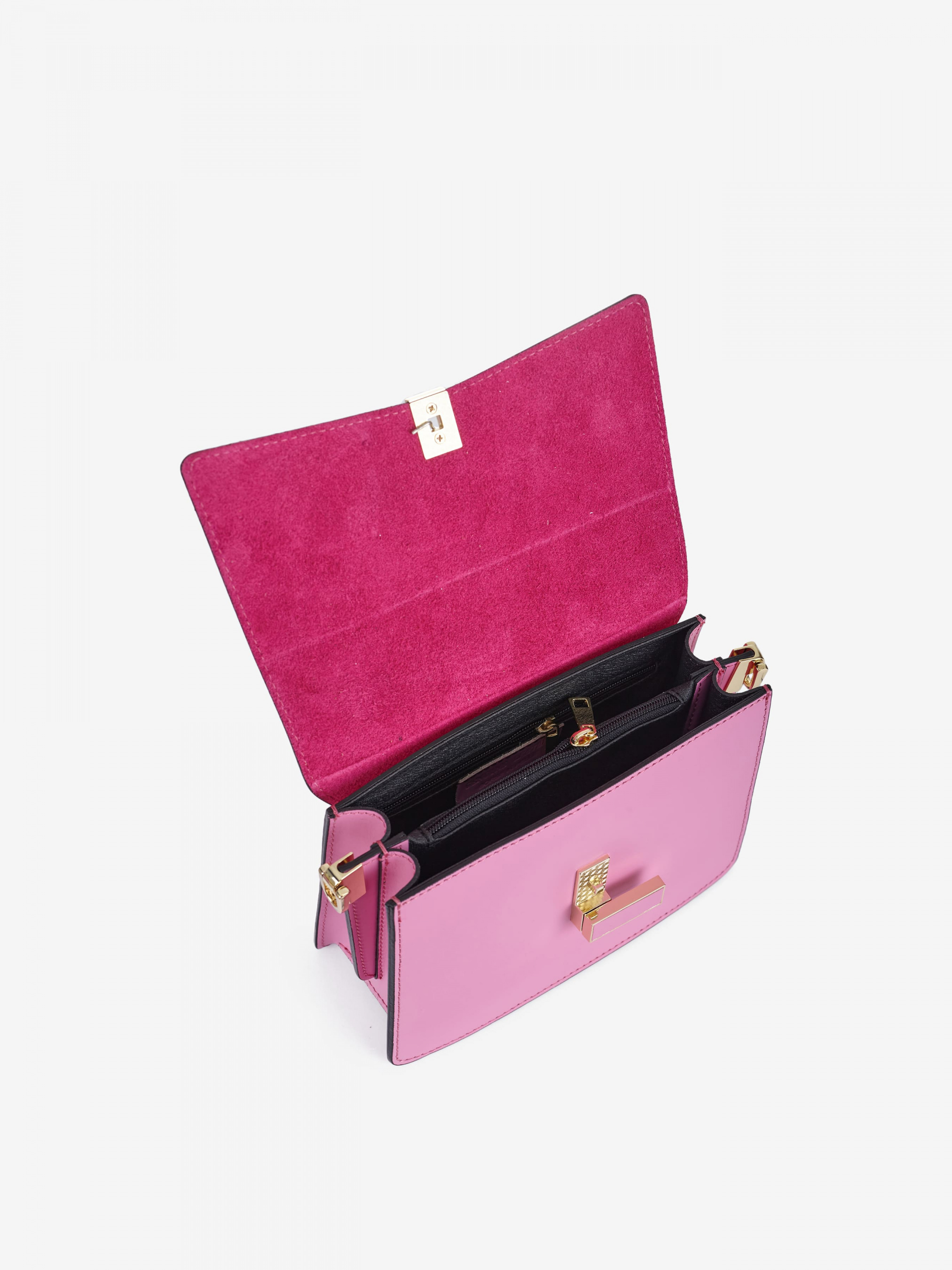 Деталі: Матеріал: 100% натуральна шкіра Шкіра гладка Фурнітура золотистого кольору Розміри (Ш x В x Г) – 21 x 15 x 9 см Усередині 1 відділення та 1 кишенька для дрібниць на блискавці Підкладка: відсутня Застібка: клапан на поворотному замку Ремінець шкіряний, регулюється, знімний, на карабінах, максимальна довжина 110 см. Ручка на карабінах, довжина 50 см