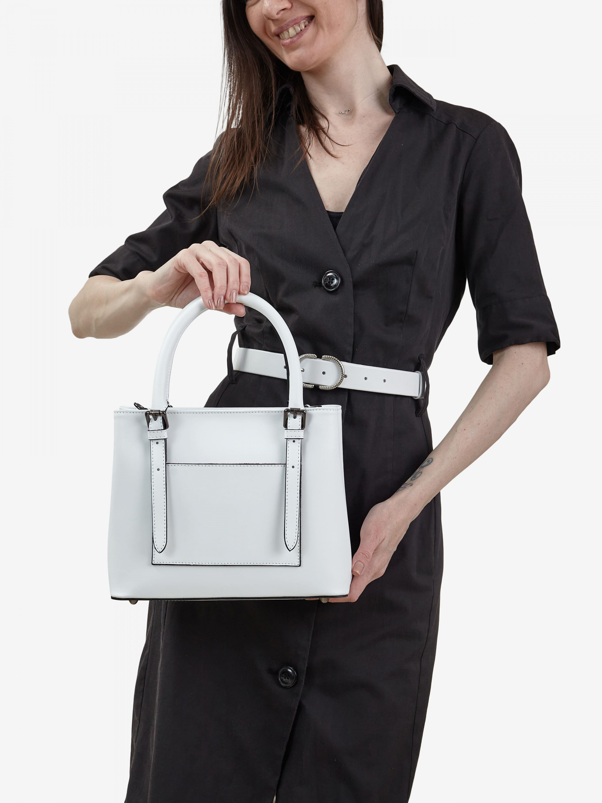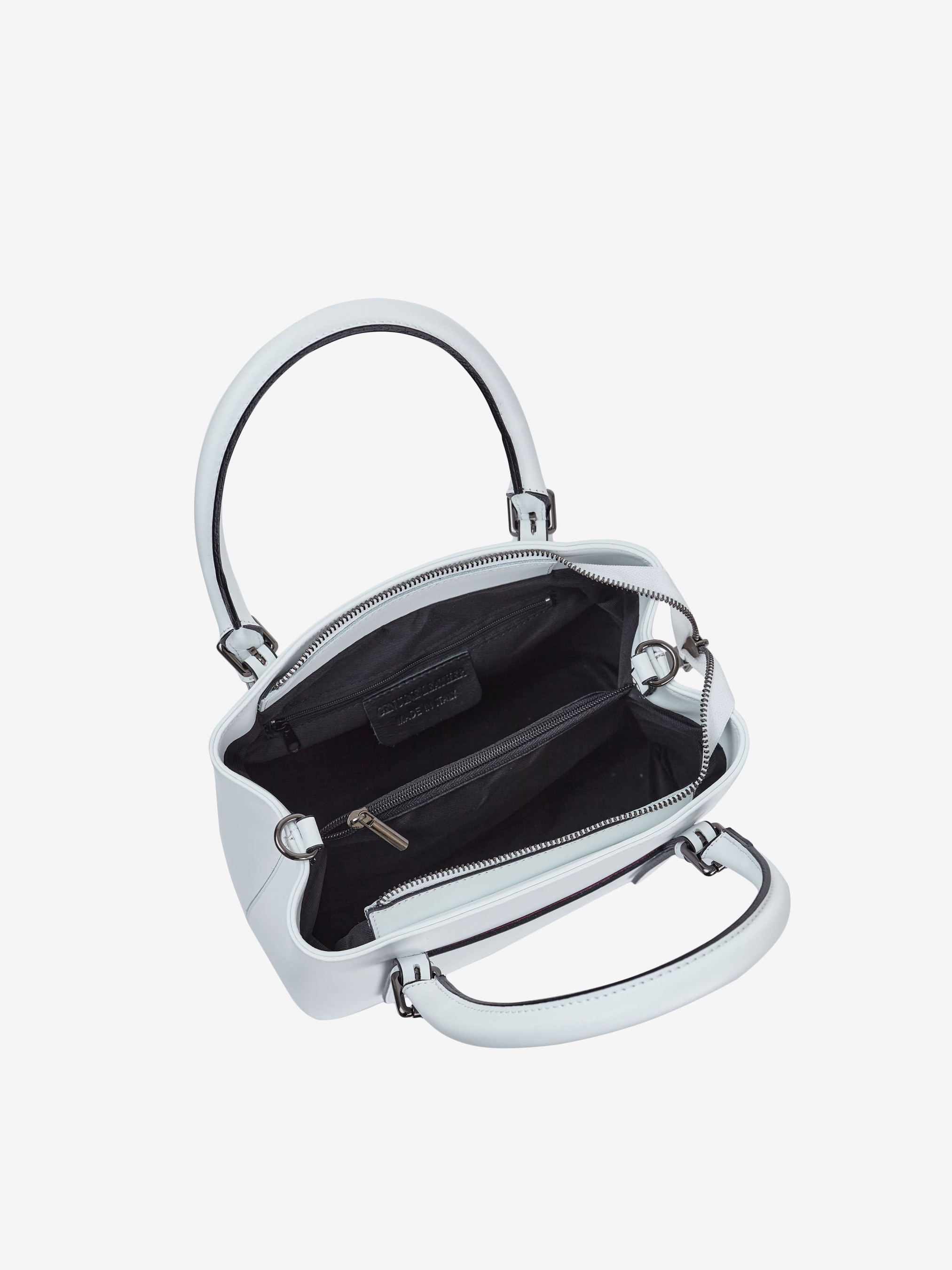Деталі: Матеріал: 100% натуральна шкіра Шкіра має гладку фактуру Фурнітура чорного кольору Розміри (Ш x В x Г) – 25 x 21 x 13 см Усередині 2 відділення розділені кишенею на блискавці, кишенька для дрібниць на блискавці. Позаду горизонтальна кишенька без застібки Підкладка: 100% бавовна Ремінець шкіряний регулюється, знімний, на карабінах, максимальна довжина 105 см. Ручки знімні, регулюються, максимальна висота 20 см Застібка: блискавка