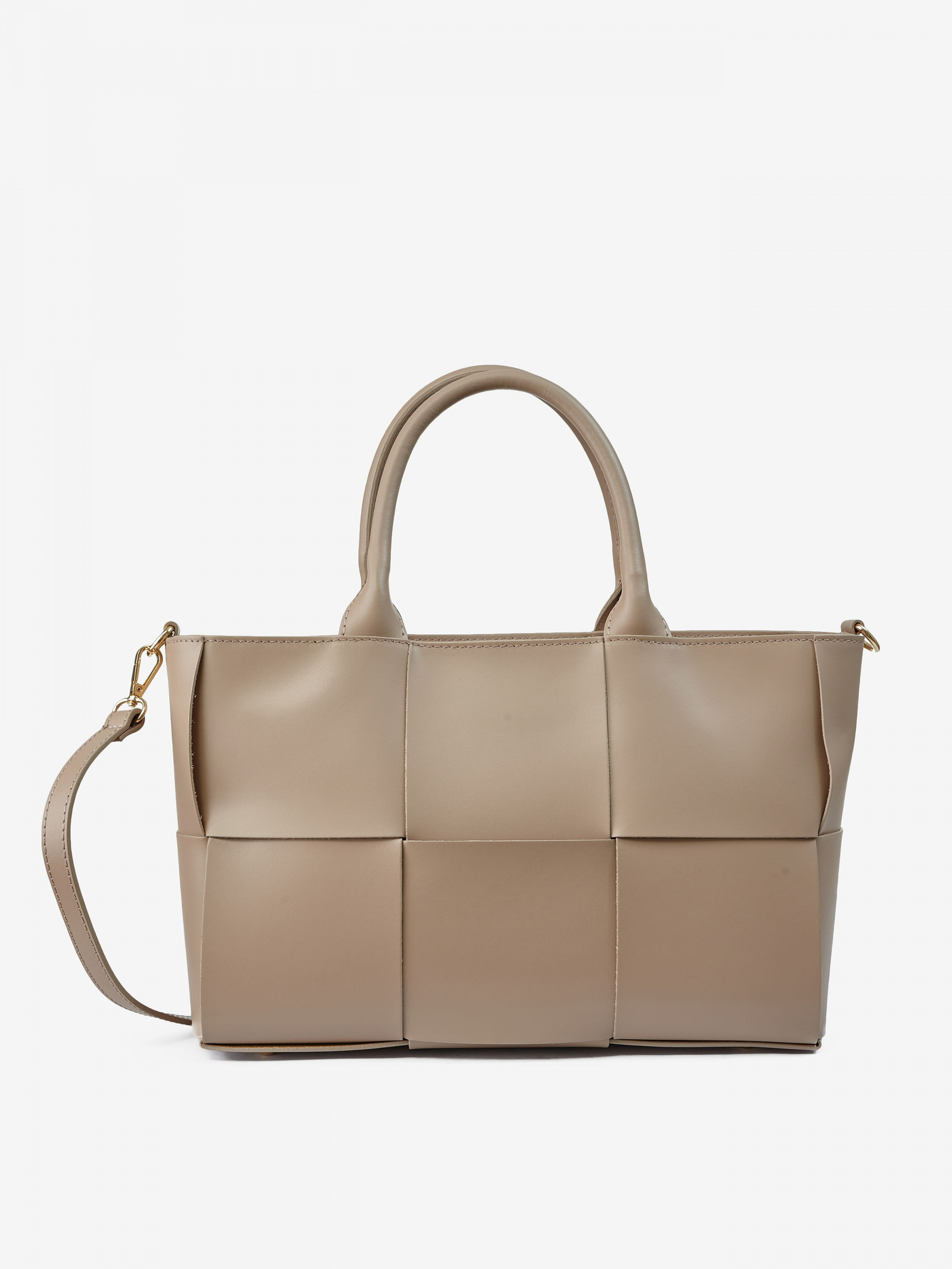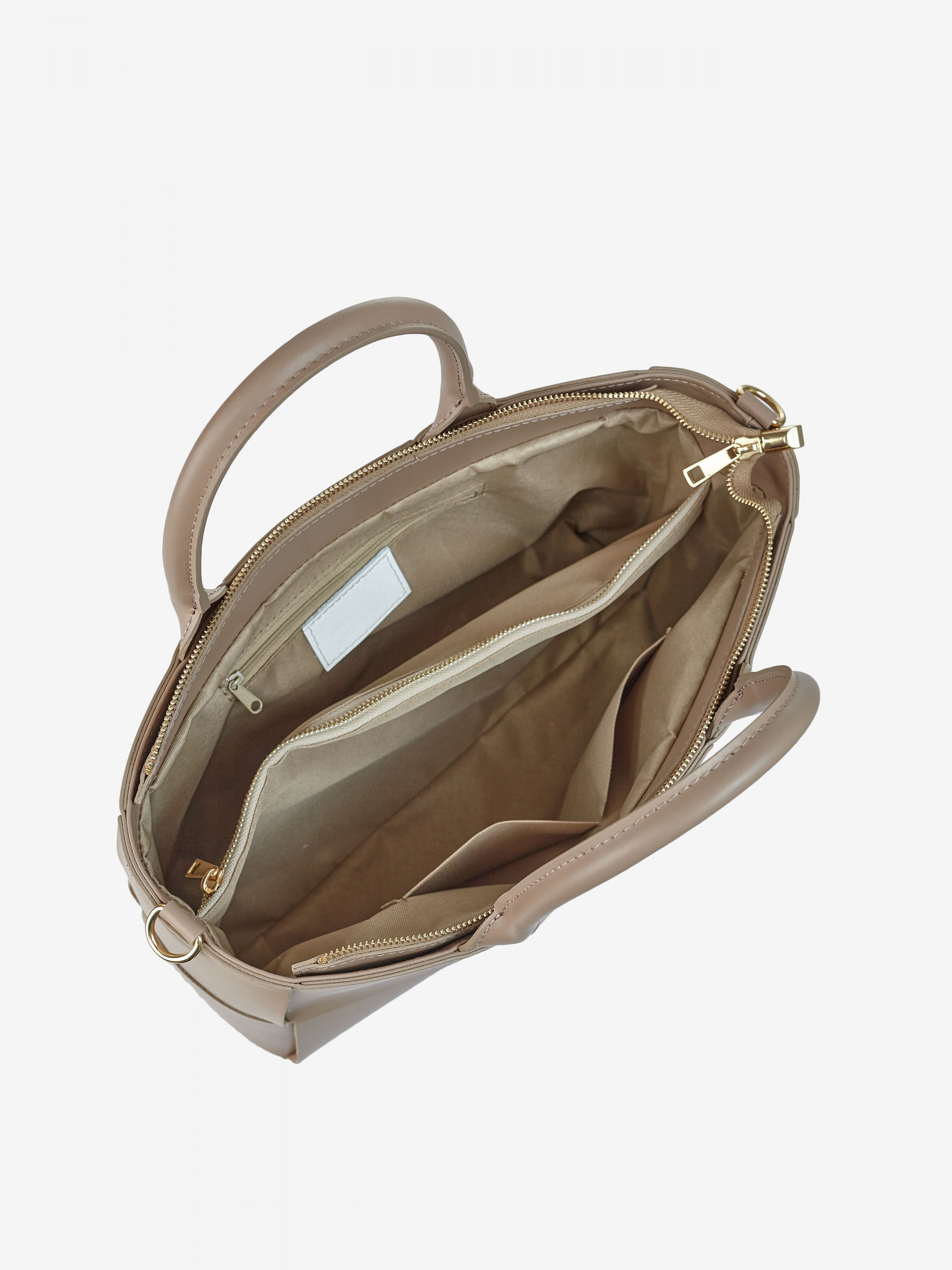 Деталі: Матеріал: 100% натуральна шкіра Шкіра має гладку фактуру Фурнітура золотистого кольору Розміри (Ш x В x Г) – 36 x 24 x 12 см Вміщує документи формату A4 Усередині 2 відділення розділені кишенею на блискавці та 3 кишеньки для дрібниць, одна з них на блискавці Позаду горизонтальна кишеня на блискавці З боків знаходяться кліпси для зміни розміру та форми сумки Підкладка: 100% бавовна Застібка: блискавка Висота ручок 15 см У комплекті знімний ремінець на карабінах регулюється, максимальна довжина 110 см
