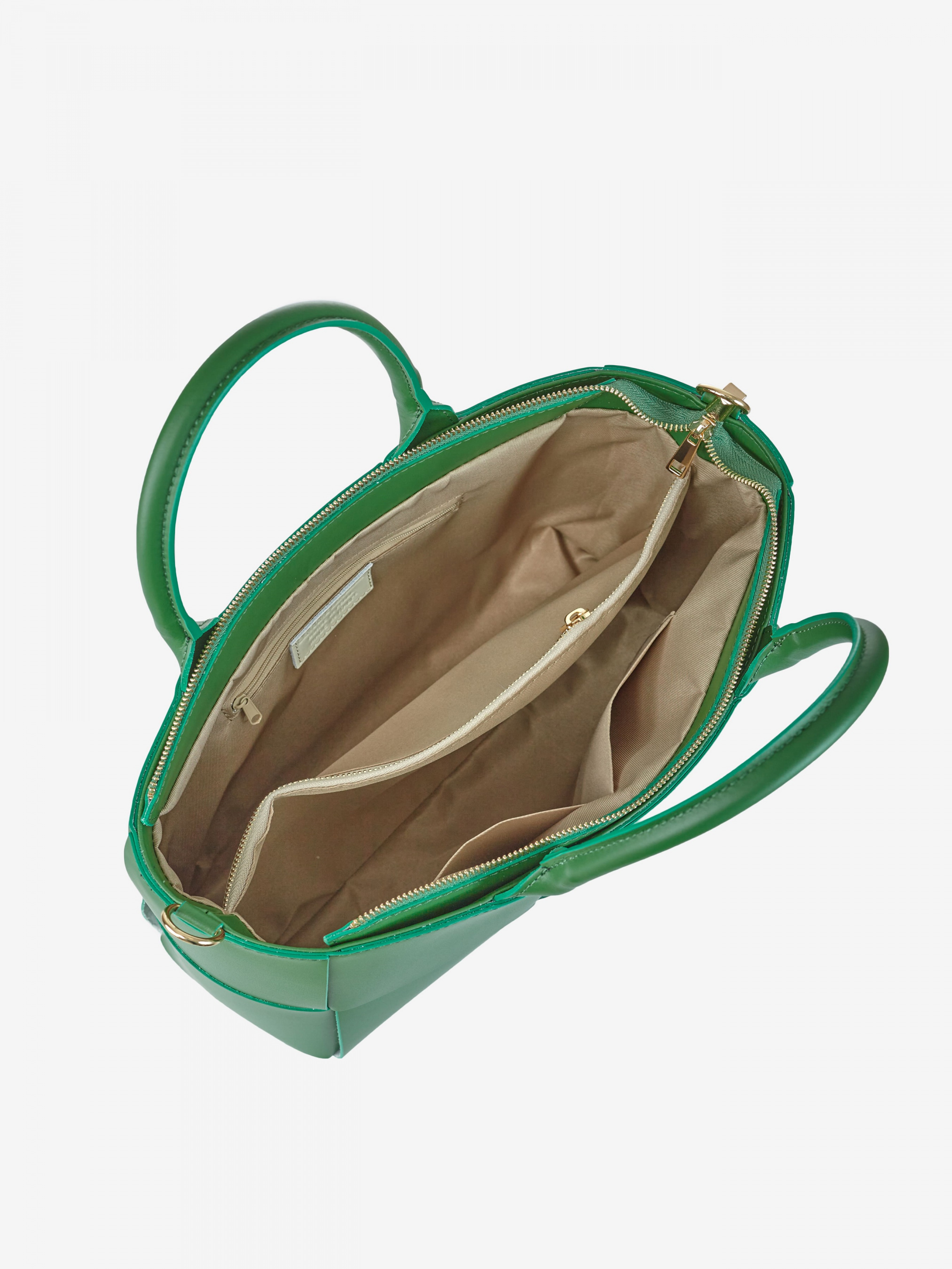 Деталі: Матеріал: 100% натуральна шкіра Шкіра має гладку фактуру Фурнітура золотистого кольору Розміри (Ш x В x Г) – 36 x 24 x 12 см Вміщує документи формату A4 Усередині 2 відділення розділені кишенею на блискавці та 3 кишеньки для дрібниць, одна з них на блискавці Позаду горизонтальна кишеня на блискавці З боків знаходяться кліпси для зміни розміру та форми сумки Підкладка: 100% бавовна Застібка: блискавка Висота ручок 15 см У комплекті знімний ремінець на карабінах регулюється, максимальна довжина 110 см