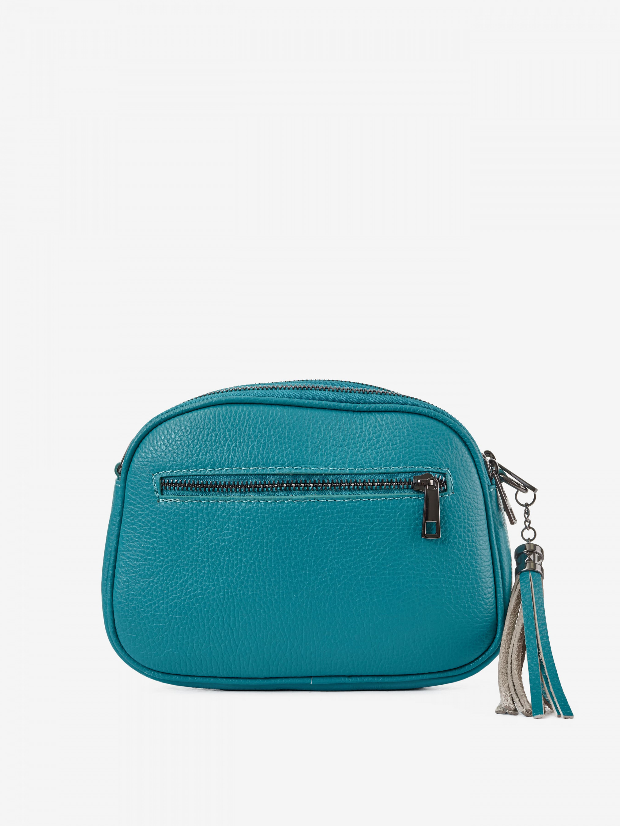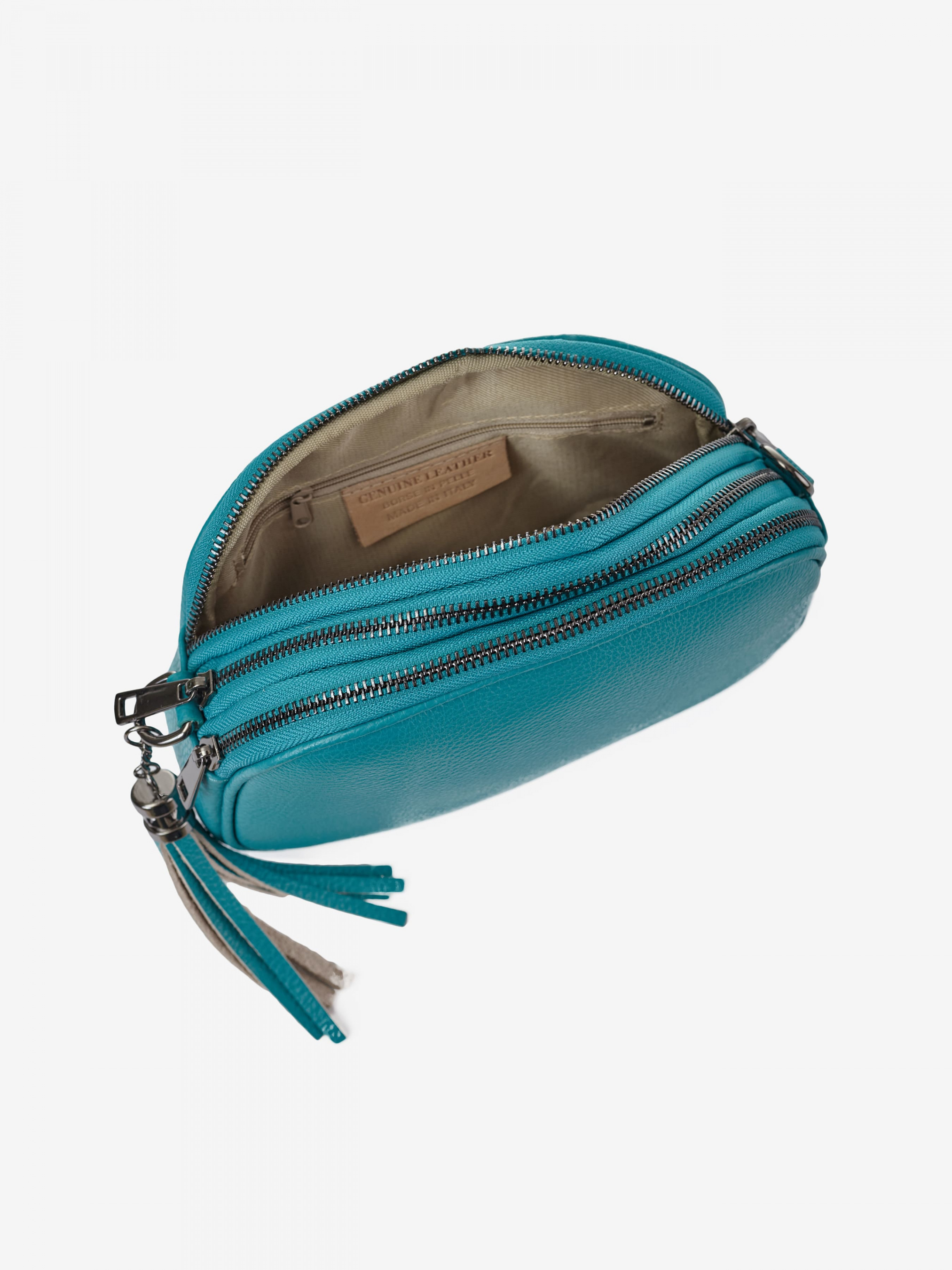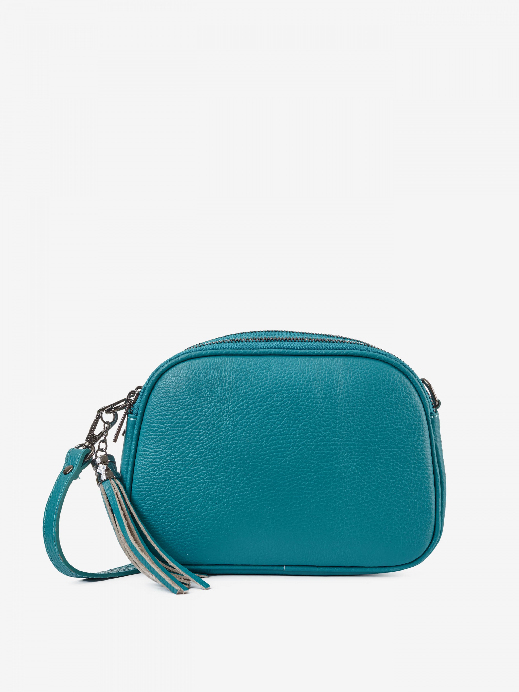 Деталі: Матеріал: 100% натуральна шкіра Шкіра має фактуру флотар Фурнітура сріблястого кольору Розміри (Ш x В x Г) – 22 x 13 x 7 см Усередині 3 роздільні відділення на блискавці Підкладка: 100% бавовна Застібка: блискавка Позаду кишенька для дрібниць на блискавці У комплекті ремінець для носіння на плечі