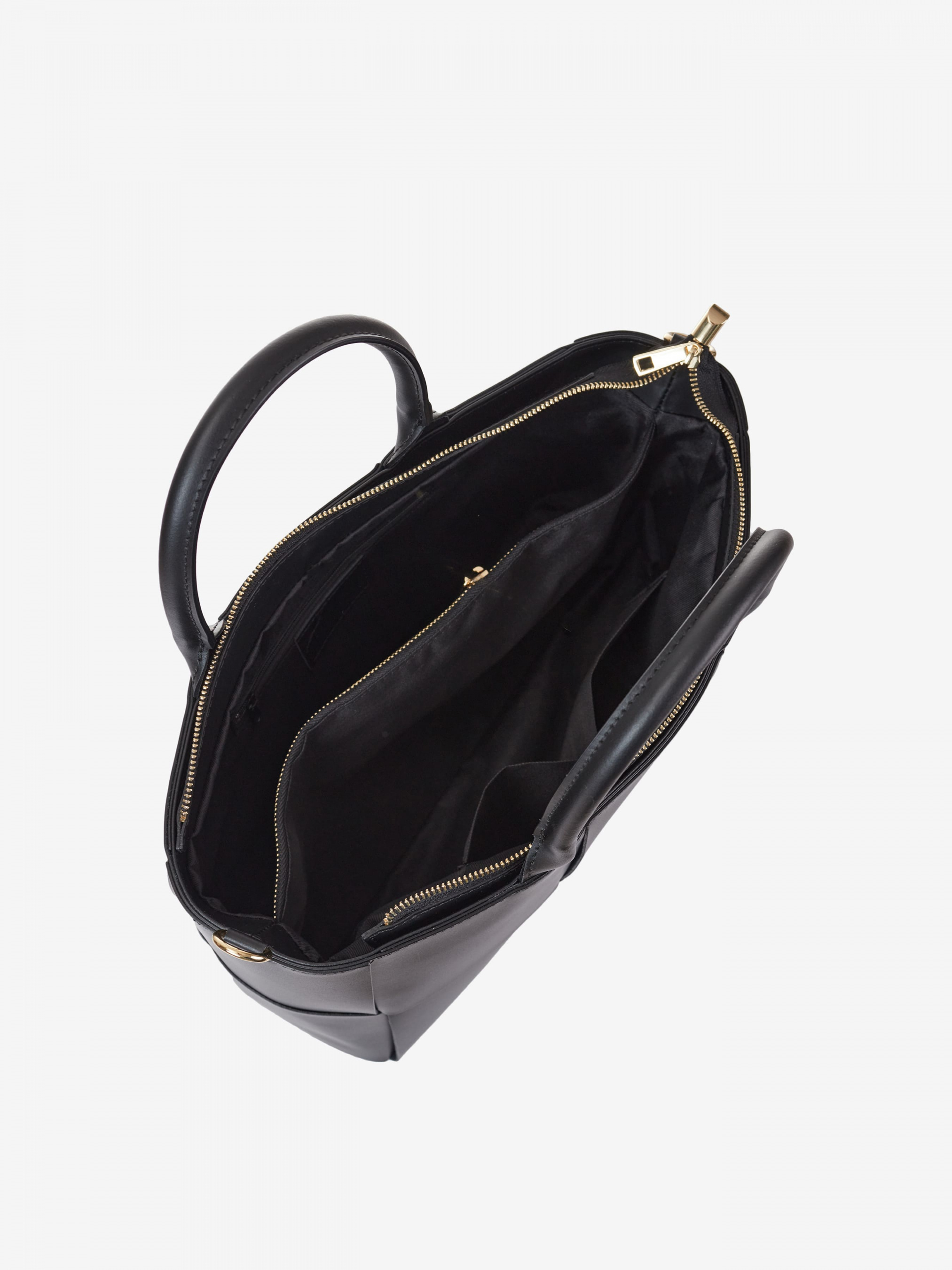 Деталі: Матеріал: 100% натуральна шкіра Шкіра має гладку фактуру Фурнітура золотистого кольору Розміри (Ш x В x Г) – 36 x 24 x 12 см Вміщує документи формату A4 Усередині 2 відділення розділені кишенею на блискавці та 3 кишеньки для дрібниць, одна з них на блискавці Позаду горизонтальна кишеня на блискавці З боків знаходяться кліпси для зміни розміру та форми сумки Підкладка: 100% бавовна Застібка: блискавка Висота ручок 15 см У комплекті знімний ремінець на карабінах регулюється, максимальна довжина 110 см