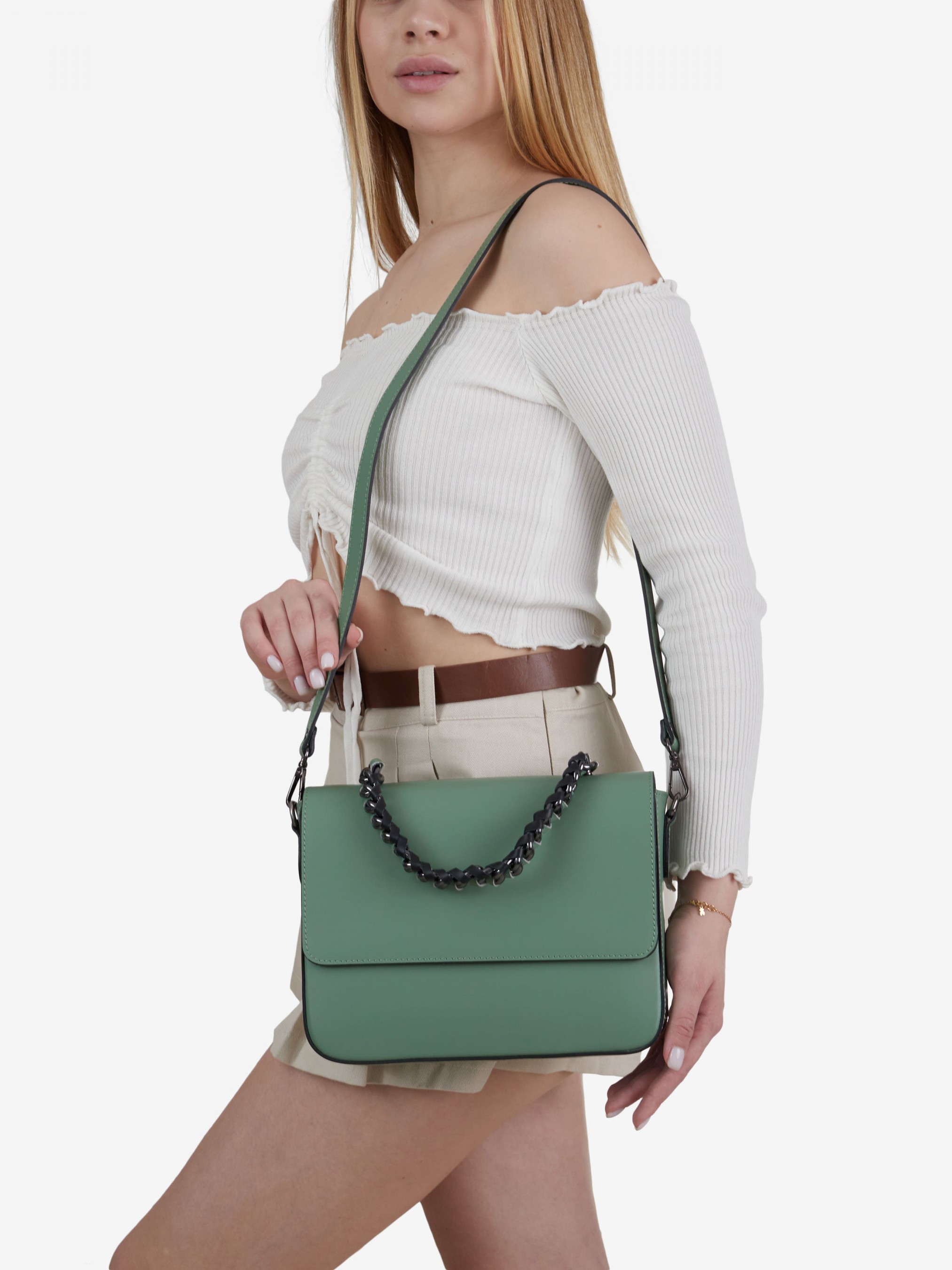 Деталі: Матеріал: 100% натуральна шкіра Шкіра має гладку фактуру Фурнітура чорного кольору Розміри (Ш x В x Г) – 25 x 20 x 7 см Всередині 1 відділення та кишенька блискавки Підкладка: 100% бавовна Застібка: блискавка та клапан на магнітах Висота ручки 15 см У комплекті ремінець для носіння на плечі (знімний на карабінах не регулюється, максимальна довжина 100 см)