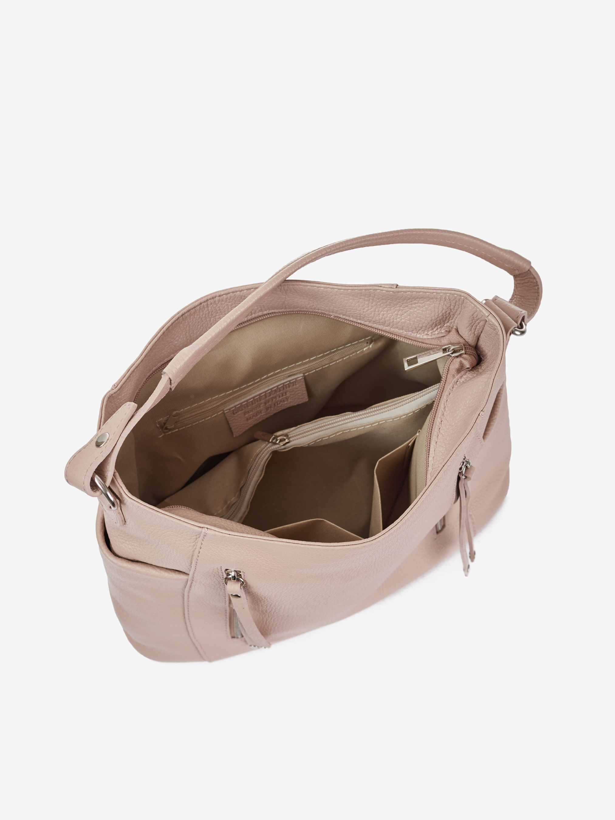 Деталі: Матеріал: 100% натуральна шкіра Шкіра флотар Фурнітура сріблястого кольору Розміри (Ш x В x Г) – 36 x 30 x 12 см Усередині 2 відділення розділені кишенею на блискавці і 3 кишеньки для дрібниць одна з них на блискавці. Попереду 2 вертикальні кишеньки на блискавці. З боків 2 кишеньки без застібки. Позаду горизонтальну кишеньку на блискавці. Підкладка: 100% бавовна Застібка: блискавка Ремінець шкіряний, регулюється, знімний, на карабінах, максимальна довжина 125 см. Висота ручки 23 см